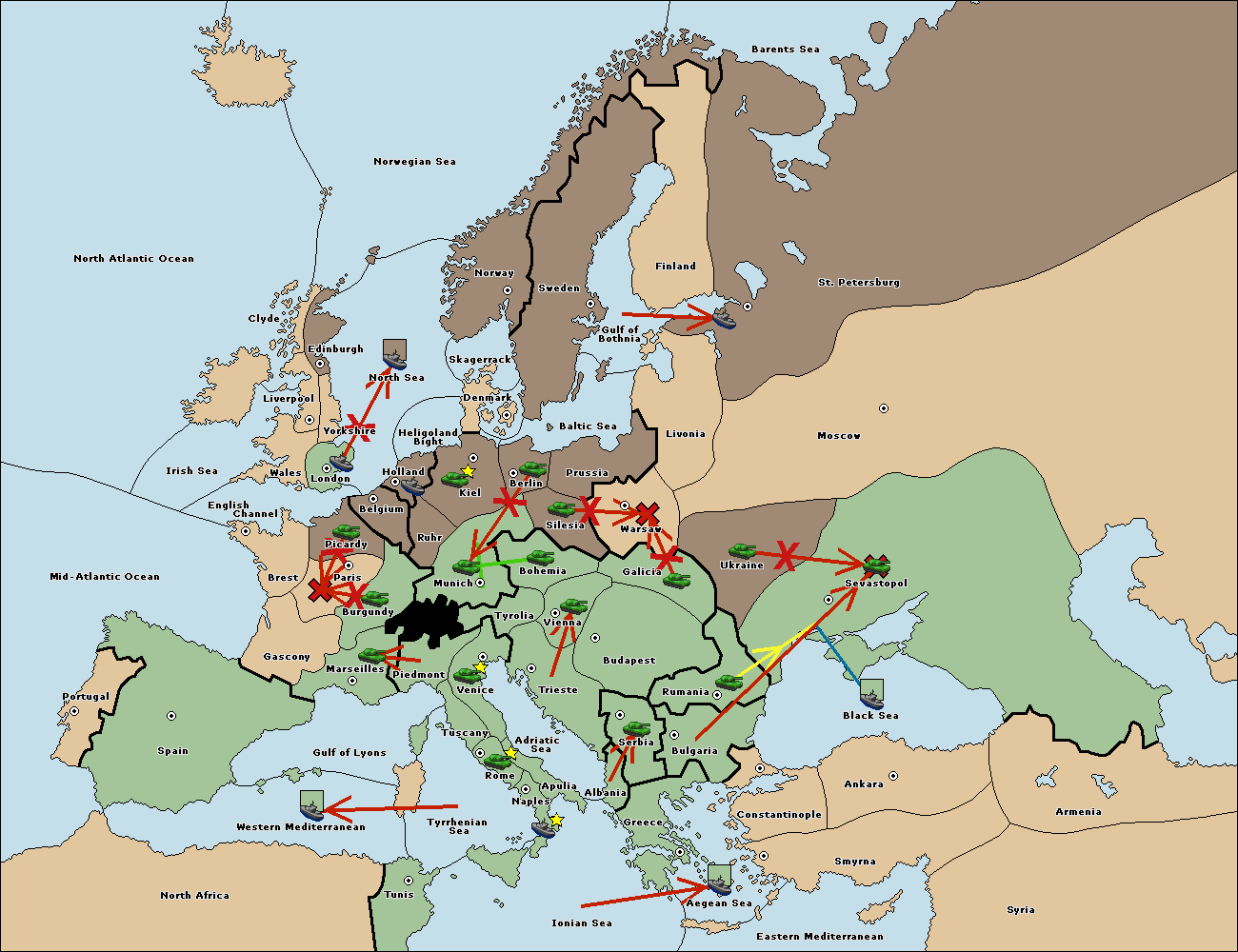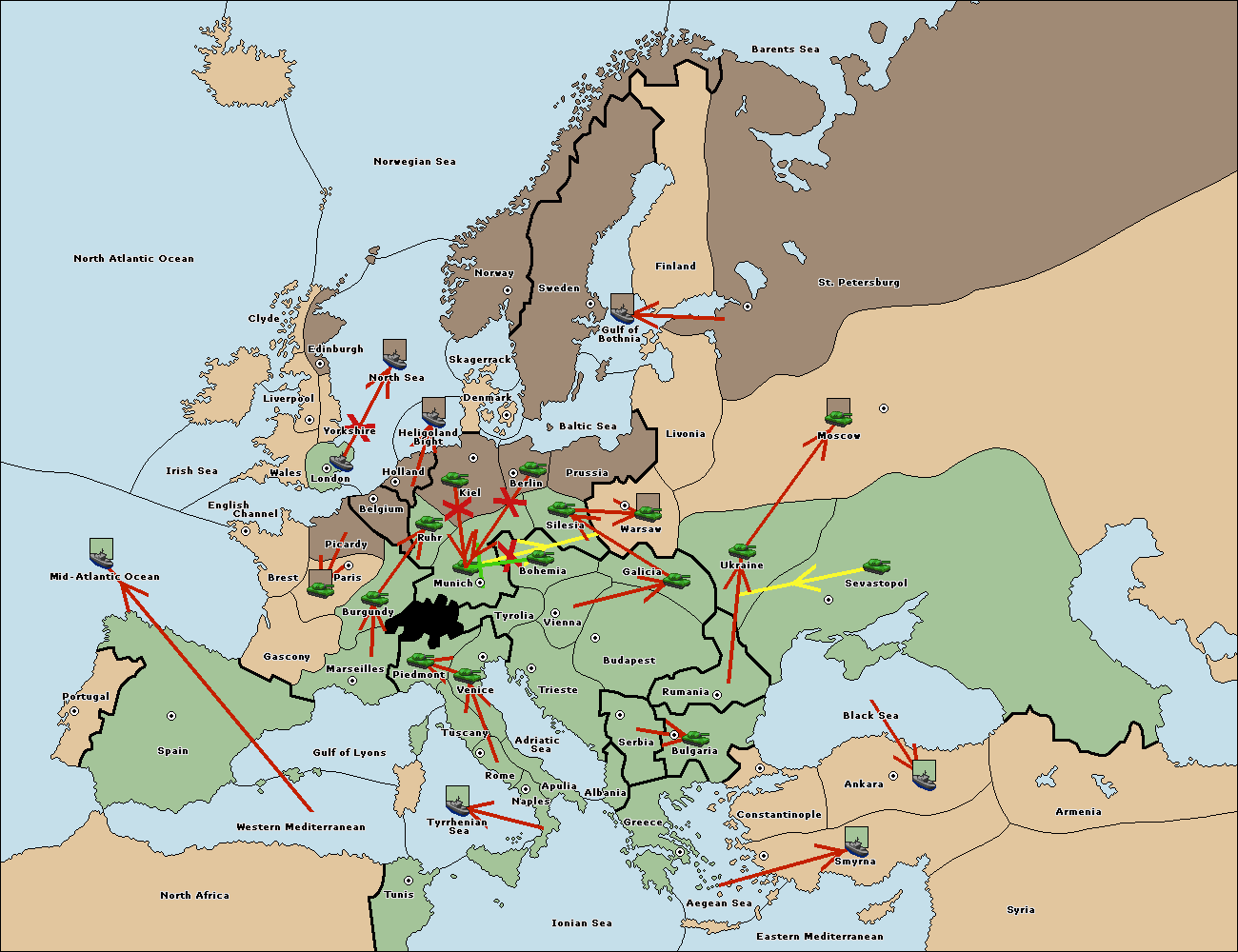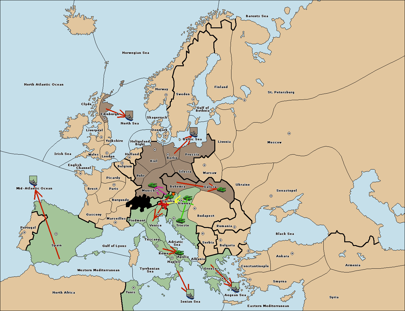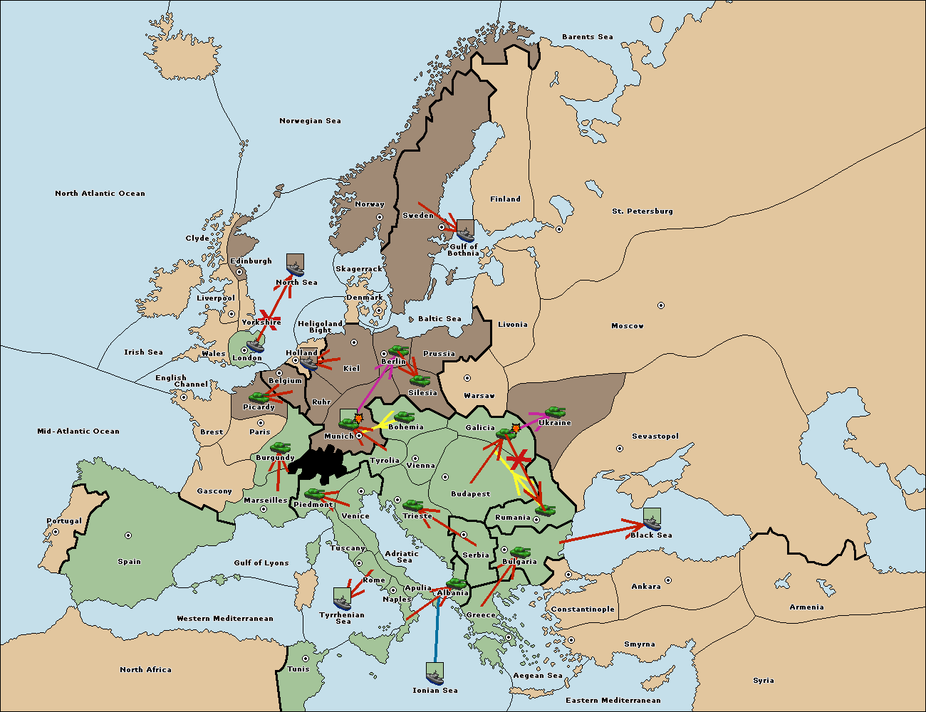The fleet at Ankara support move to Constantinople from Bulgaria.
