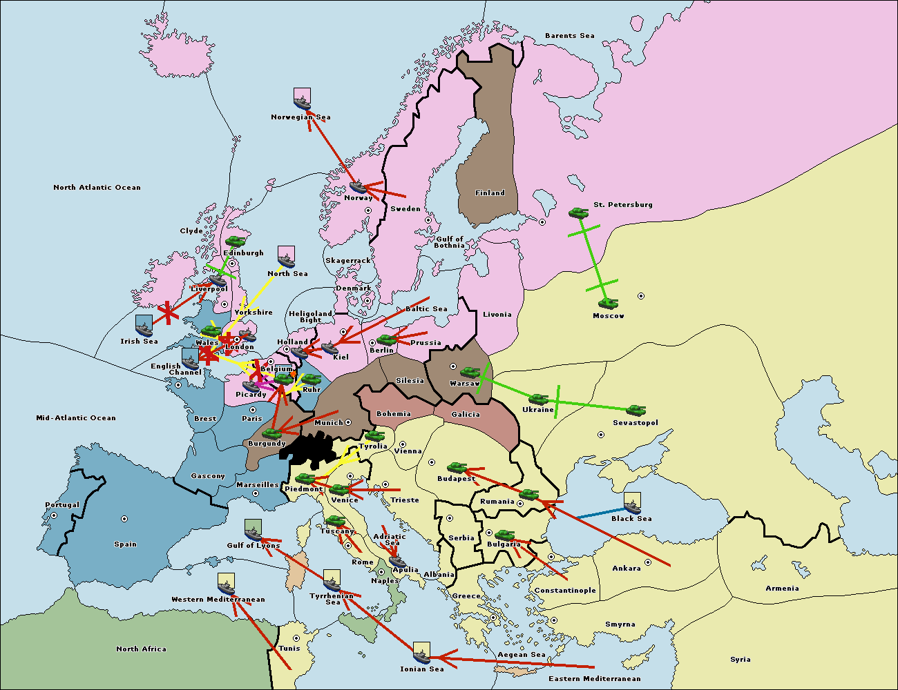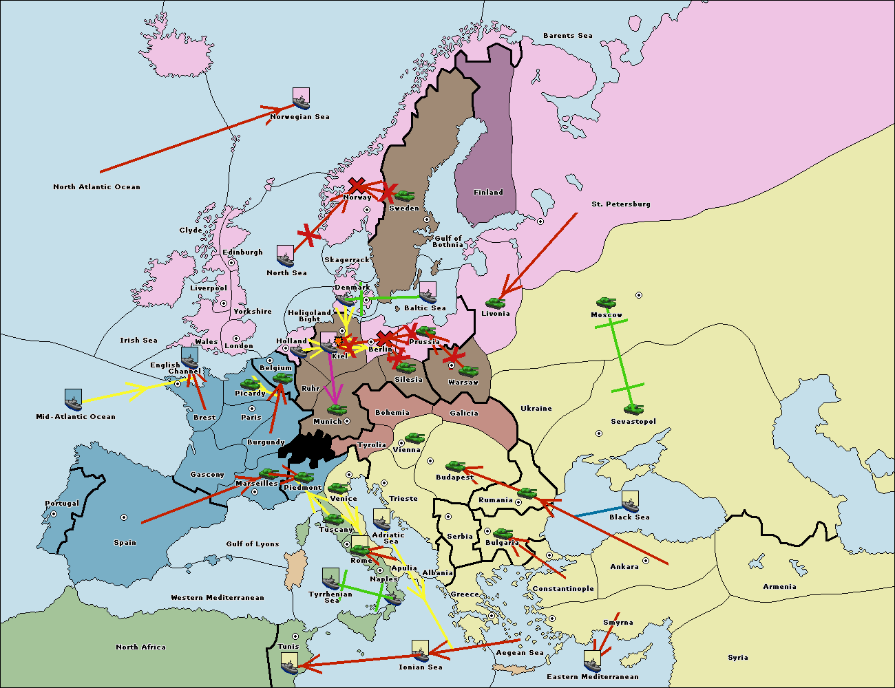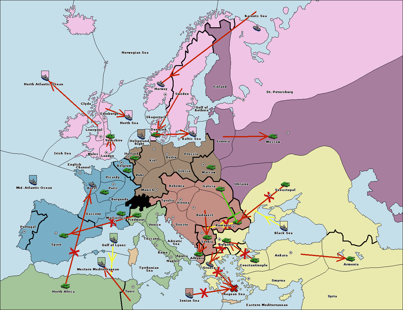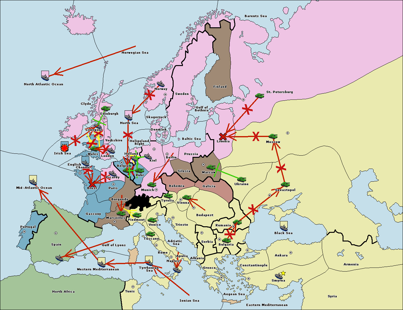 The fleet at Mid-Atlantic Ocean move to Western Mediterranean.