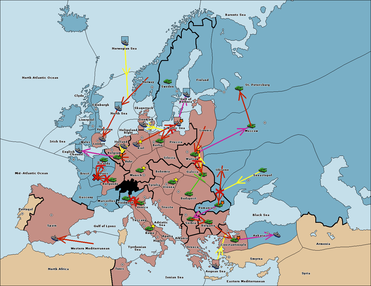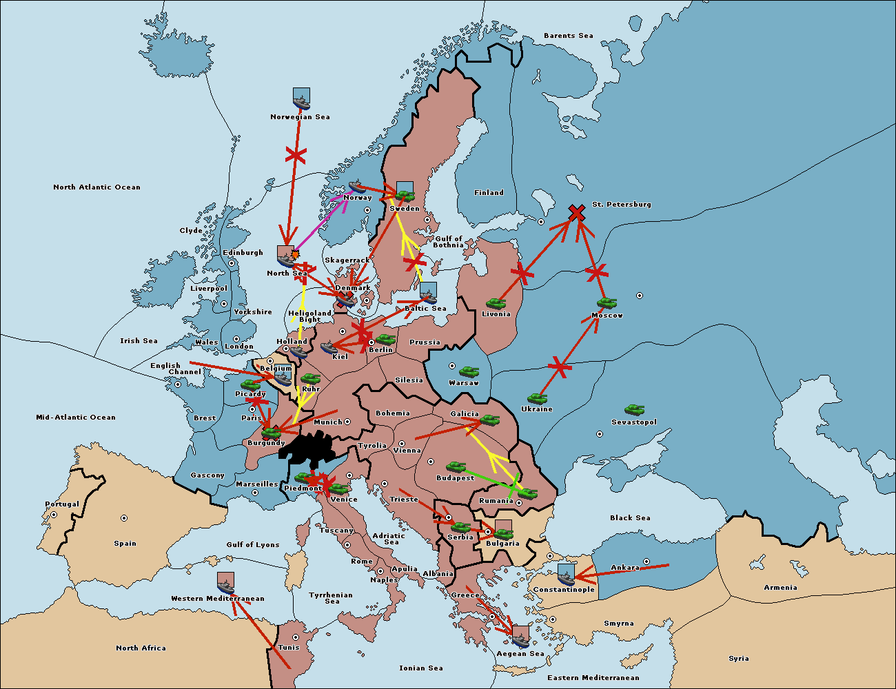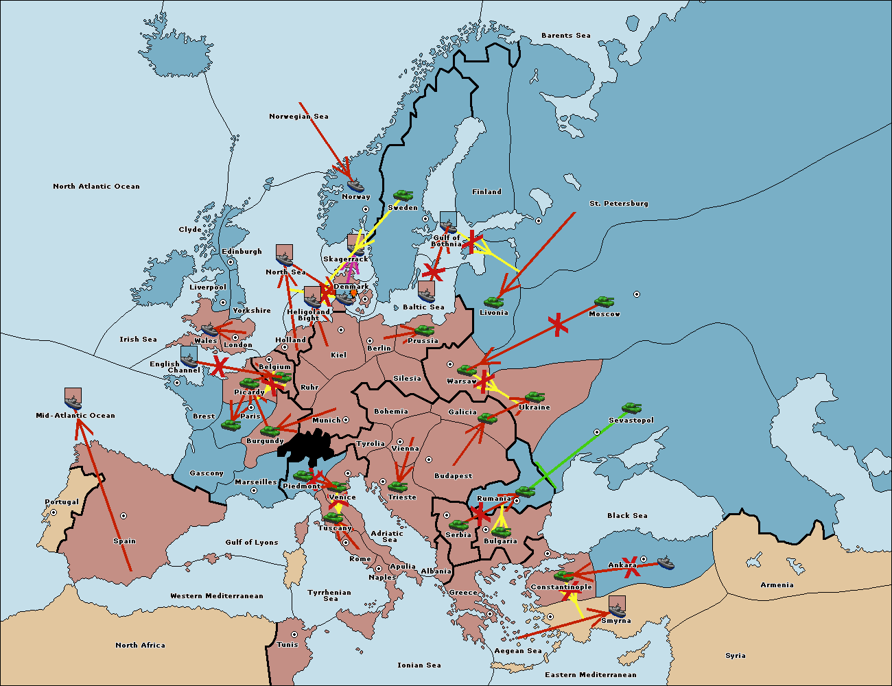 The fleet at Aegean Sea support move to Constantinople from Bulgaria.