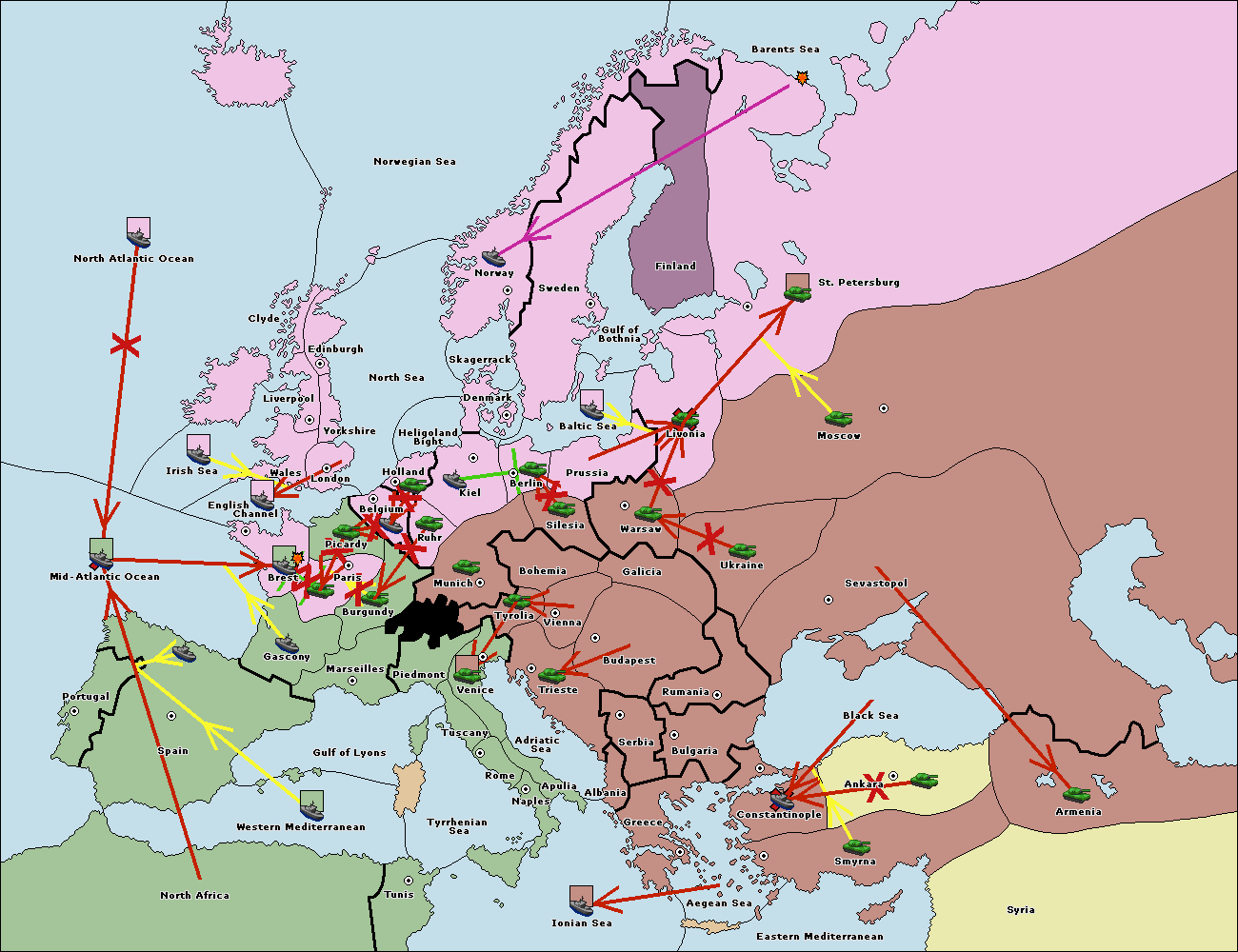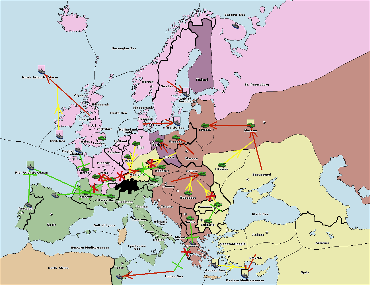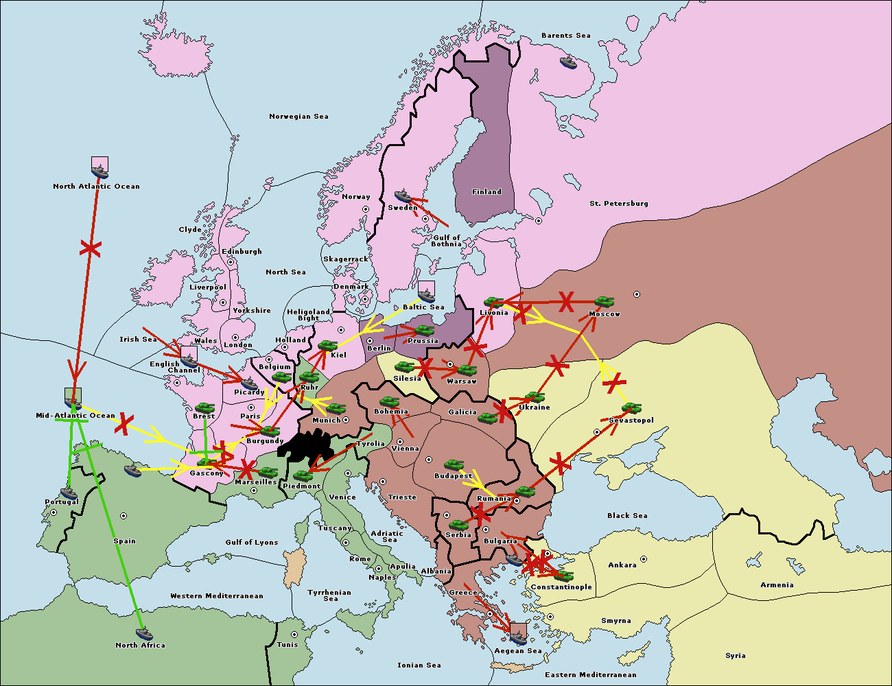 The fleet at Mid-Atlantic Ocean move to Western Mediterranean.