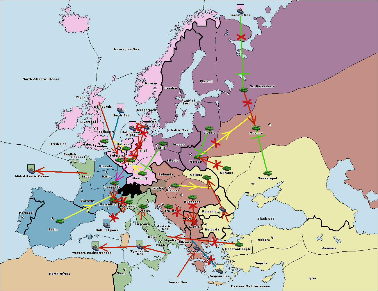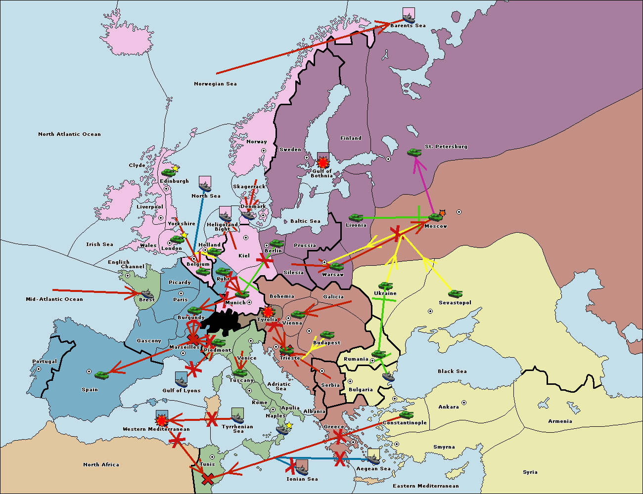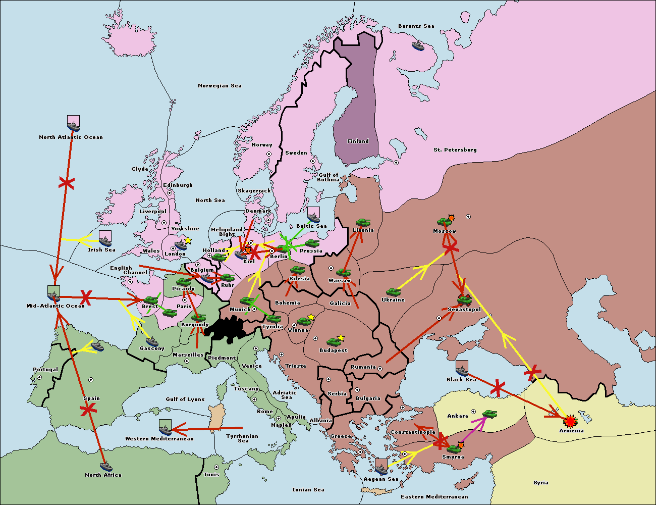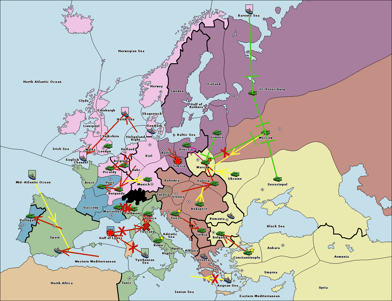 The fleet at Mid-Atlantic Ocean move to Western Mediterranean.