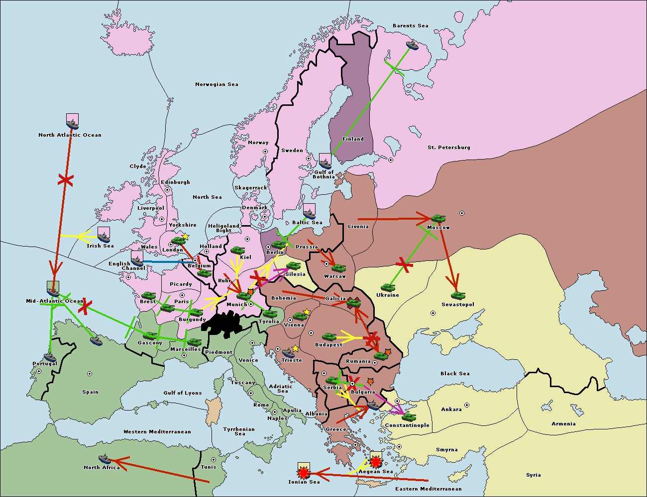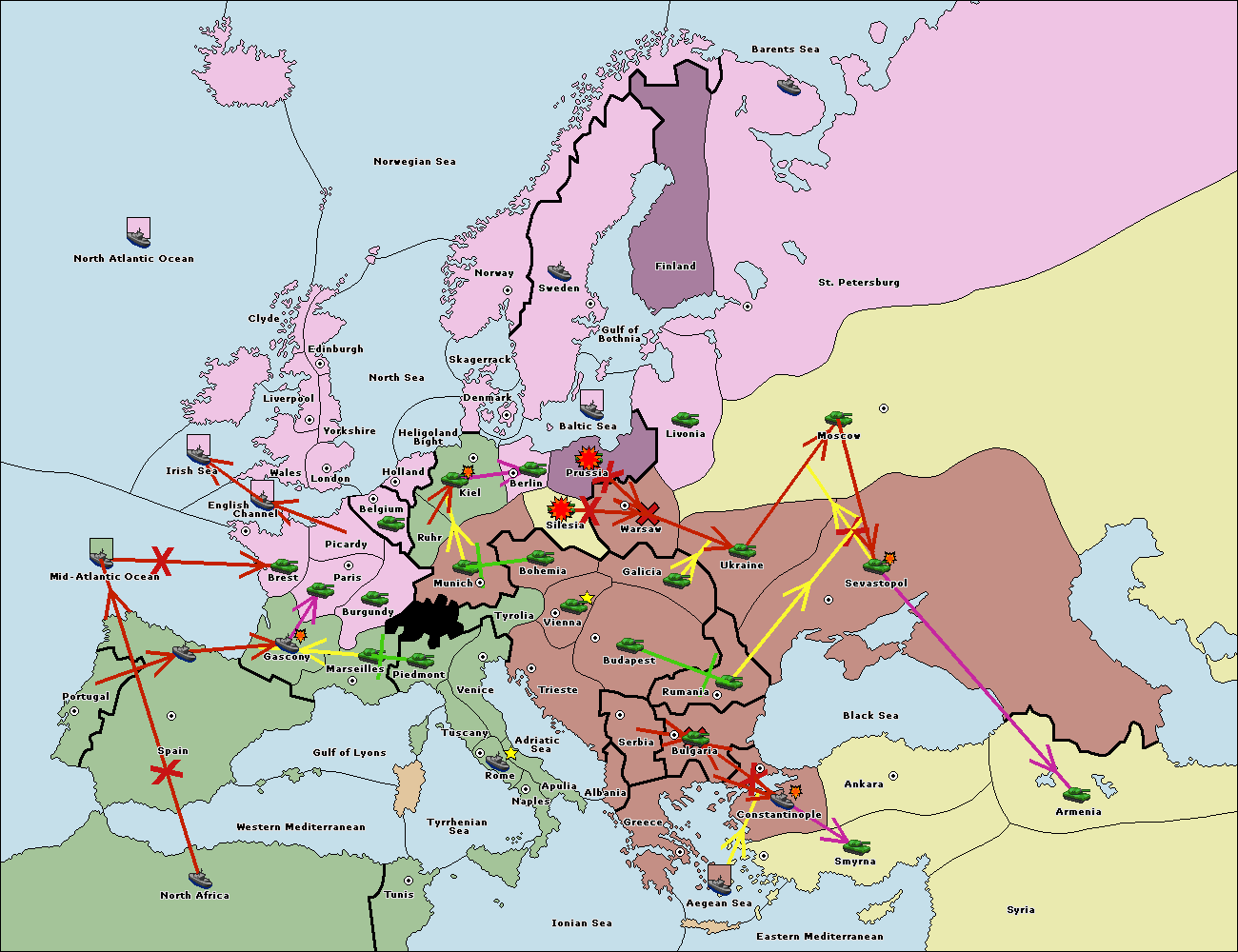 The fleet at Sevastopol support move to Rumania from Galicia.