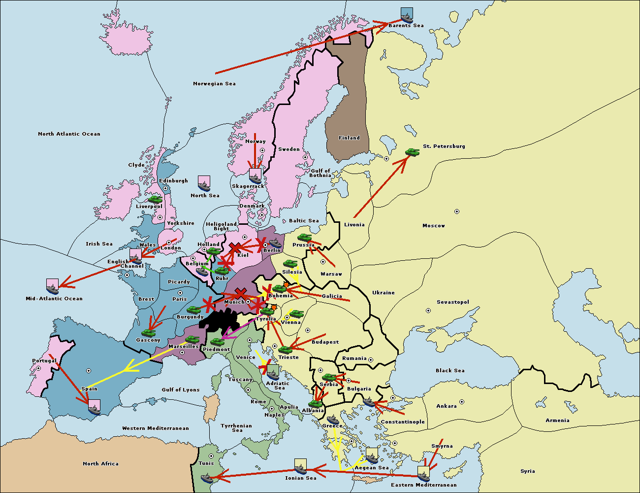 The fleet at St. Petersburg (South Coast) move to Livonia.