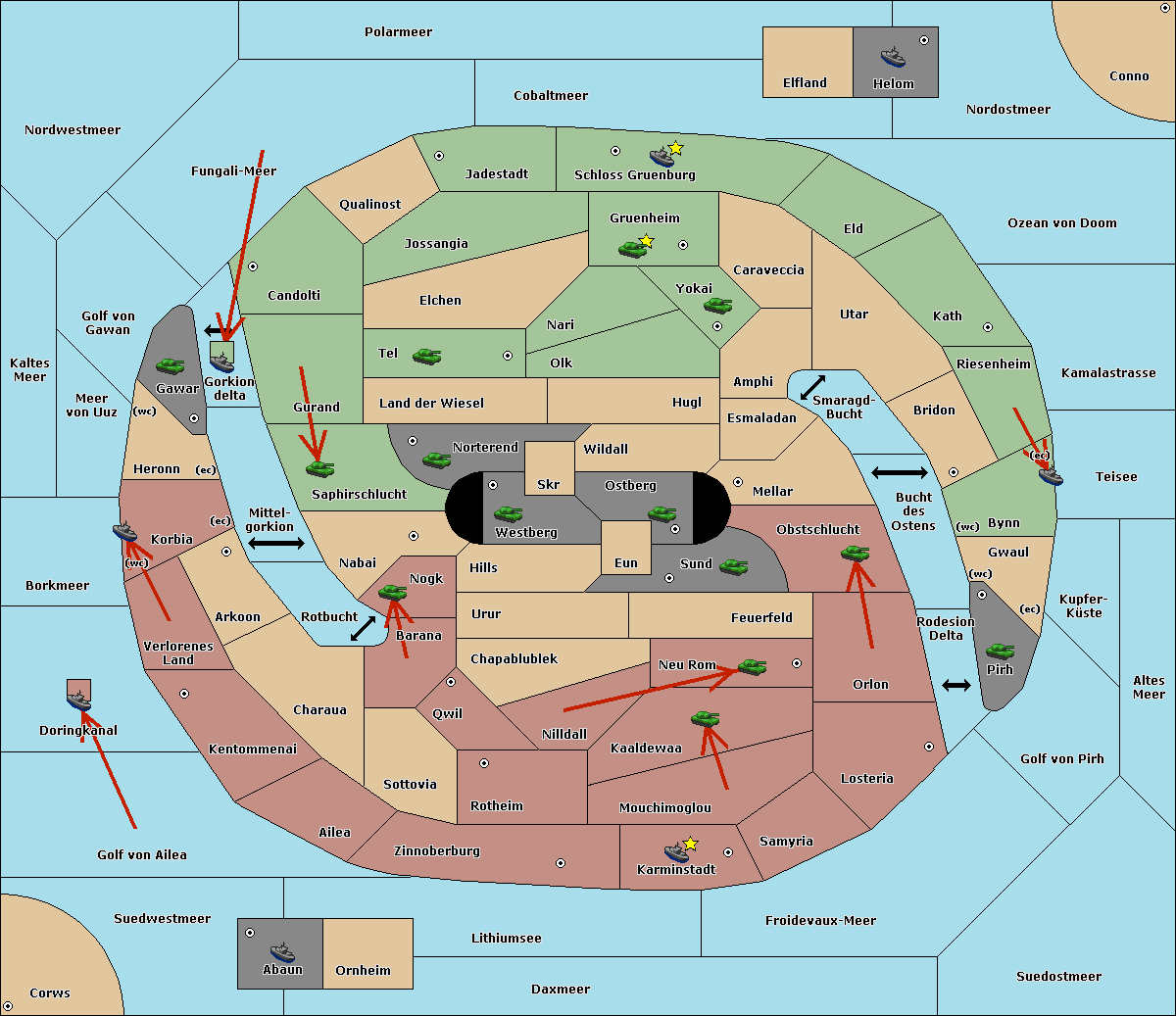 The fleet at Schloss Gruenburg move to Ozean von Doom.