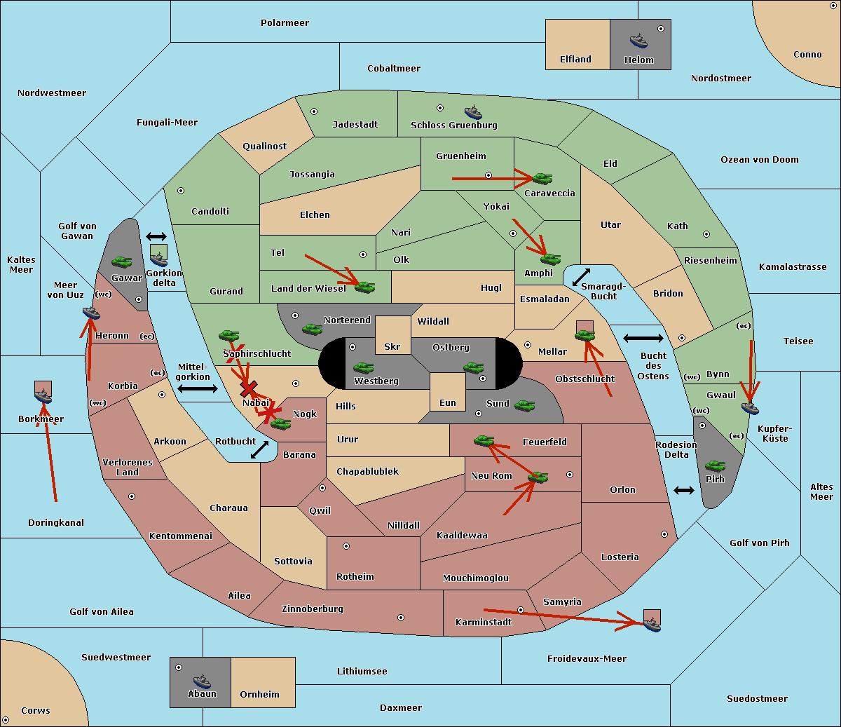 The fleet at Zinnoberburg move to Ailea.