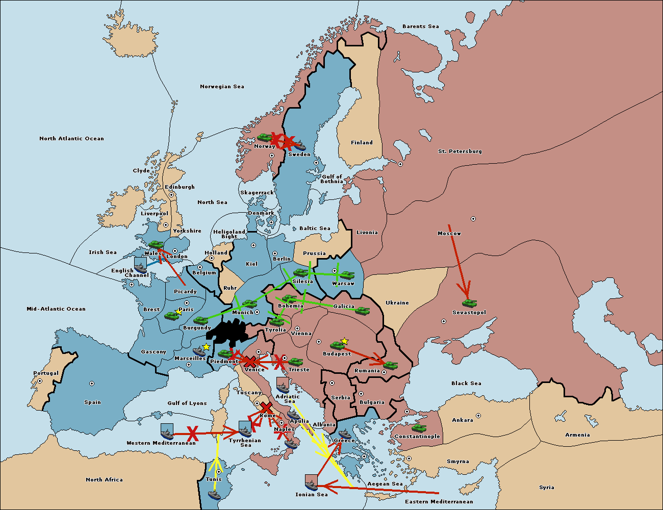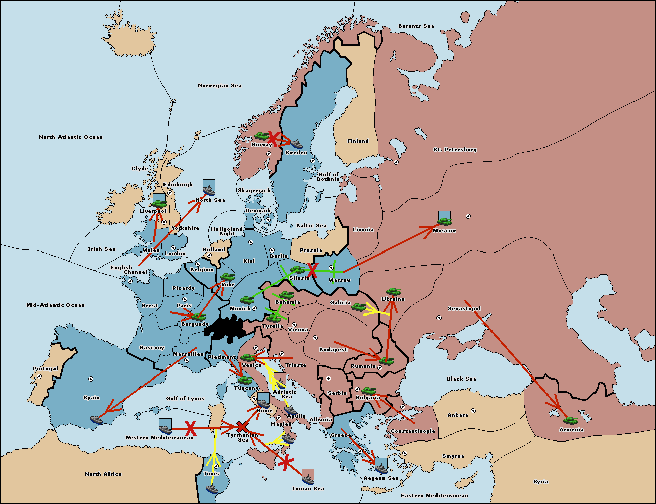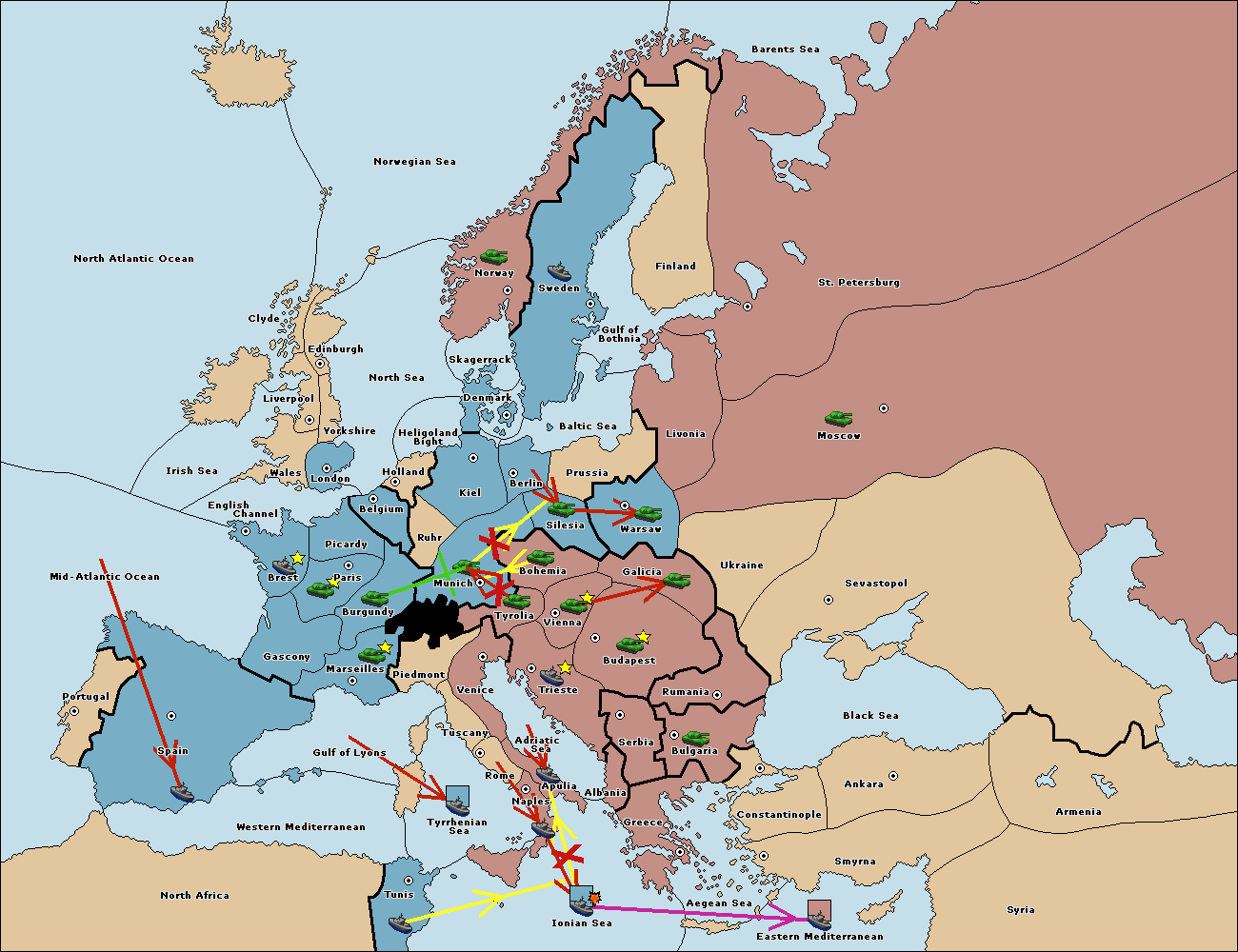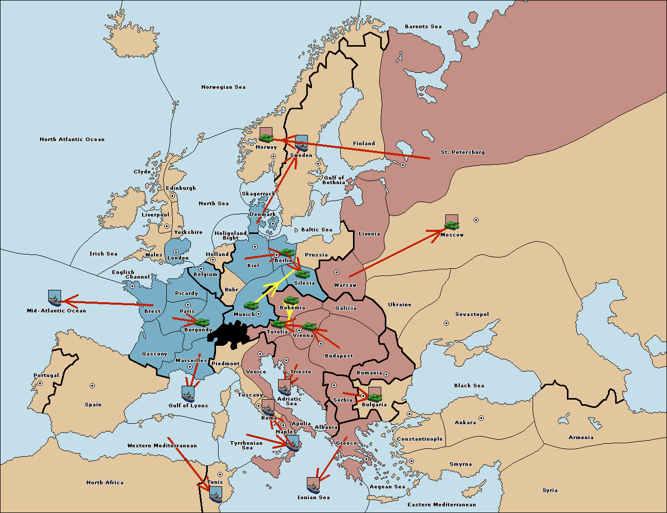 The fleet at Mid-Atlantic Ocean move to Western Mediterranean.