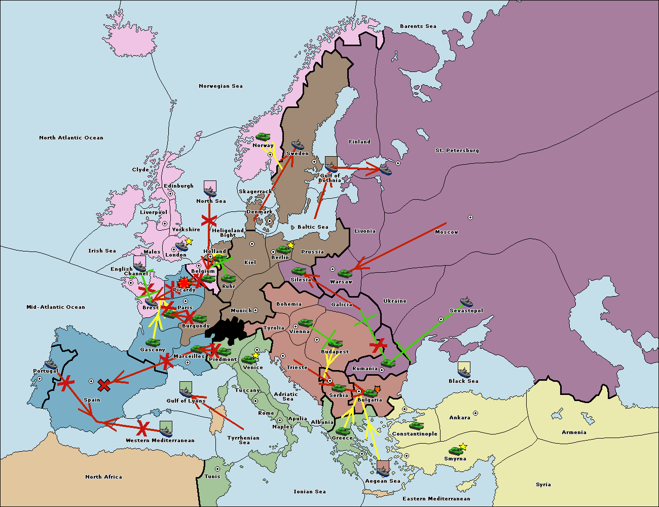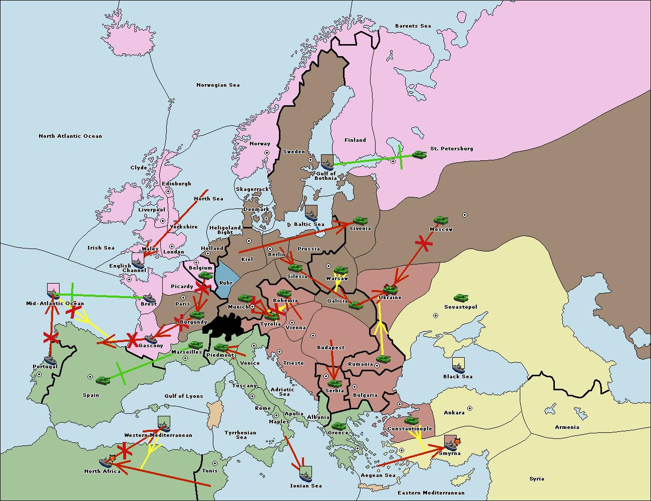 The fleet at North Africa move to Mid-Atlantic Ocean.