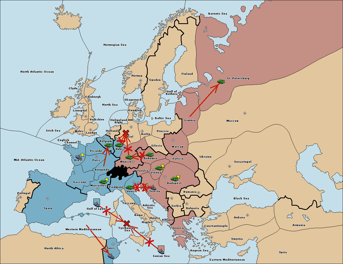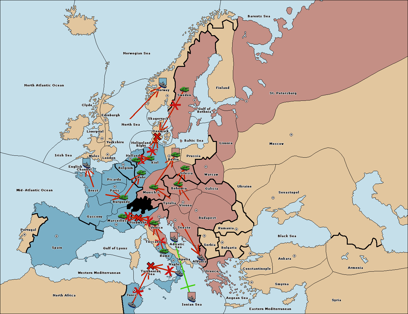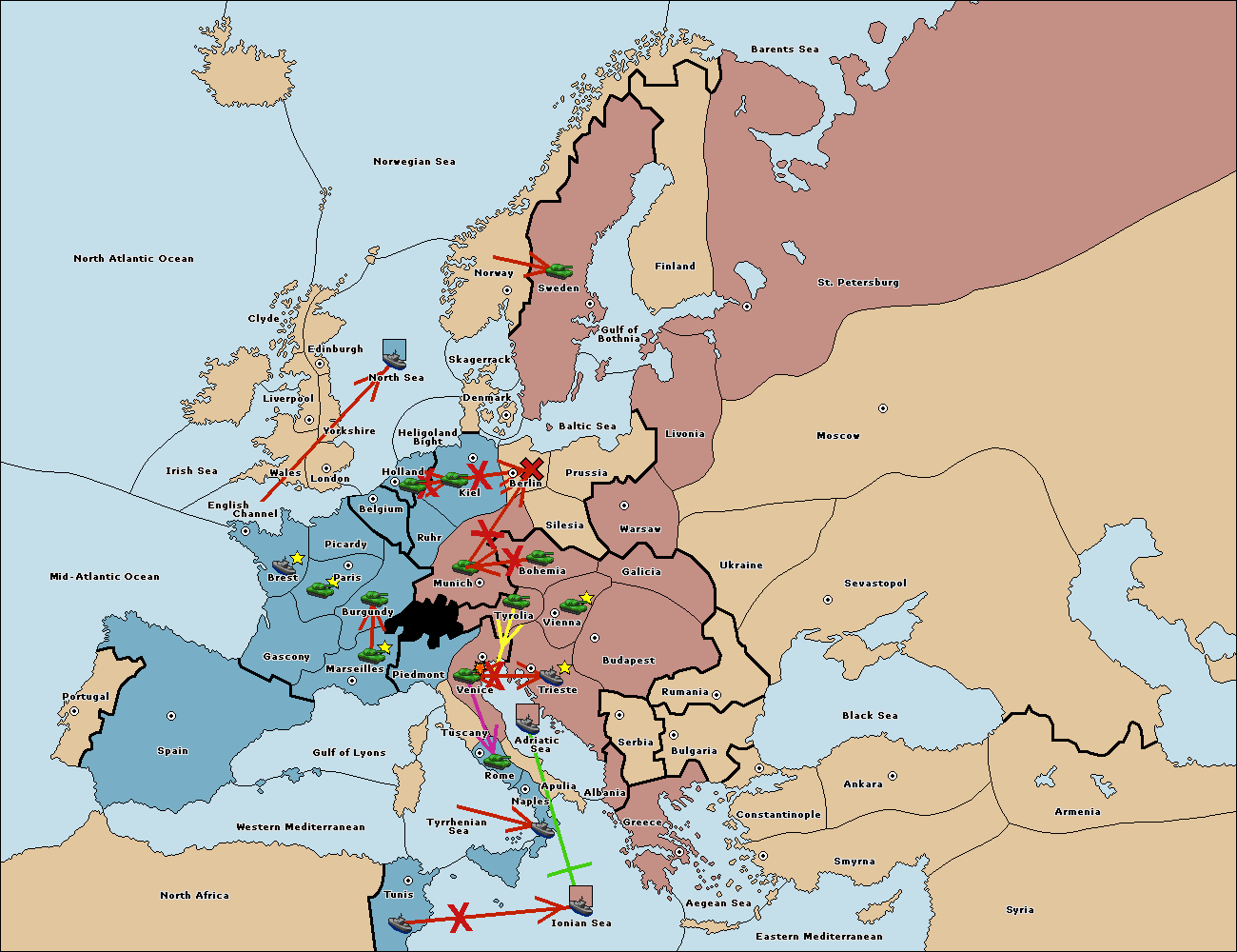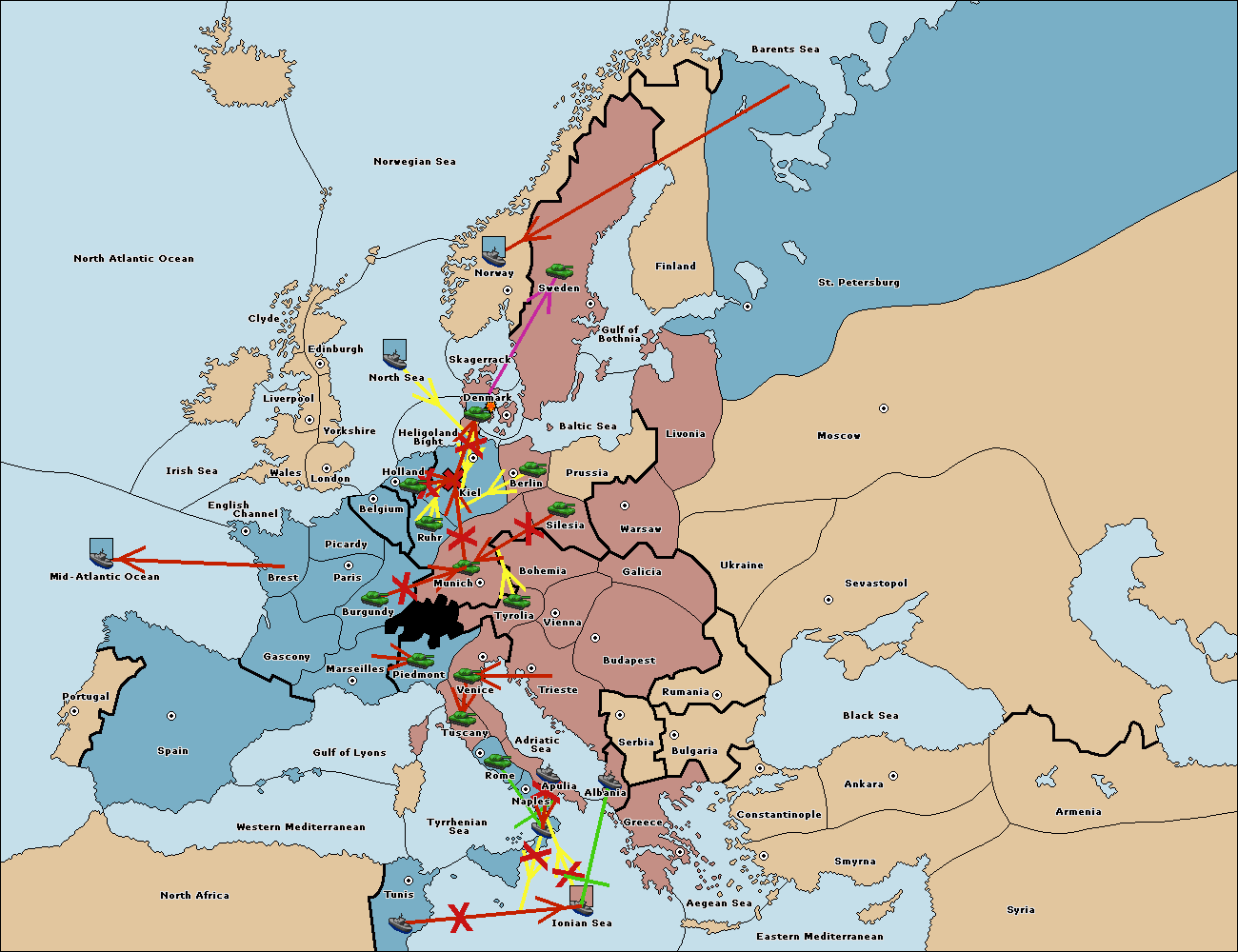 The fleet at Naples support move to Ionian Sea from Tunis.