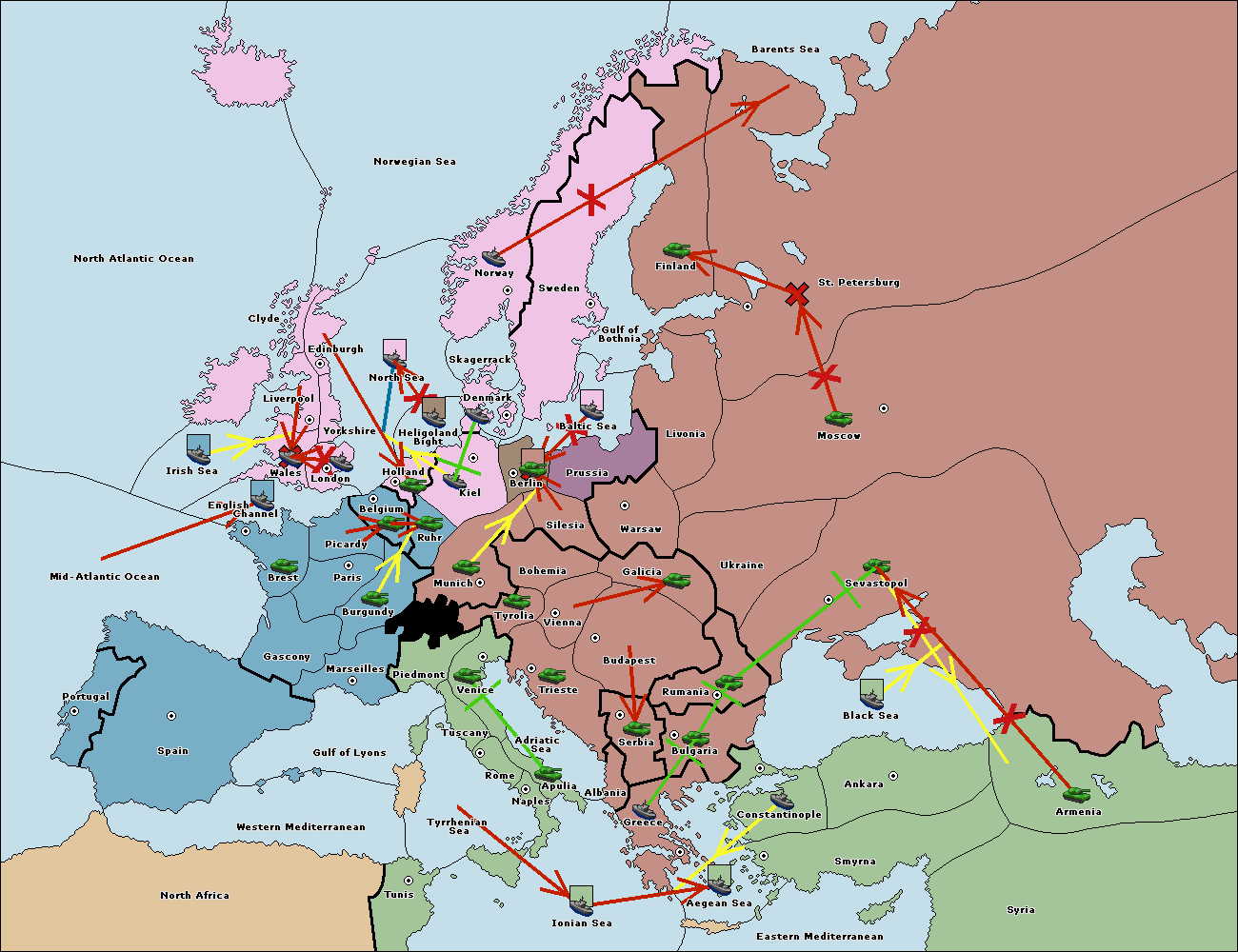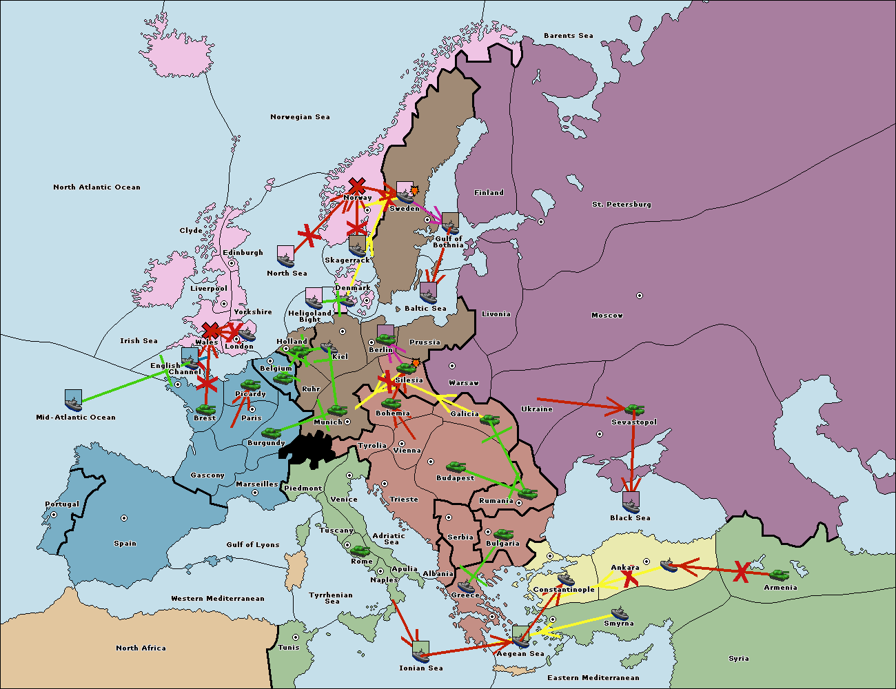 The fleet at Gulf of Bothnia move to St. Petersburg (South Coast).