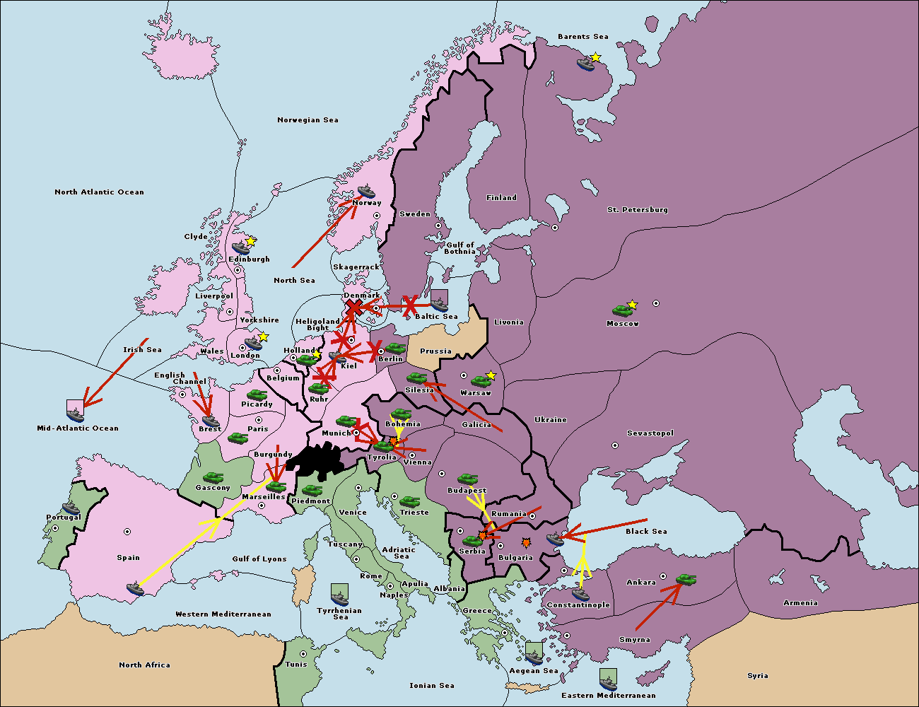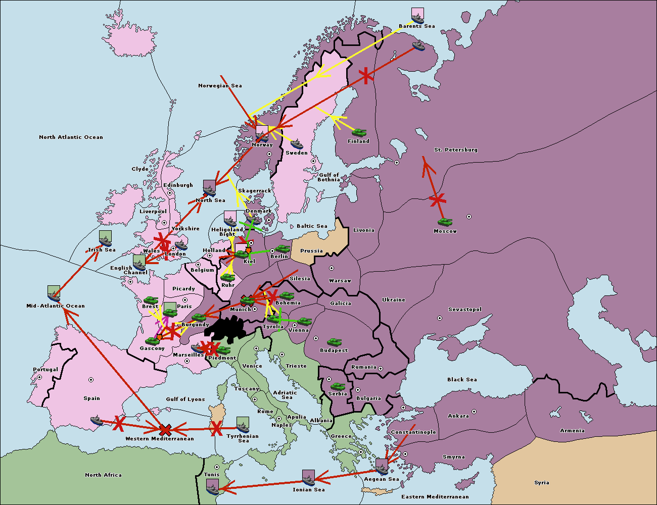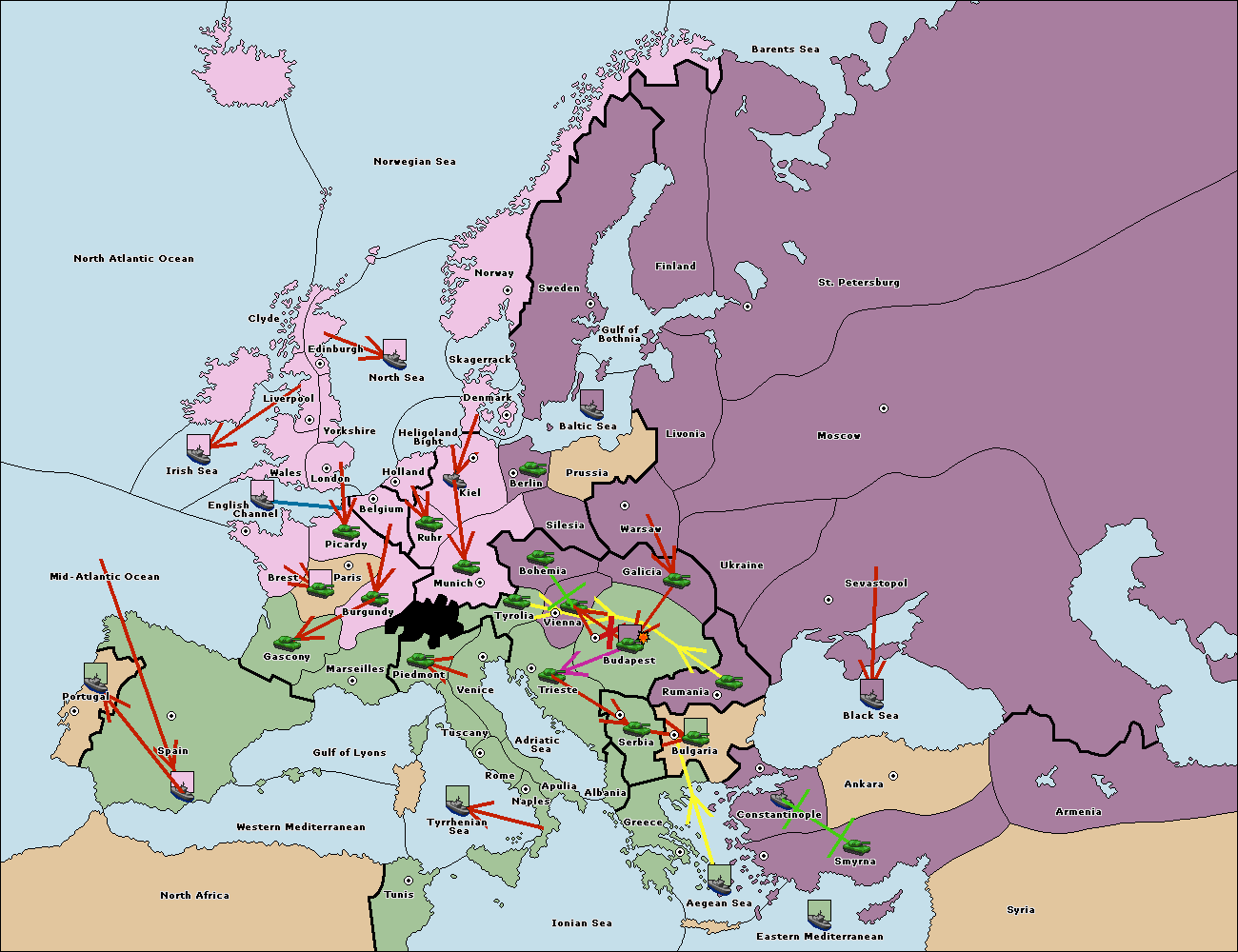 The fleet at Bulgaria (North Coast) move to Constantinople.