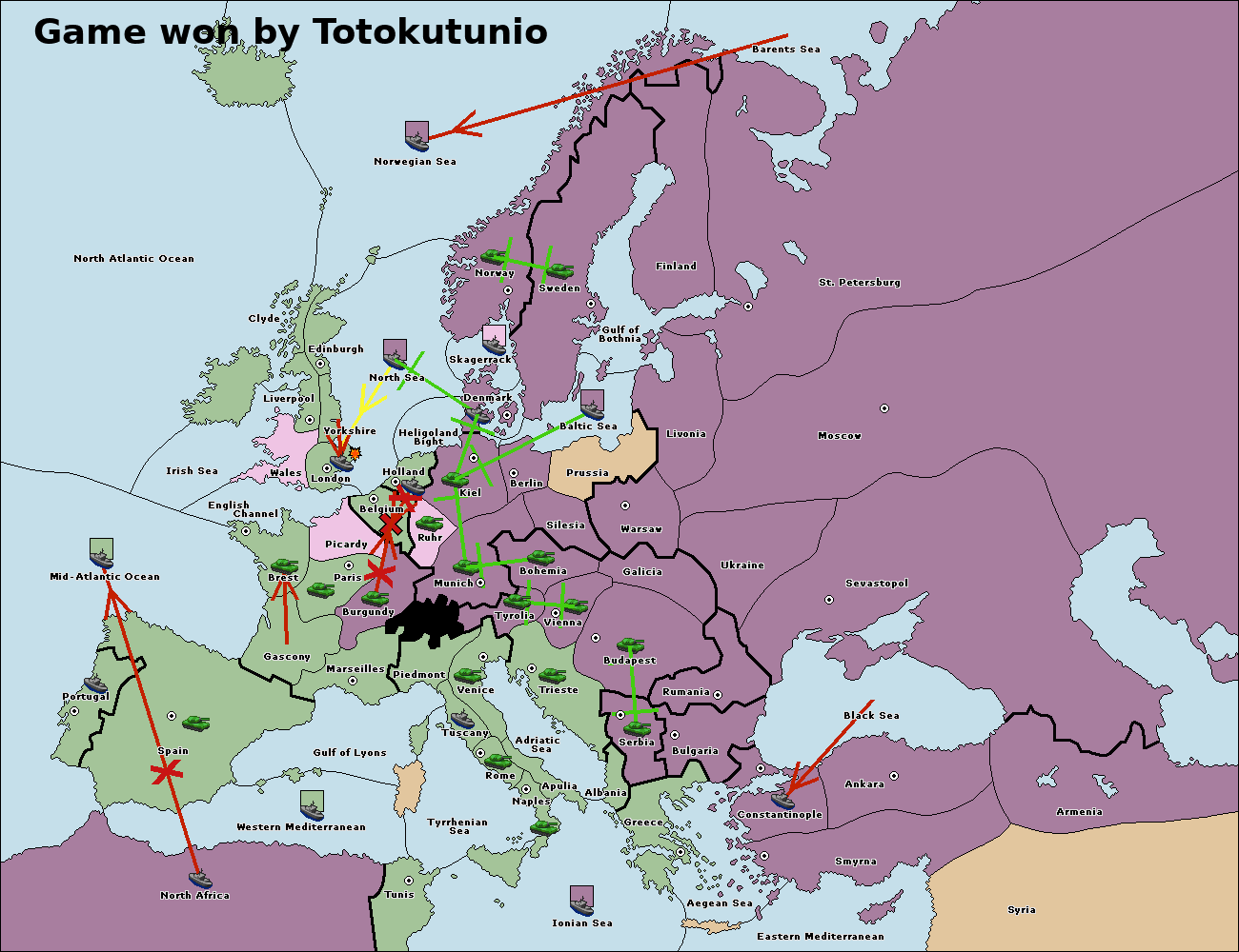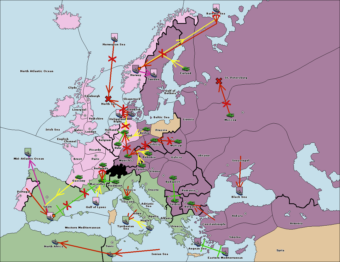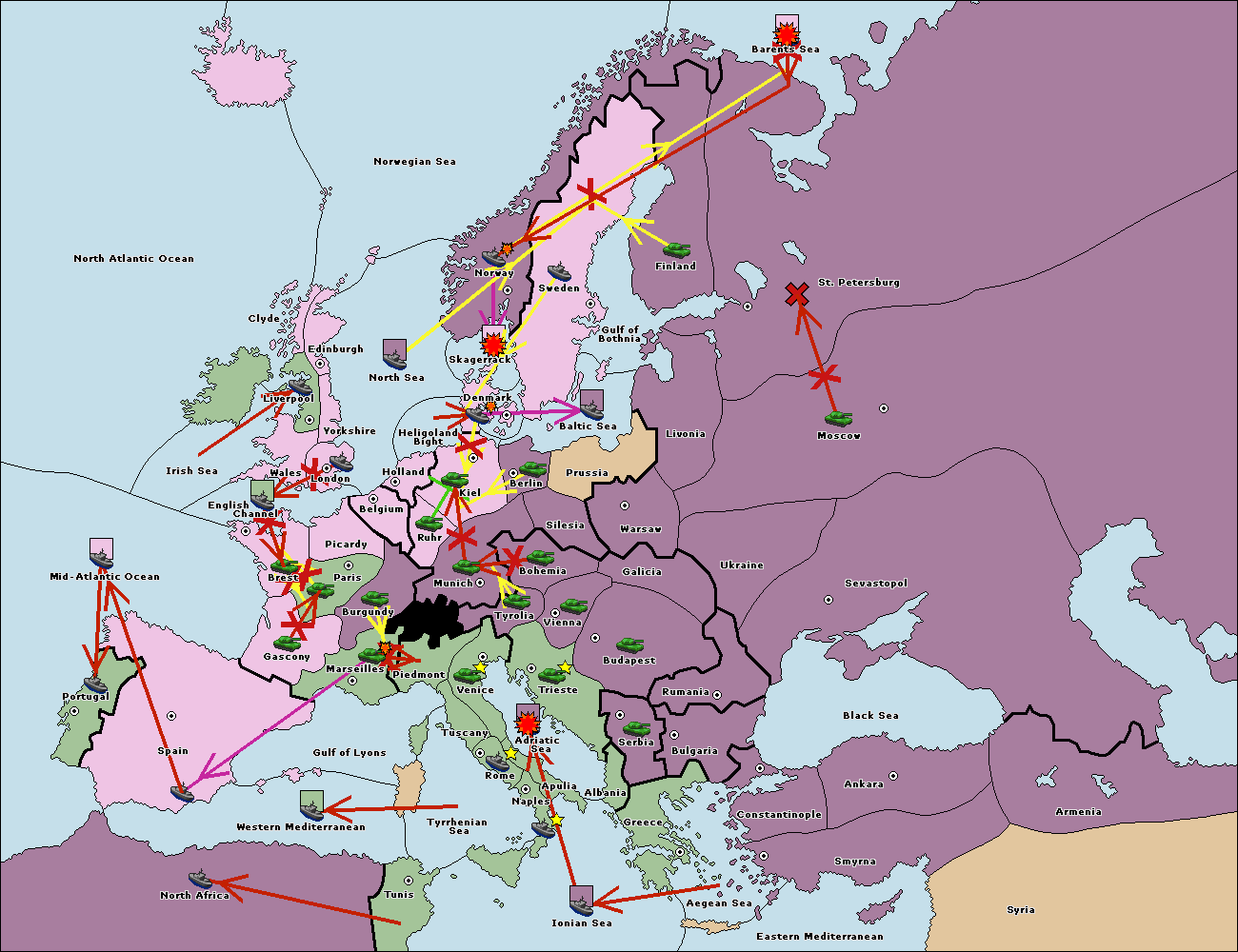 The fleet at Bulgaria (North Coast) move to Constantinople.