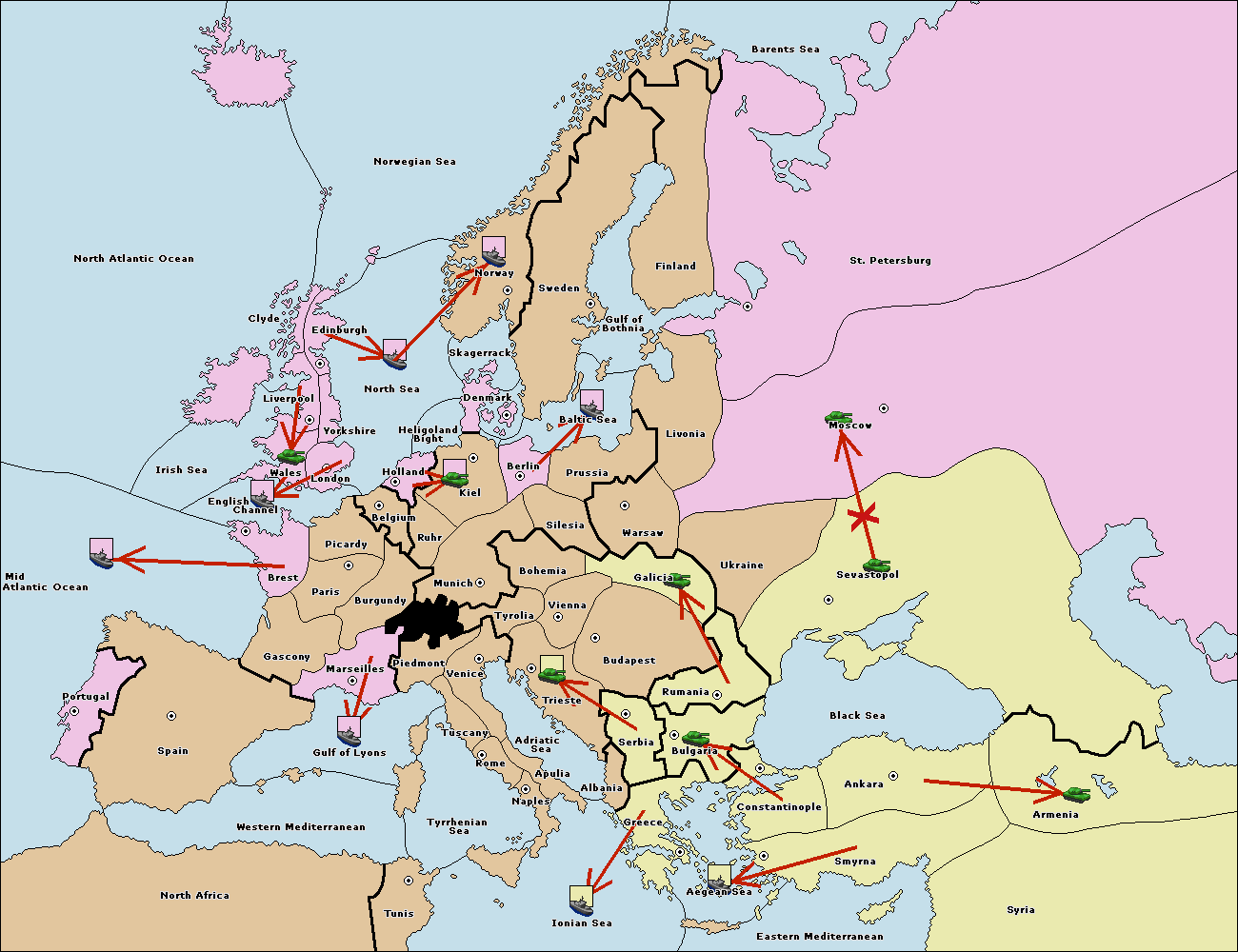 The army at Sevastopol move to Moscow.