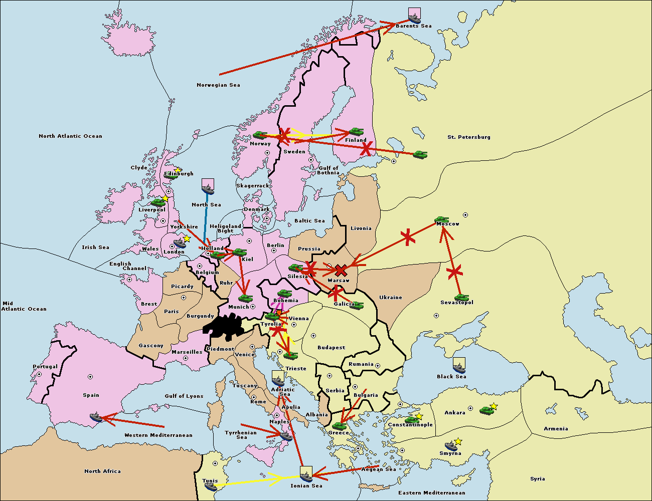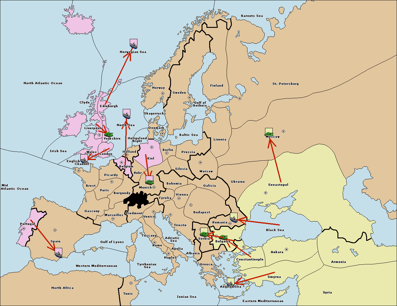 The fleet at Mid-Atlantic Ocean move to Western Mediterranean.