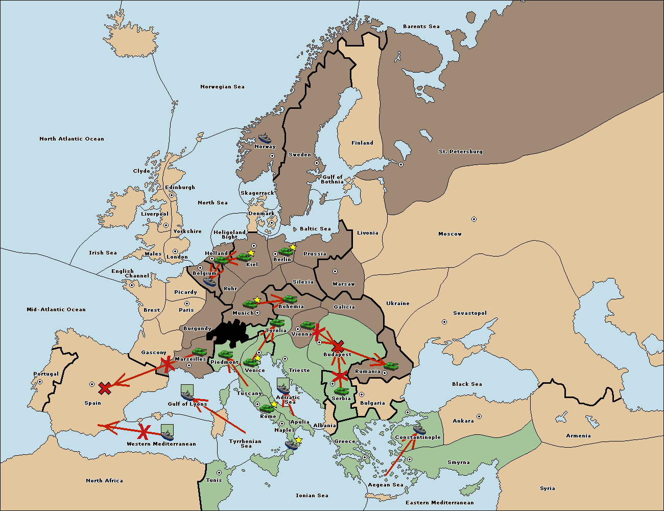 The fleet at Bulgaria (North Coast) move to Black Sea.
