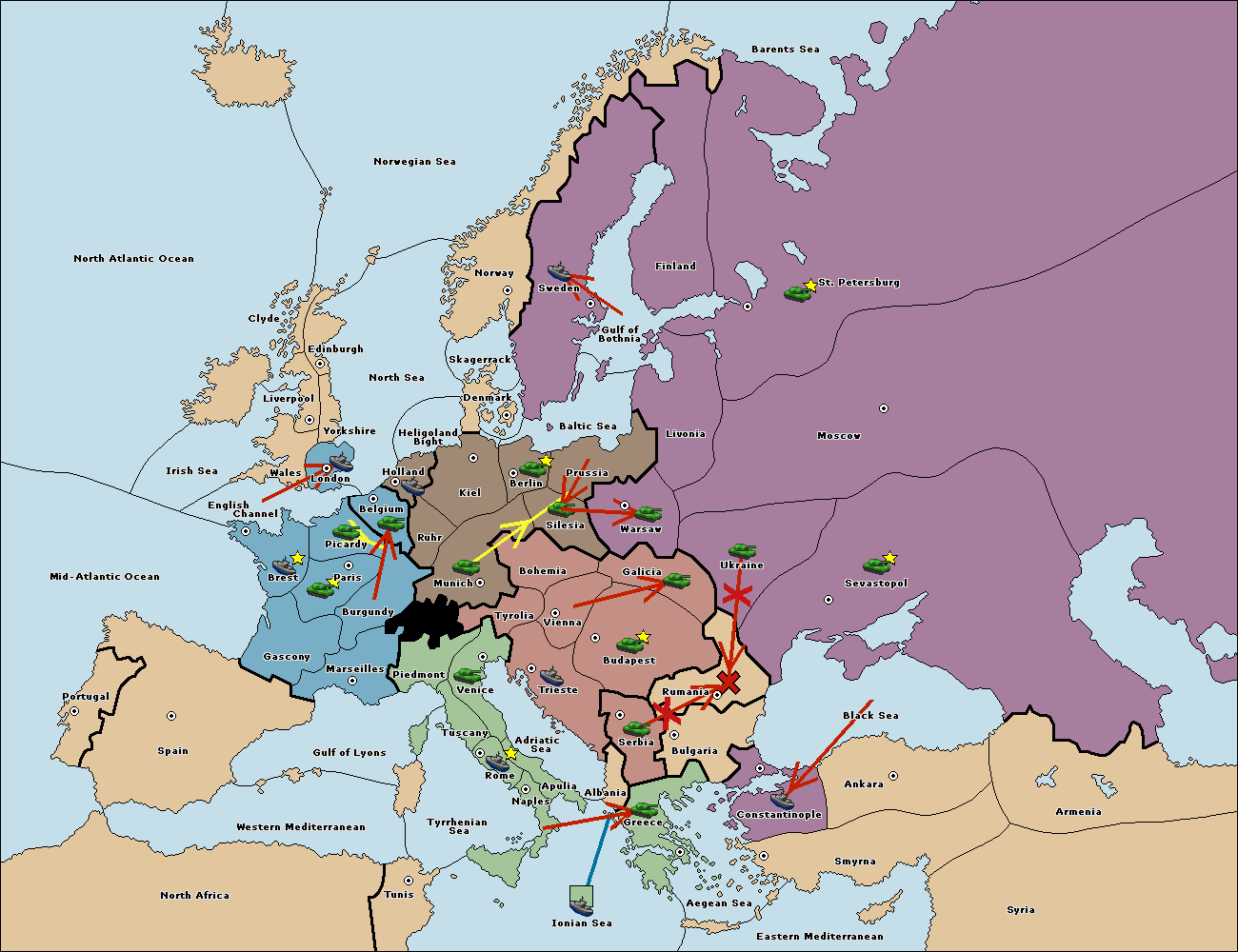 The fleet at Constantinople support move to Bulgaria from Greece.