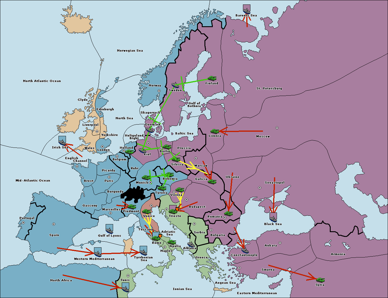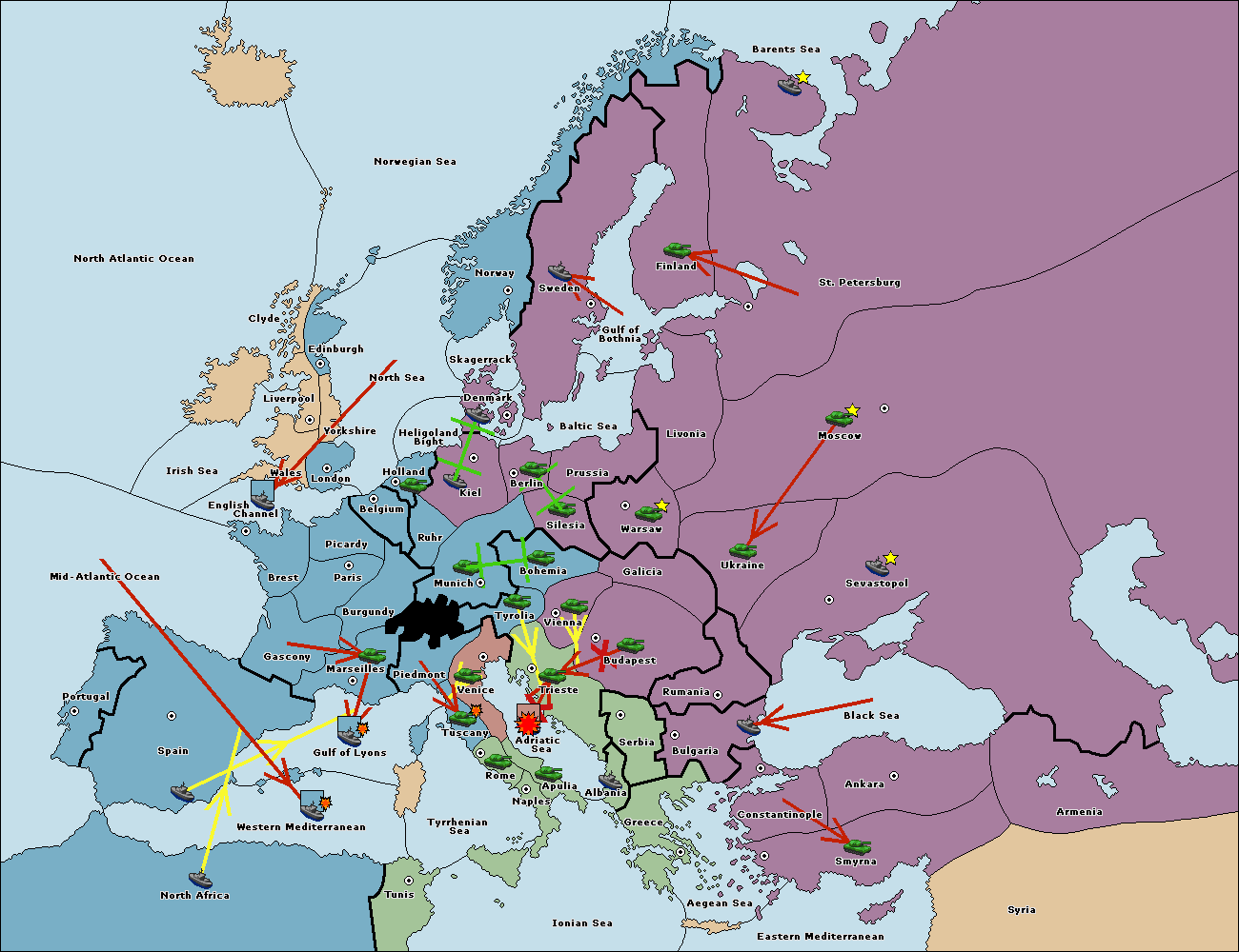 The fleet at Gulf of Lyons move to Tyrrhenian Sea.