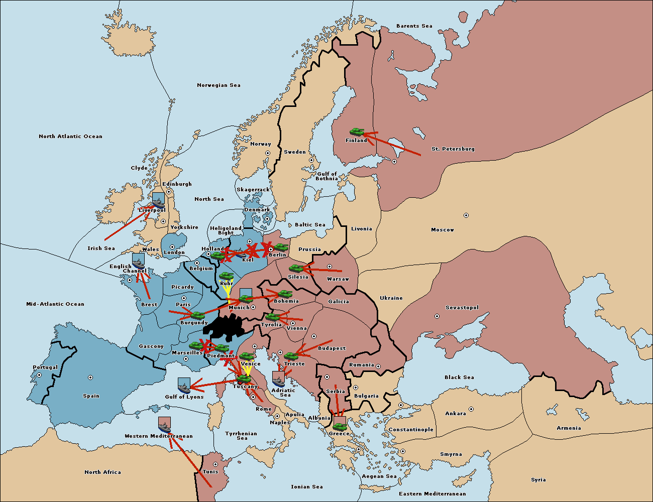 The fleet at Tuscany move to Tyrrhenian Sea.