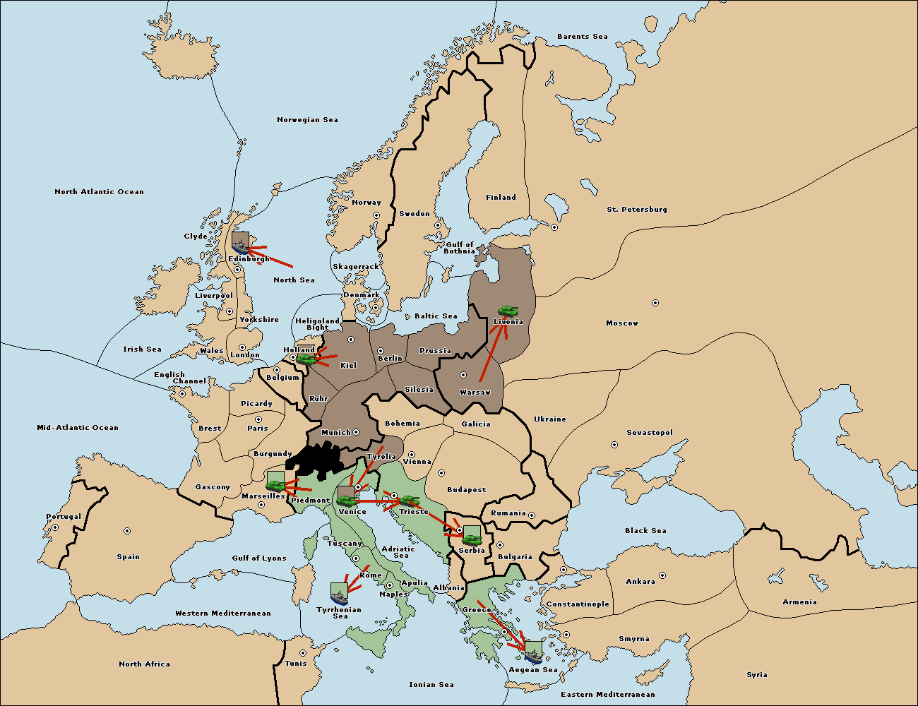 The fleet at Berlin move to Baltic Sea.