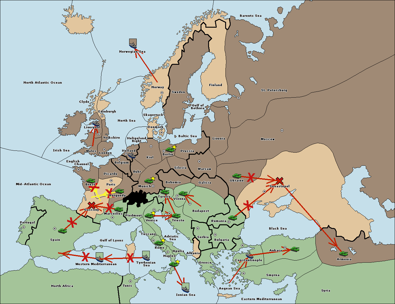 The fleet at North Africa move to Western Mediterranean.