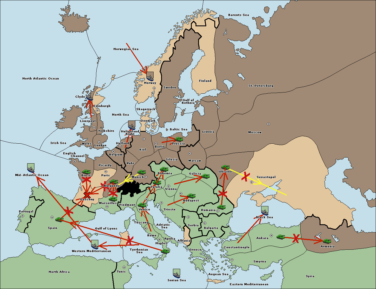 The army at Munich support move to Burgundy from Marseilles.