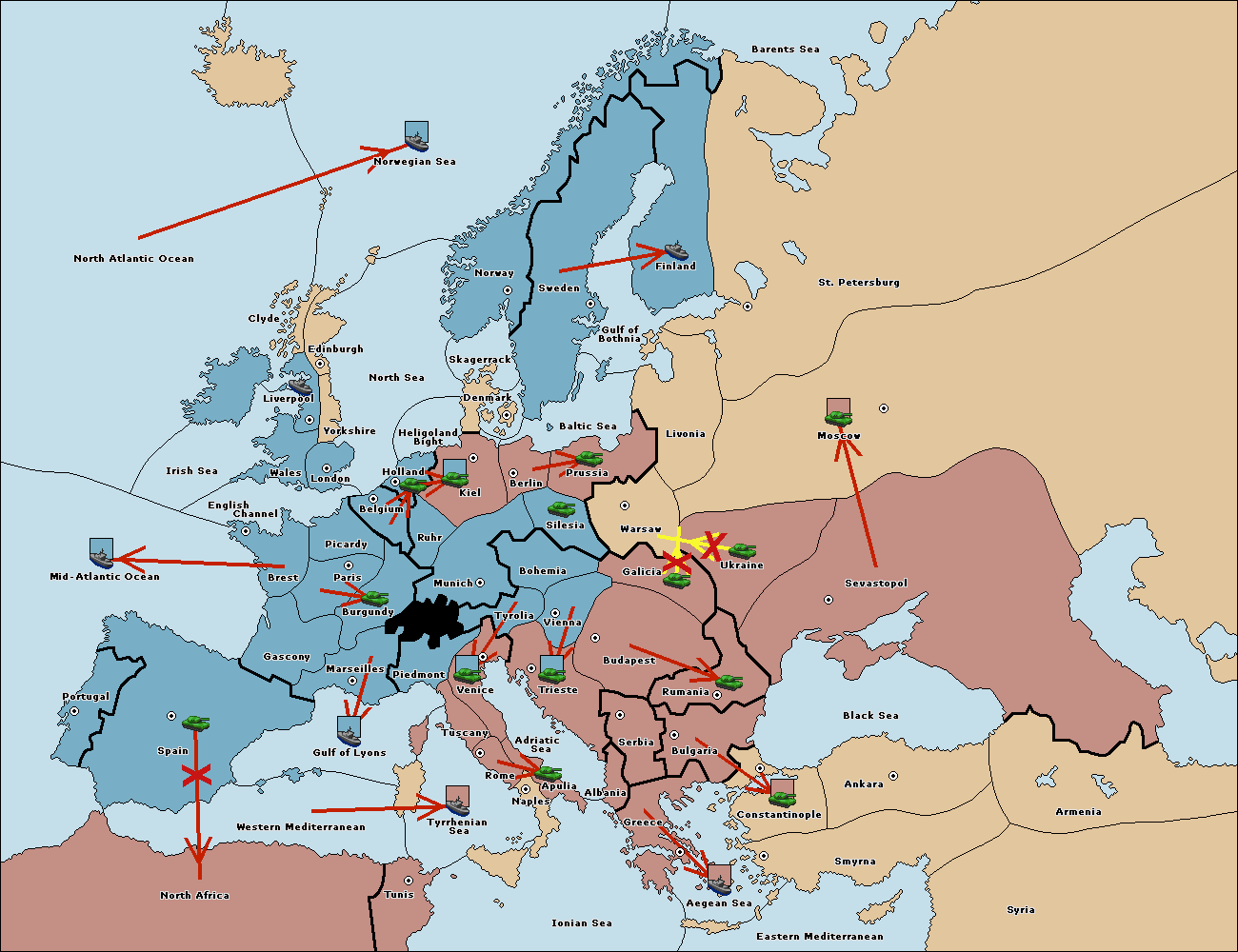 The fleet at Mid-Atlantic Ocean move to Western Mediterranean.