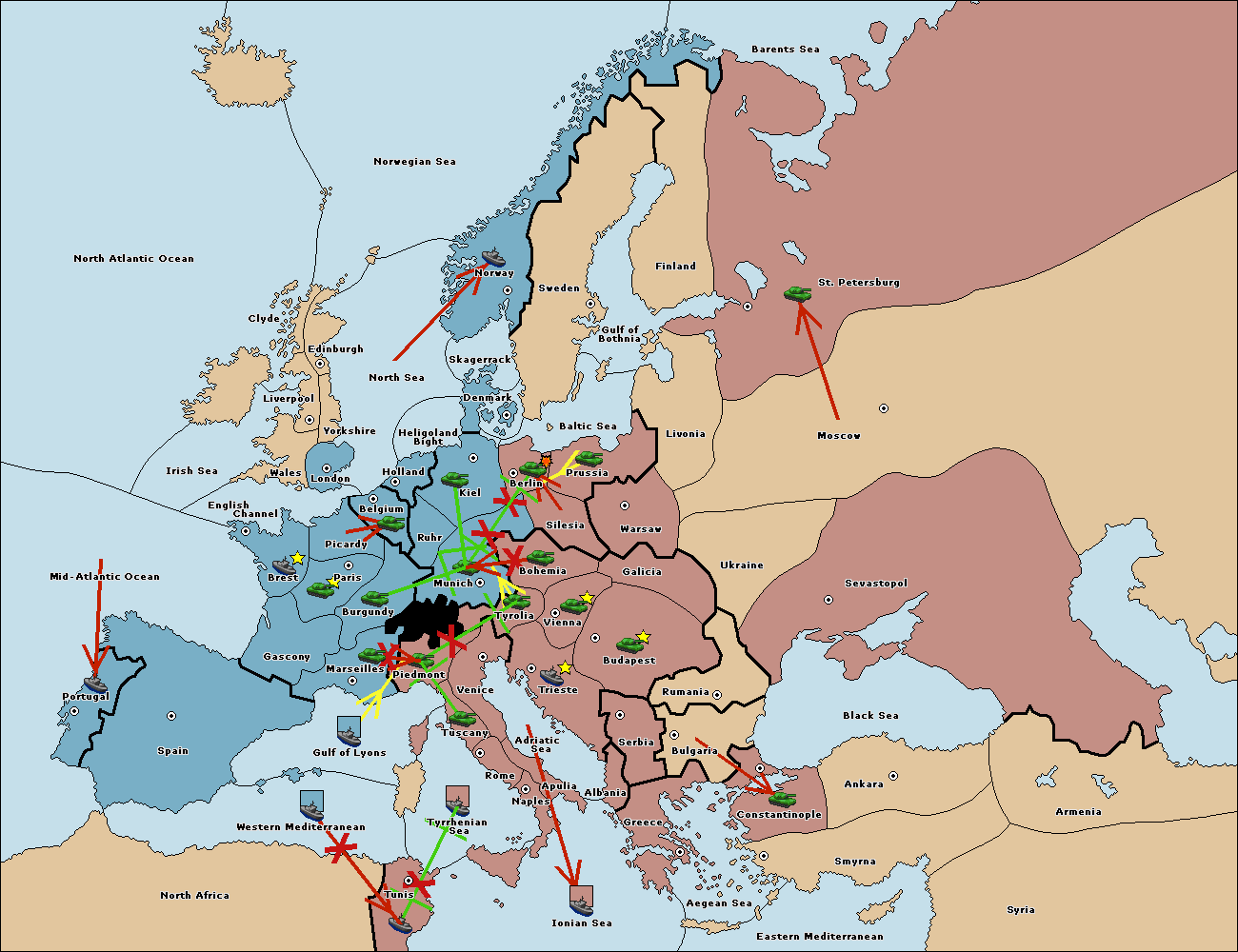 The fleet at Tyrrhenian Sea support hold to Tunis.