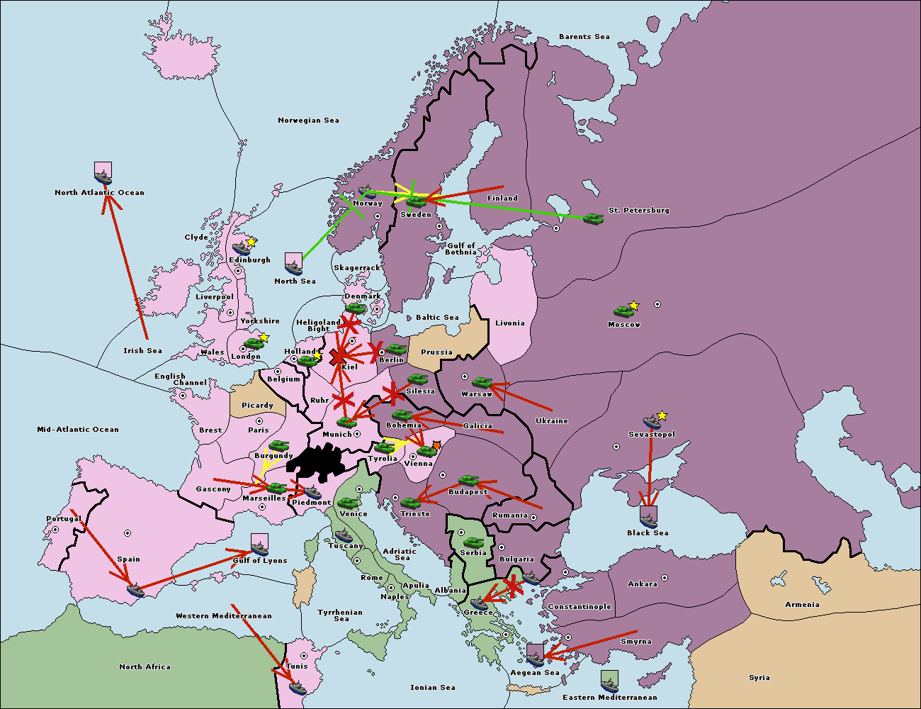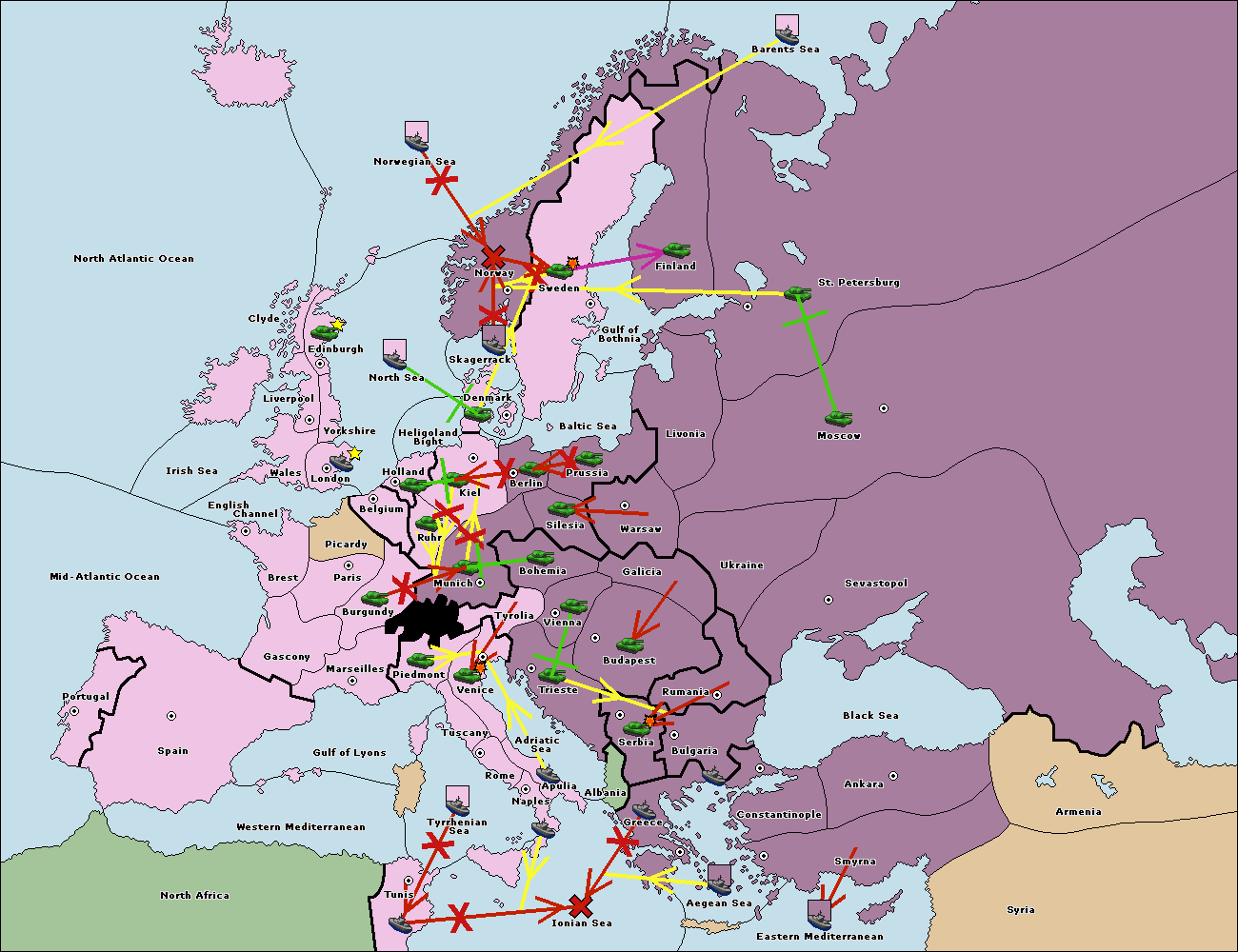 The fleet at Bulgaria (South Coast) move to Greece.