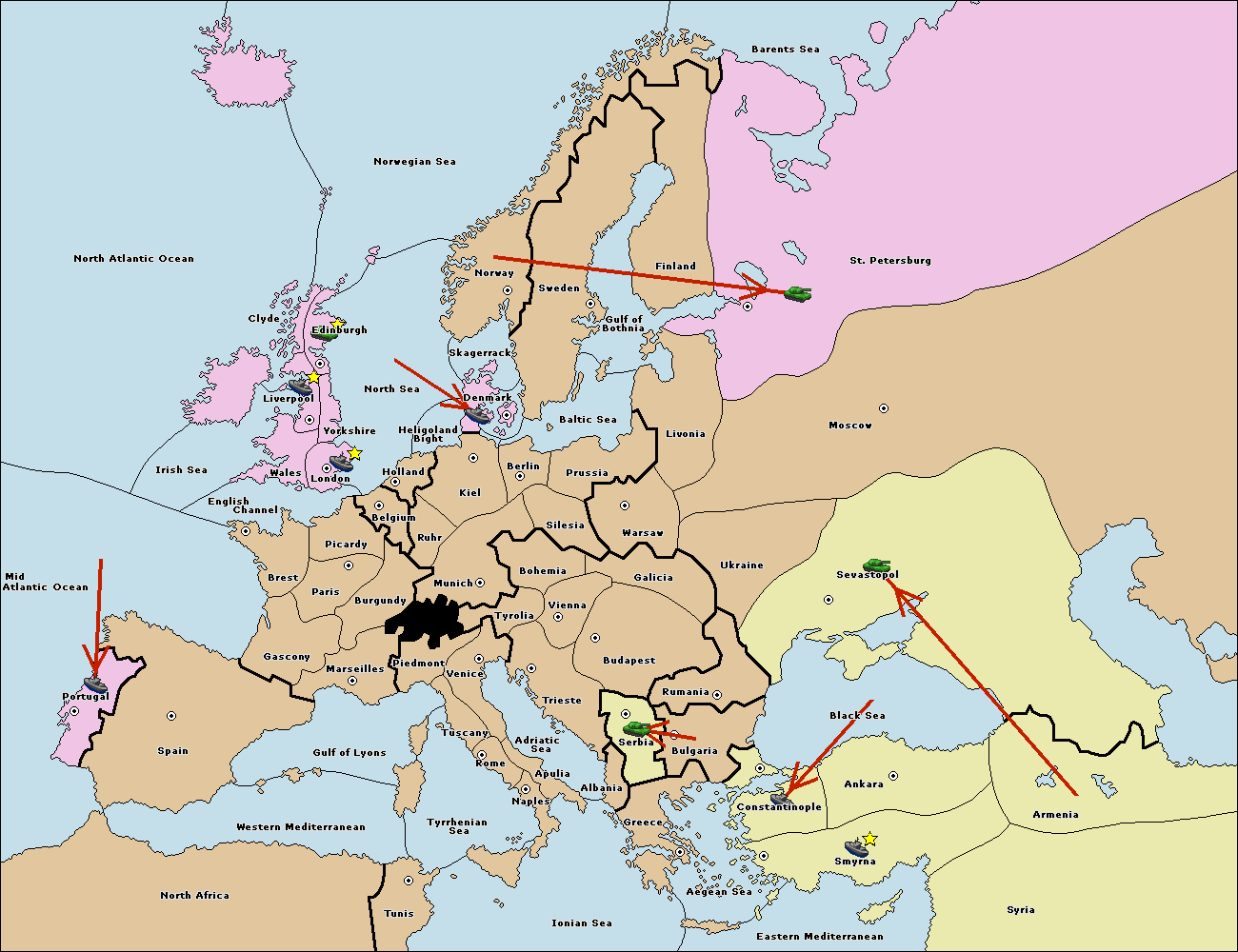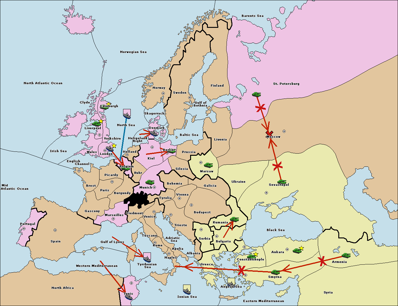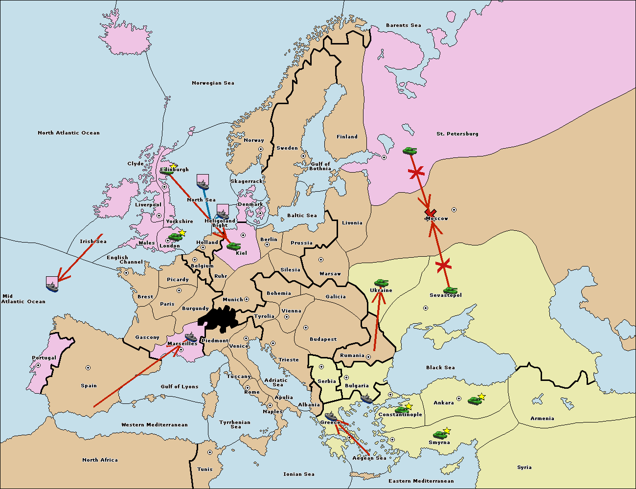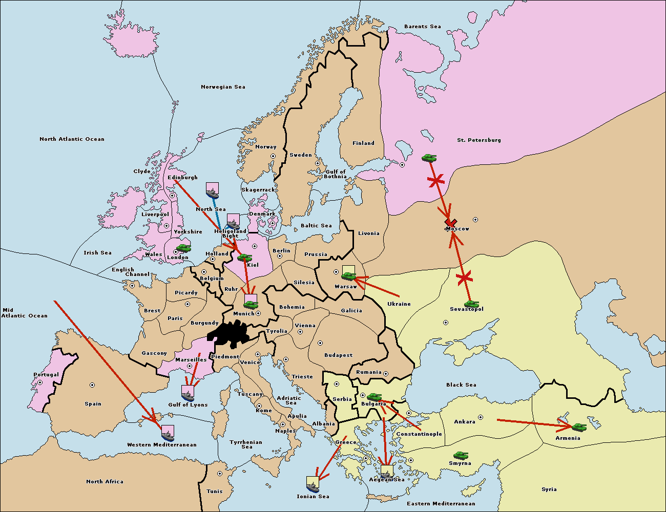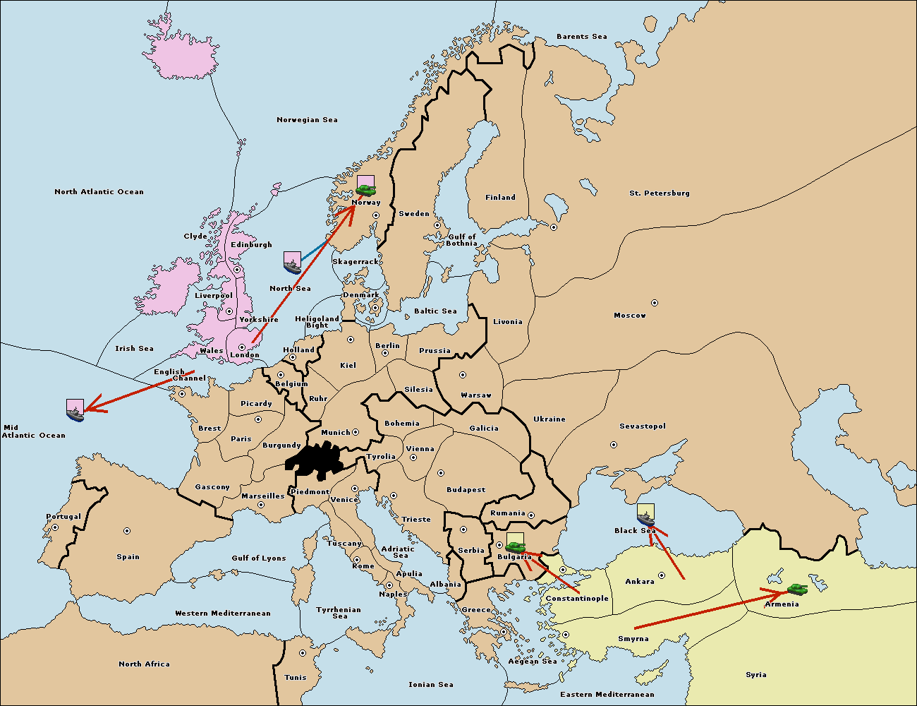 The fleet at Bulgaria (South Coast) move to Aegean Sea.