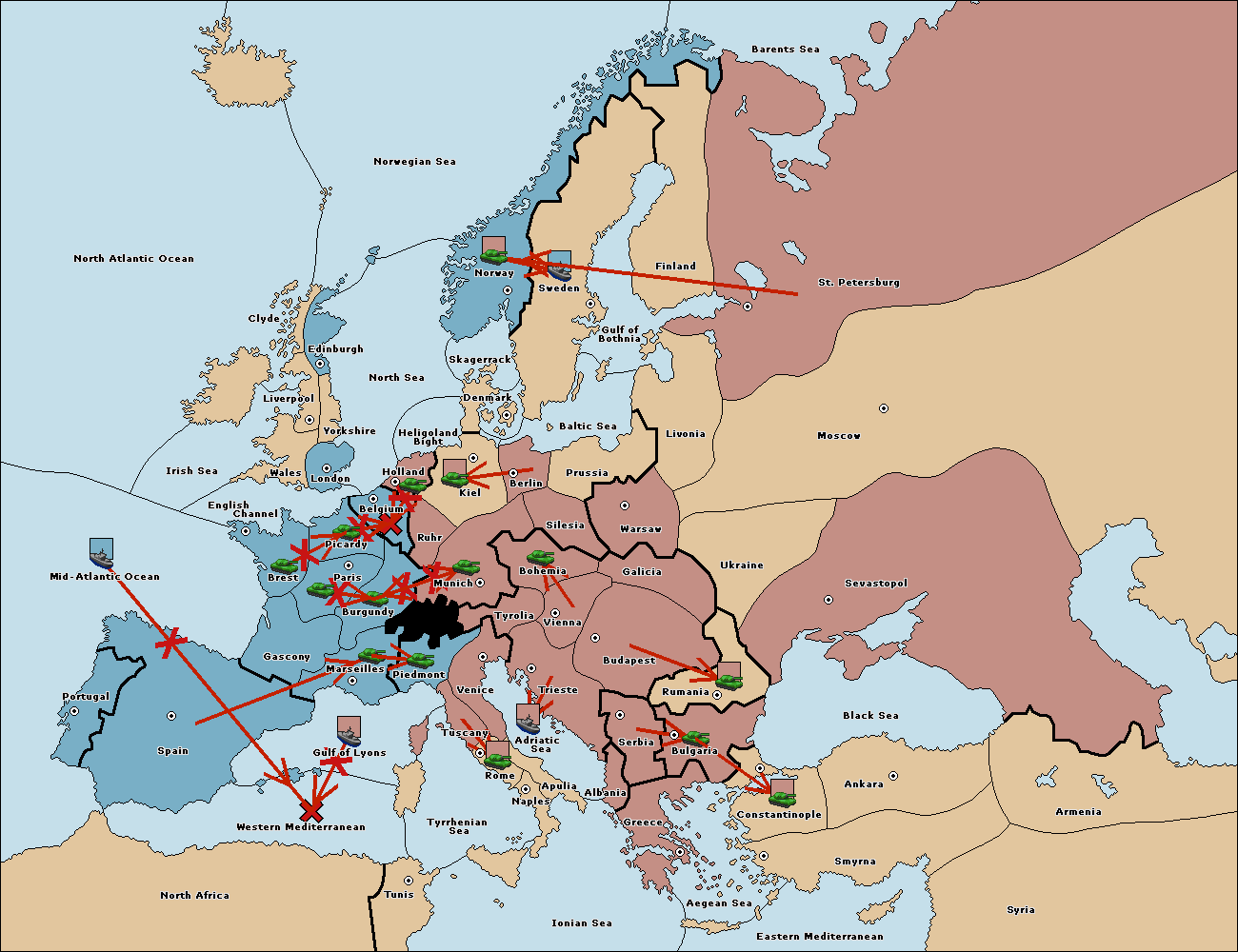 The fleet at Mid-Atlantic Ocean move to Western Mediterranean.
