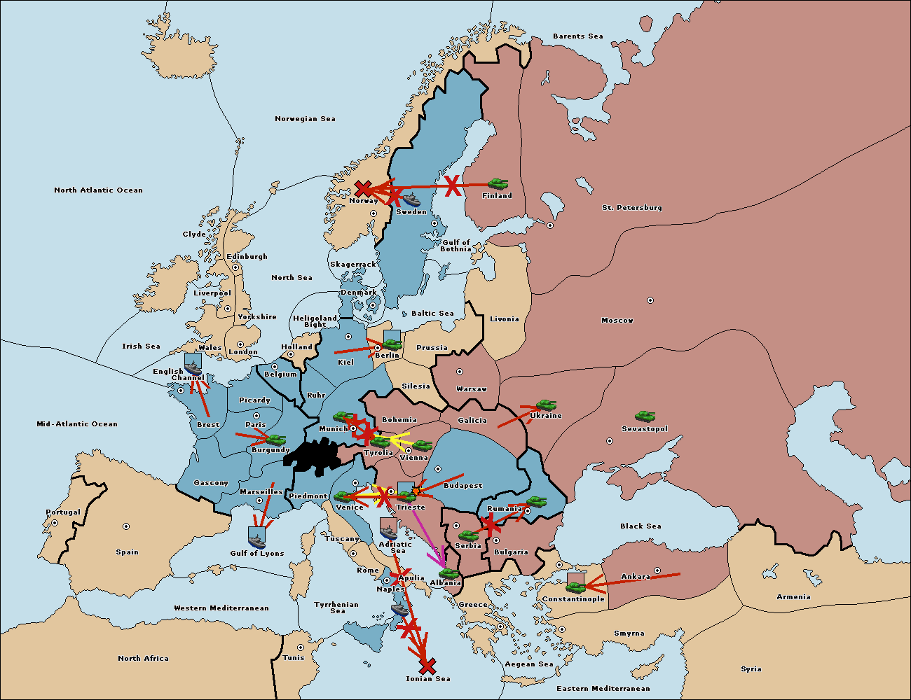 The army at Tyrolia move to Trieste.