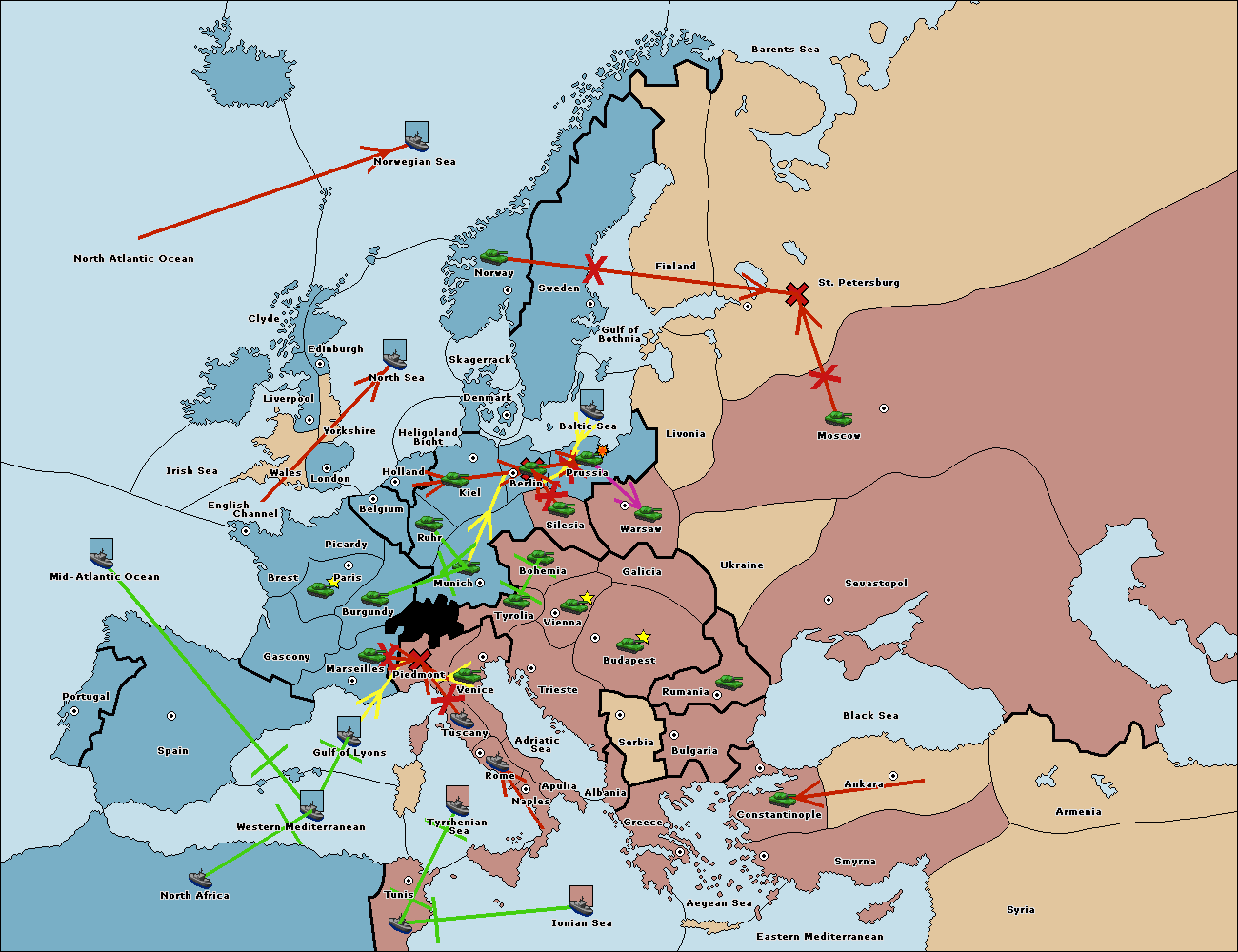 The fleet at Tyrrhenian Sea support move to Western Mediterranean from Gulf of Lyons.