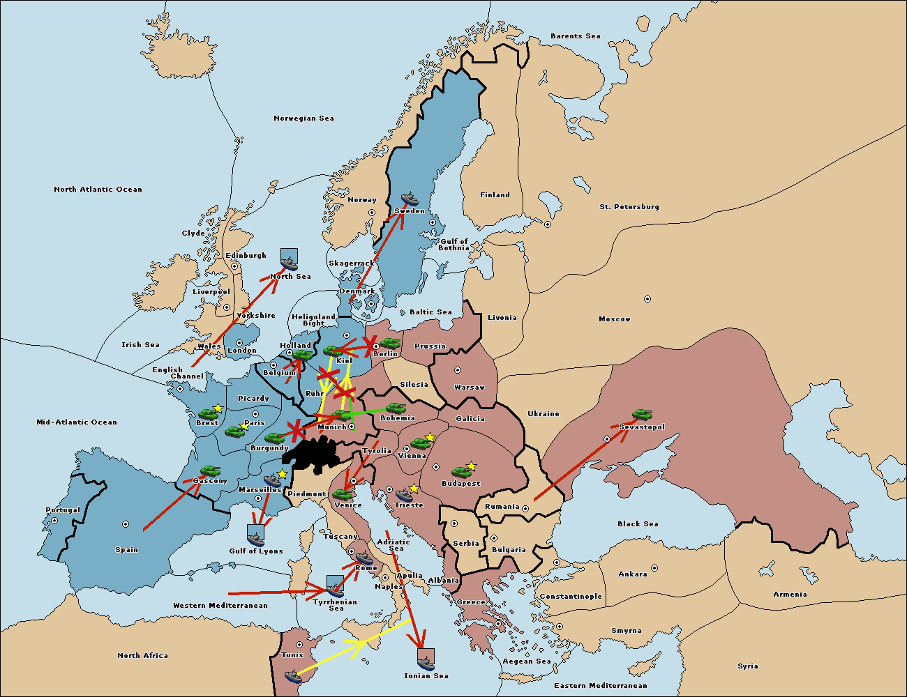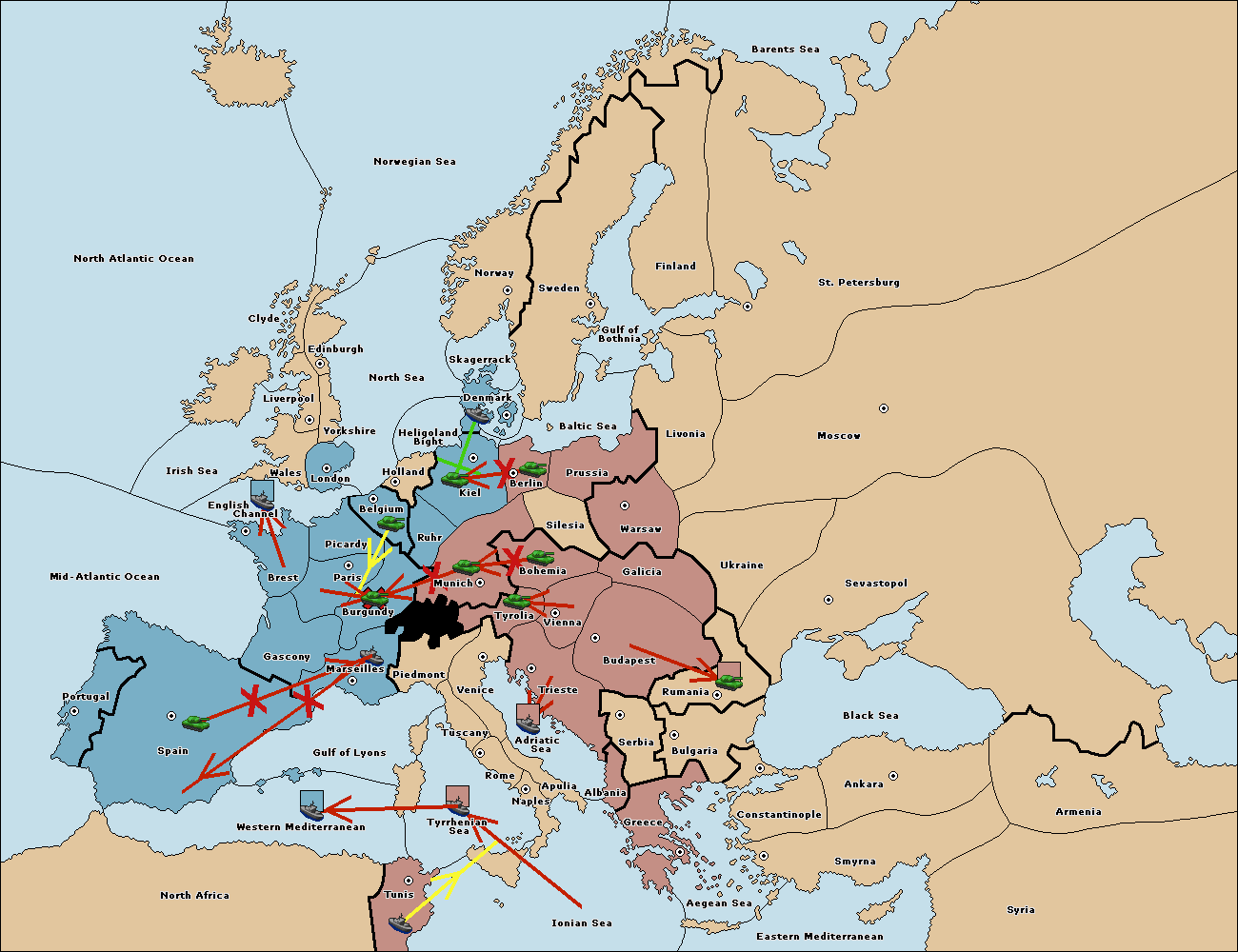 The fleet at Tyrrhenian Sea move to Western Mediterranean.