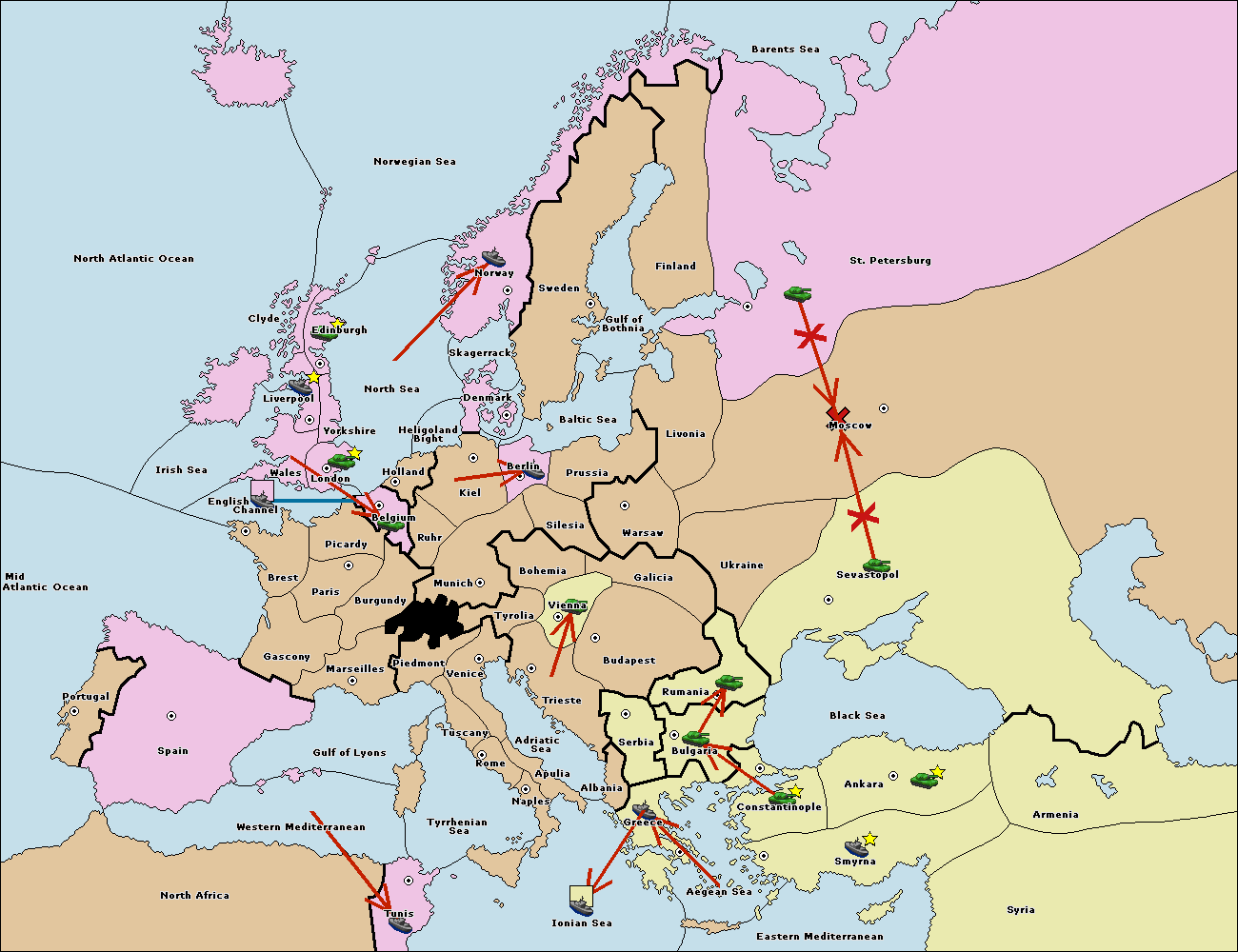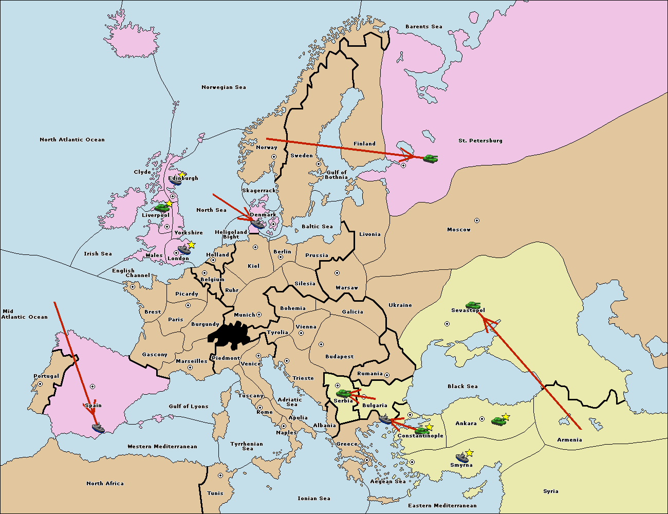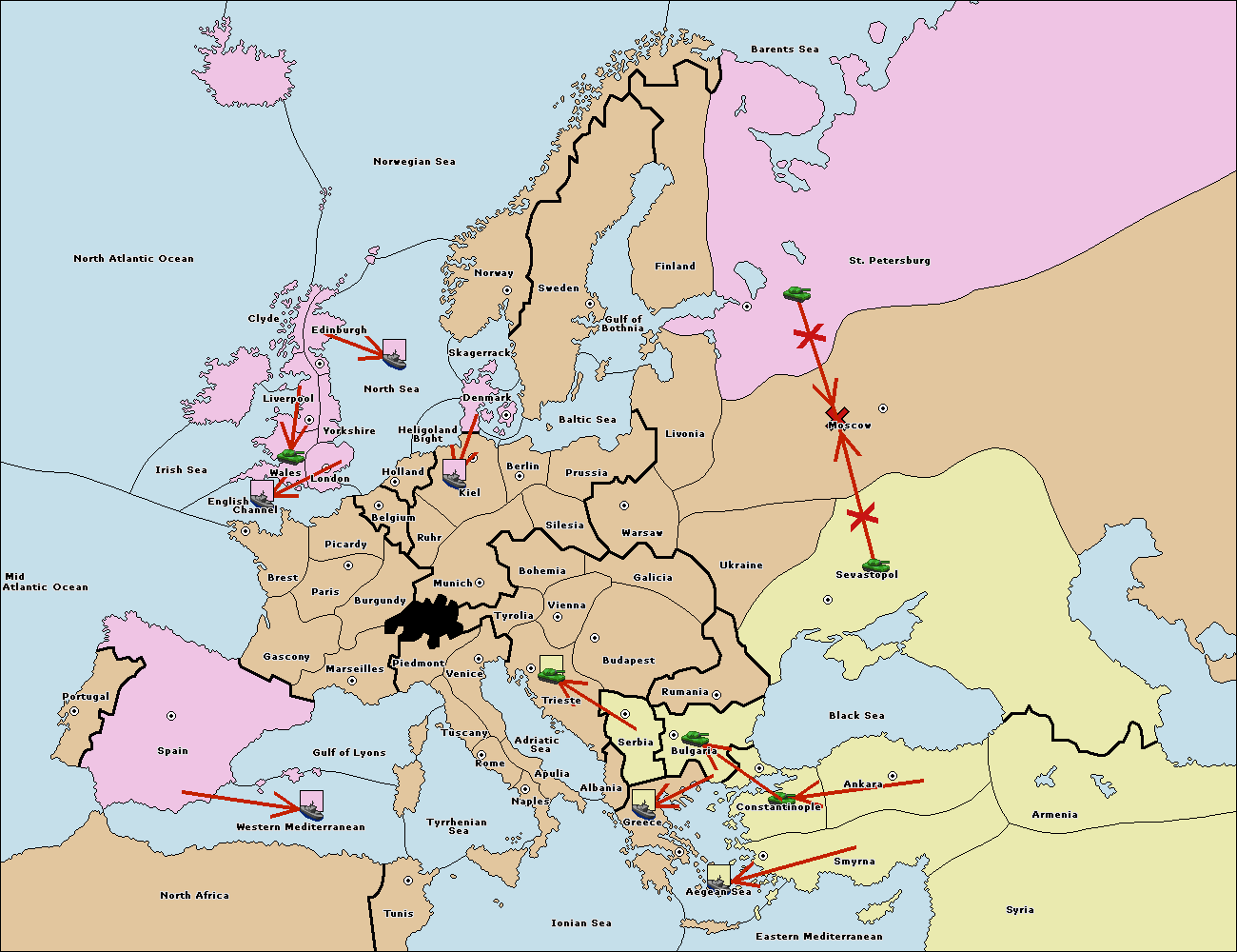 The fleet at Bulgaria (South Coast) move to Greece.
