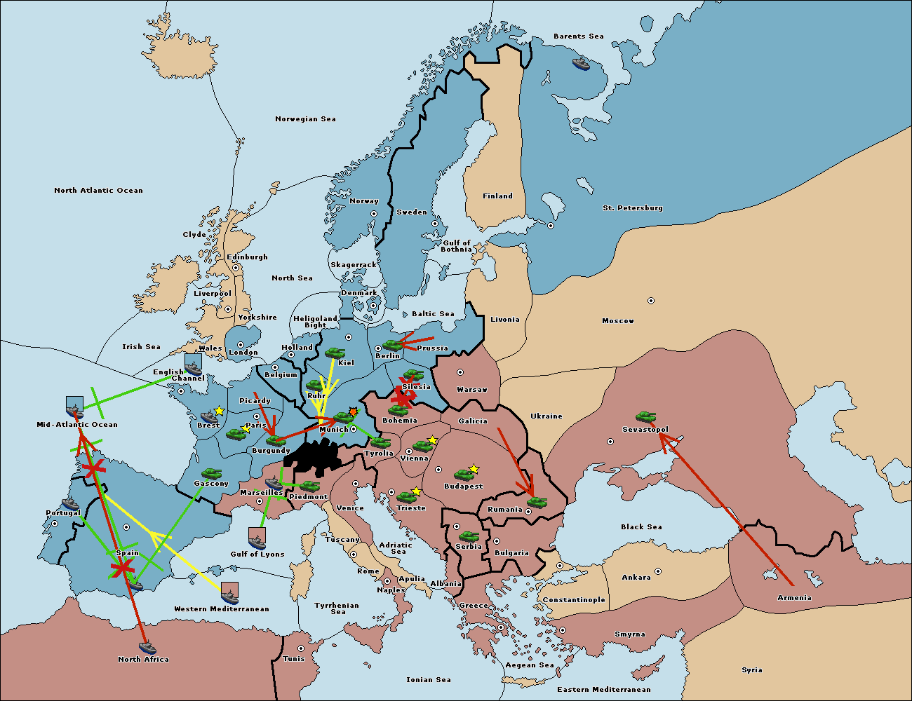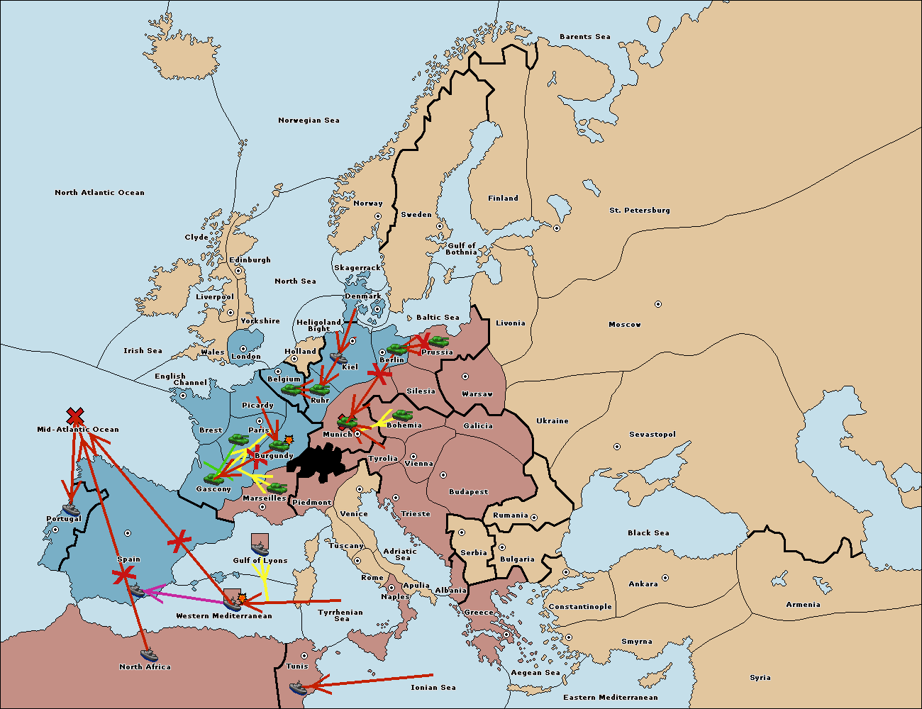 The army at Tyrolia support move to Munich from Berlin.