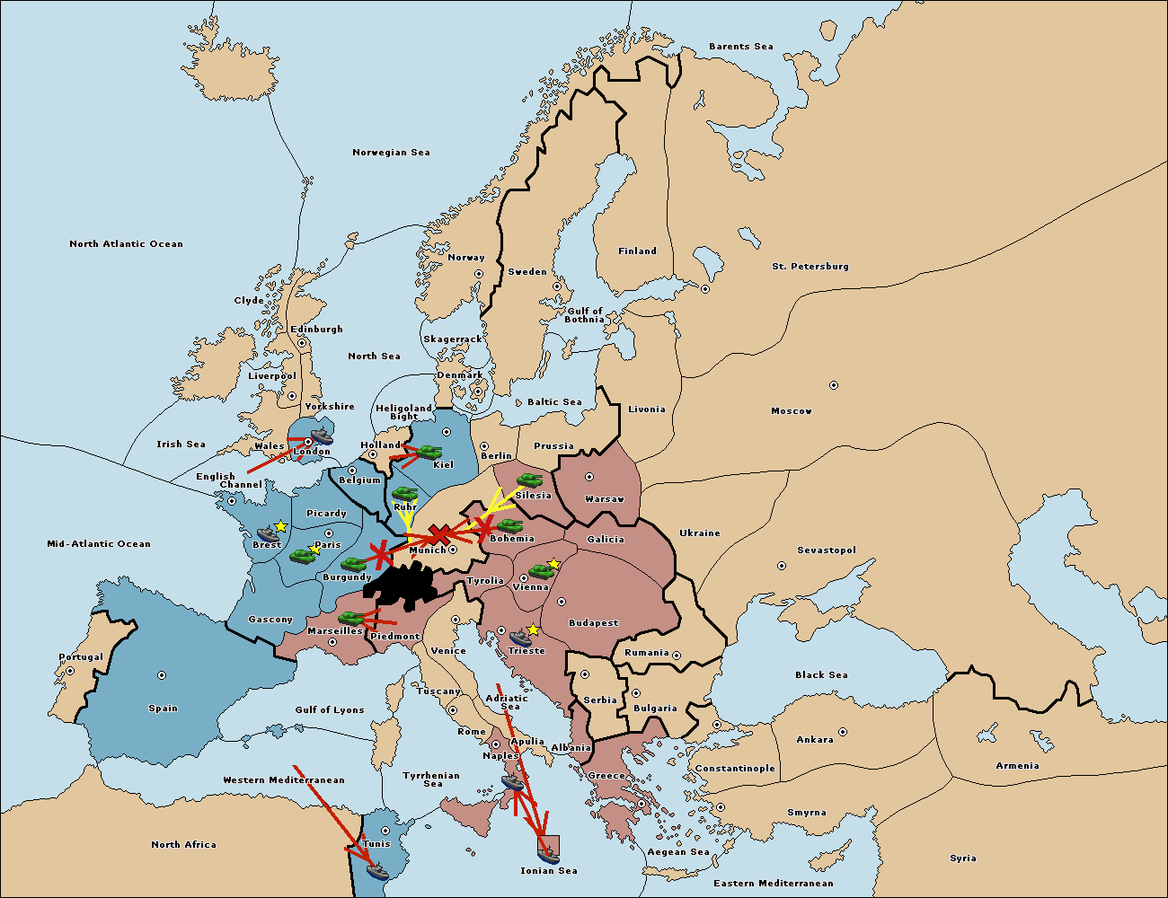 The army at Tyrolia move to Munich.