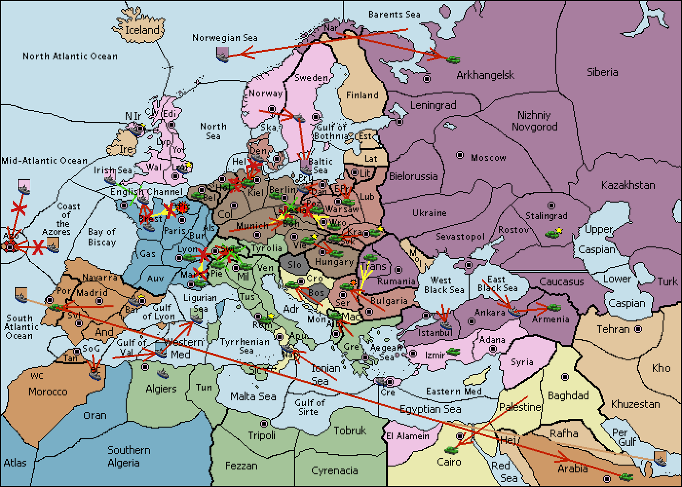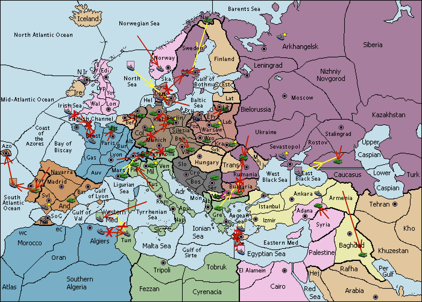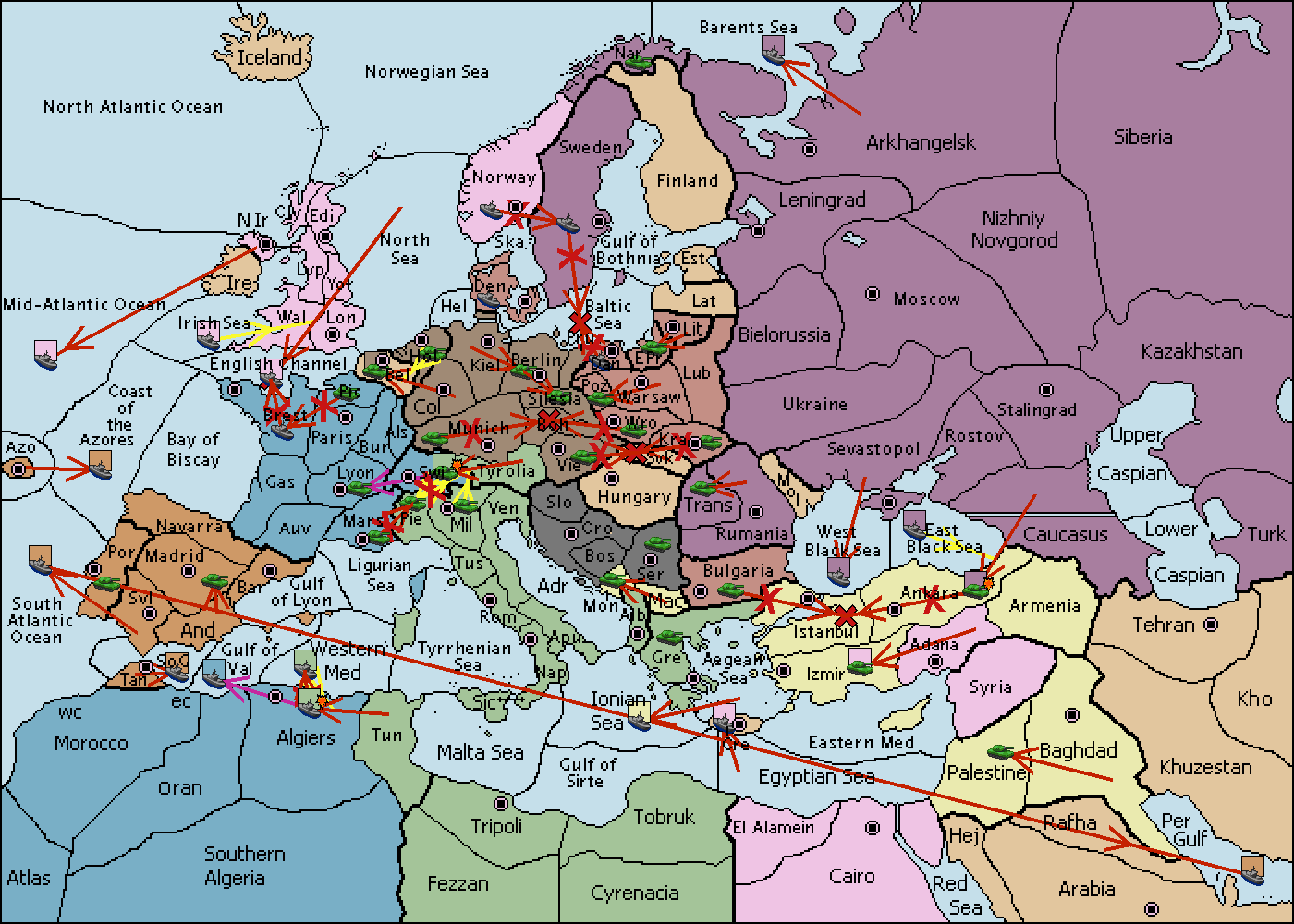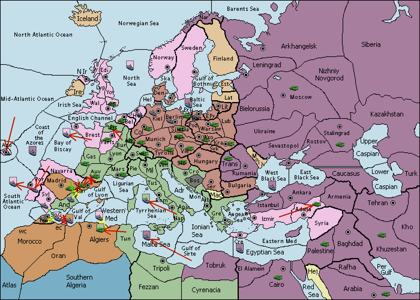 The fleet at Gulf of Valencia move to Straights of Gibraltar.