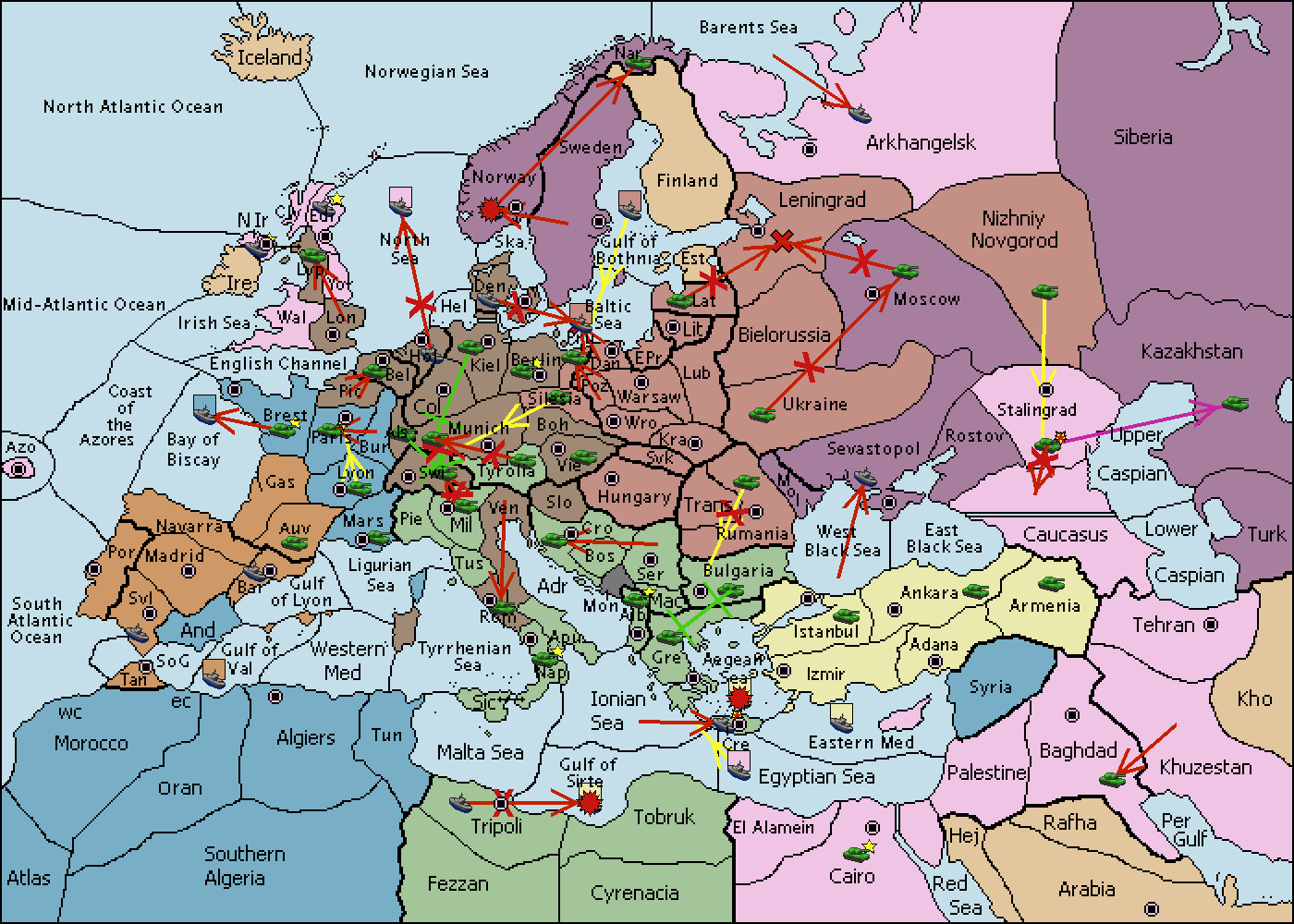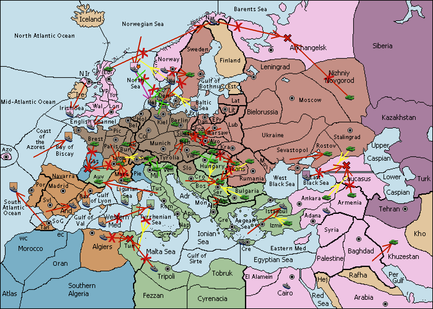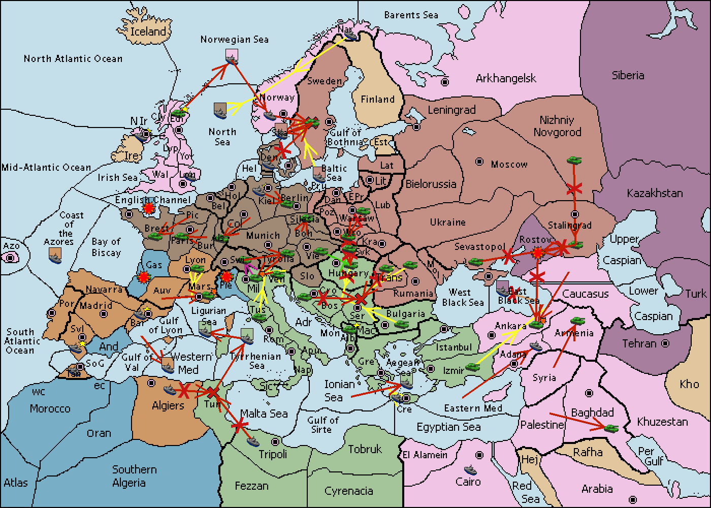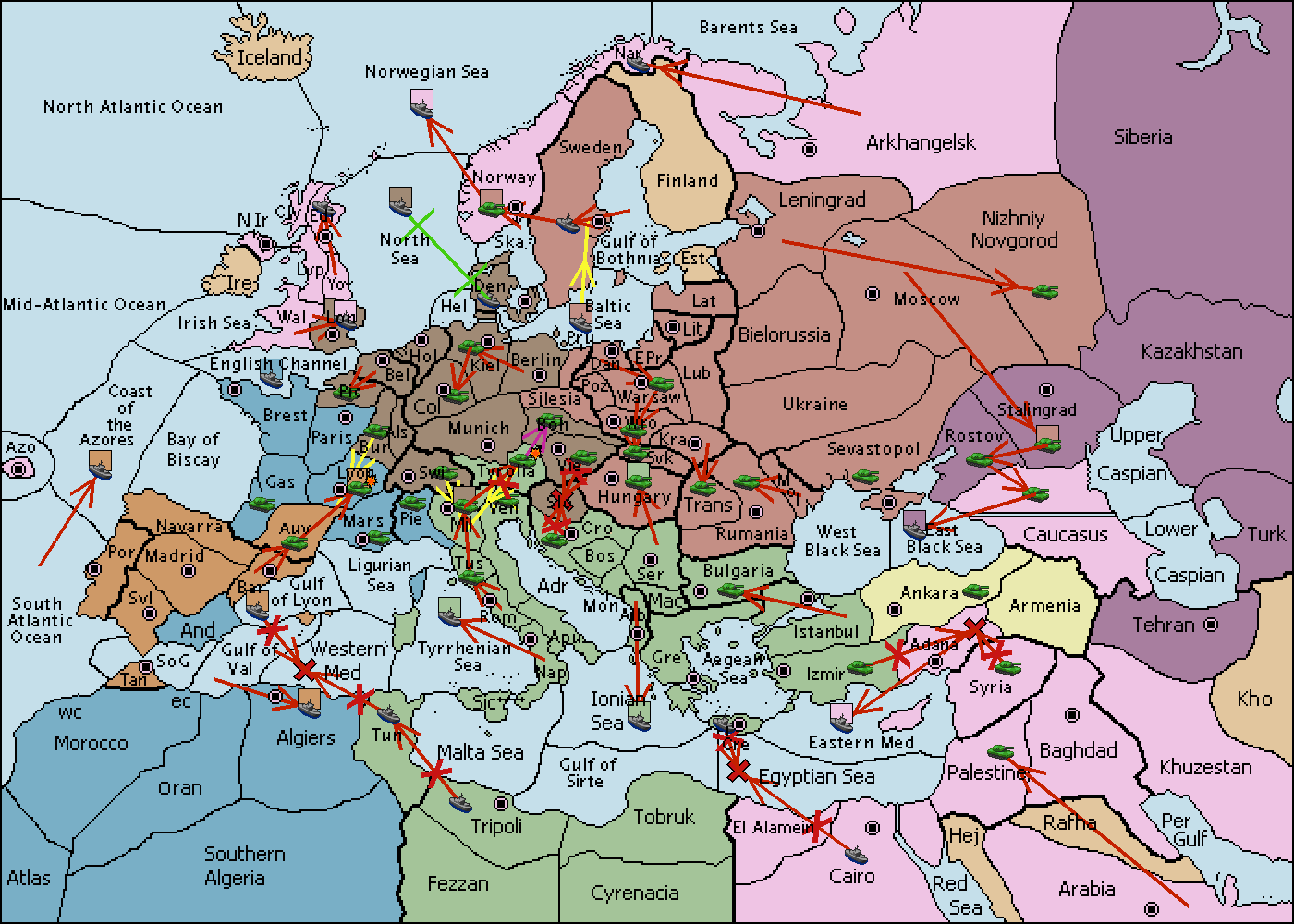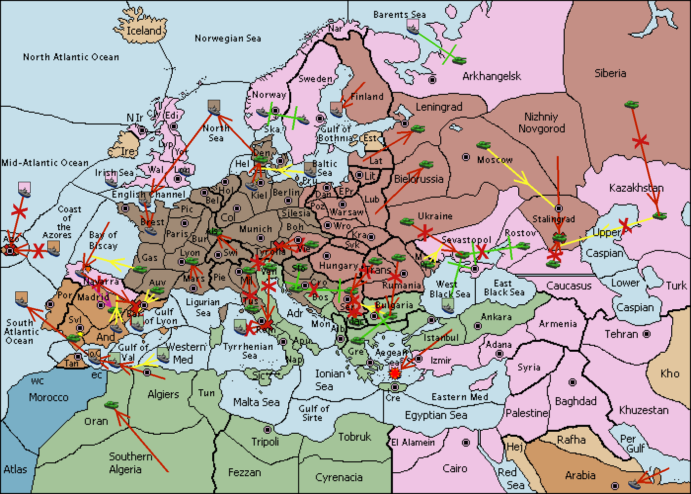 The fleet at Egyptian Sea support move to Crete from Ionian Sea.