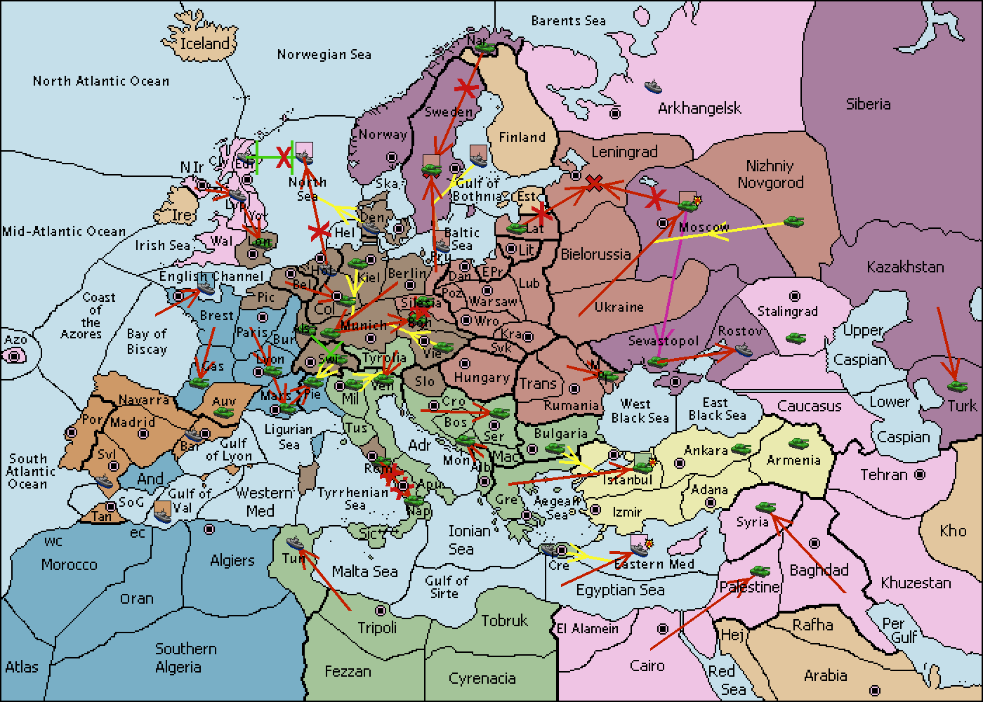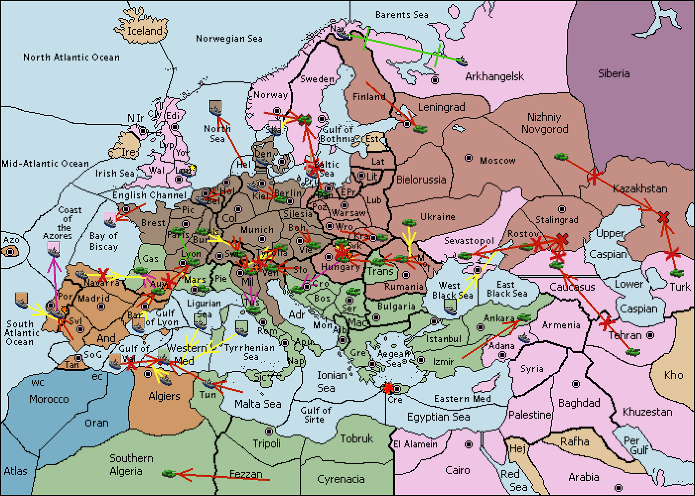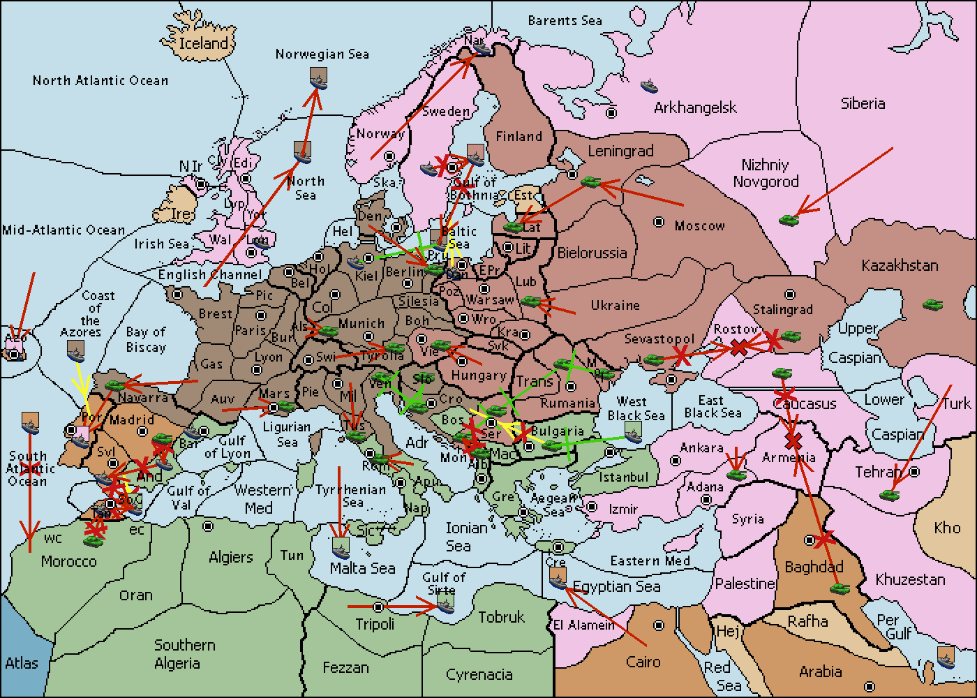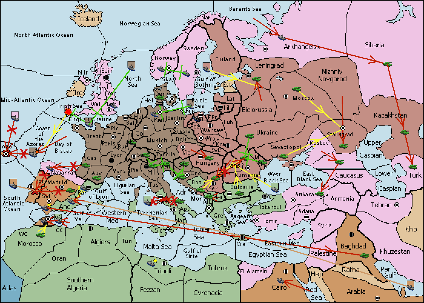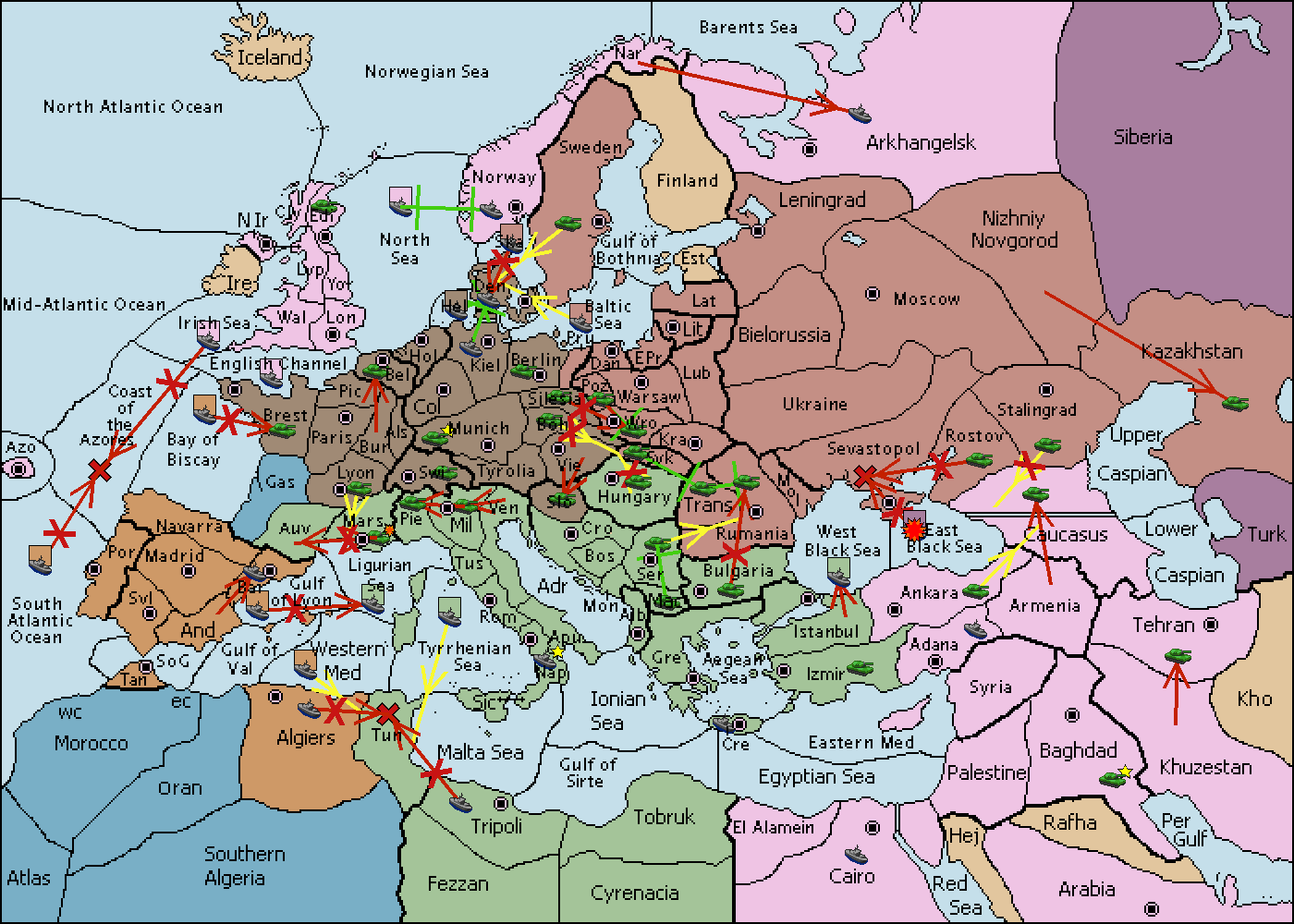 The fleet at Egyptian Sea support move to Crete from Ionian Sea.