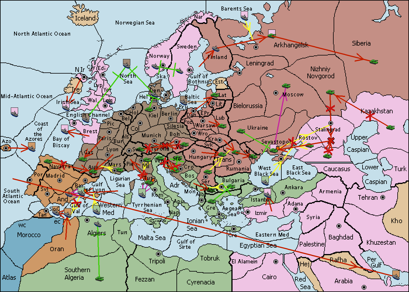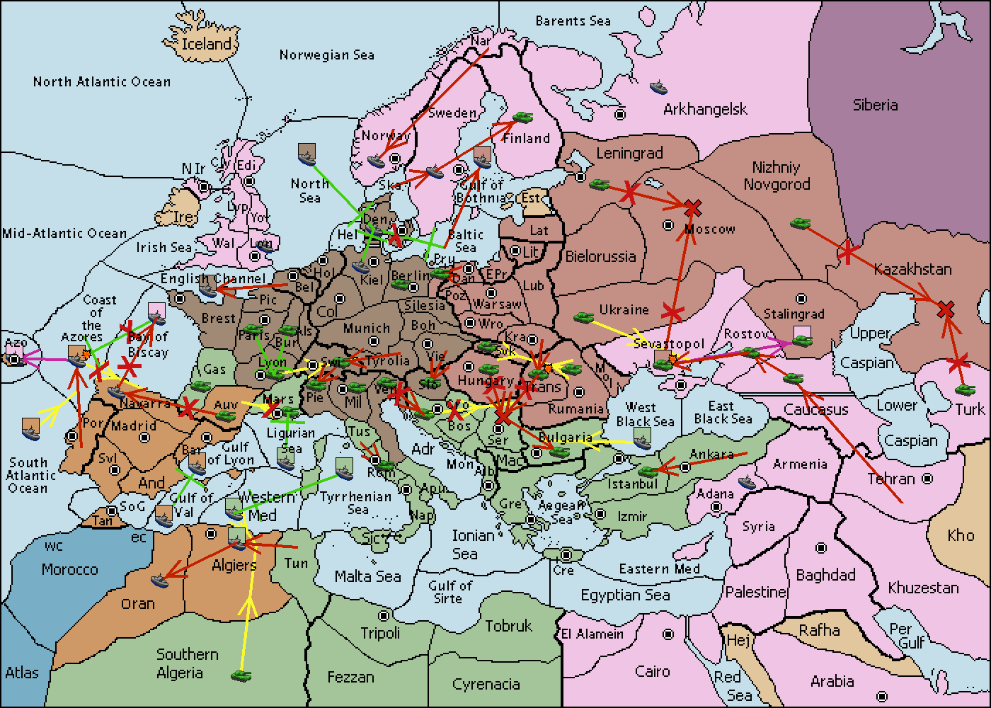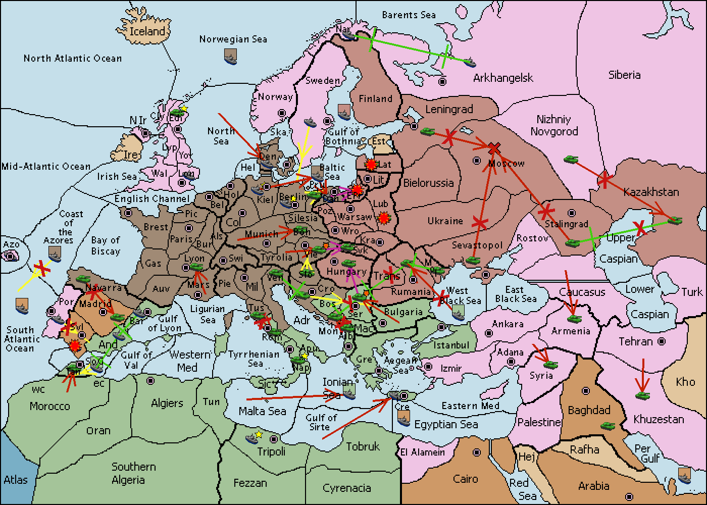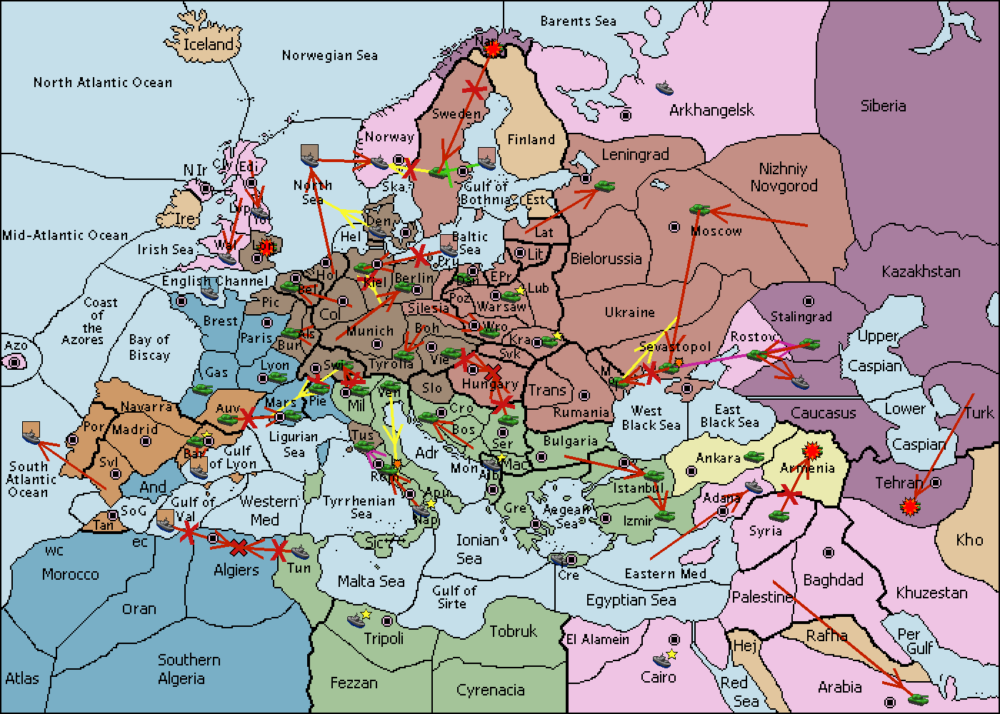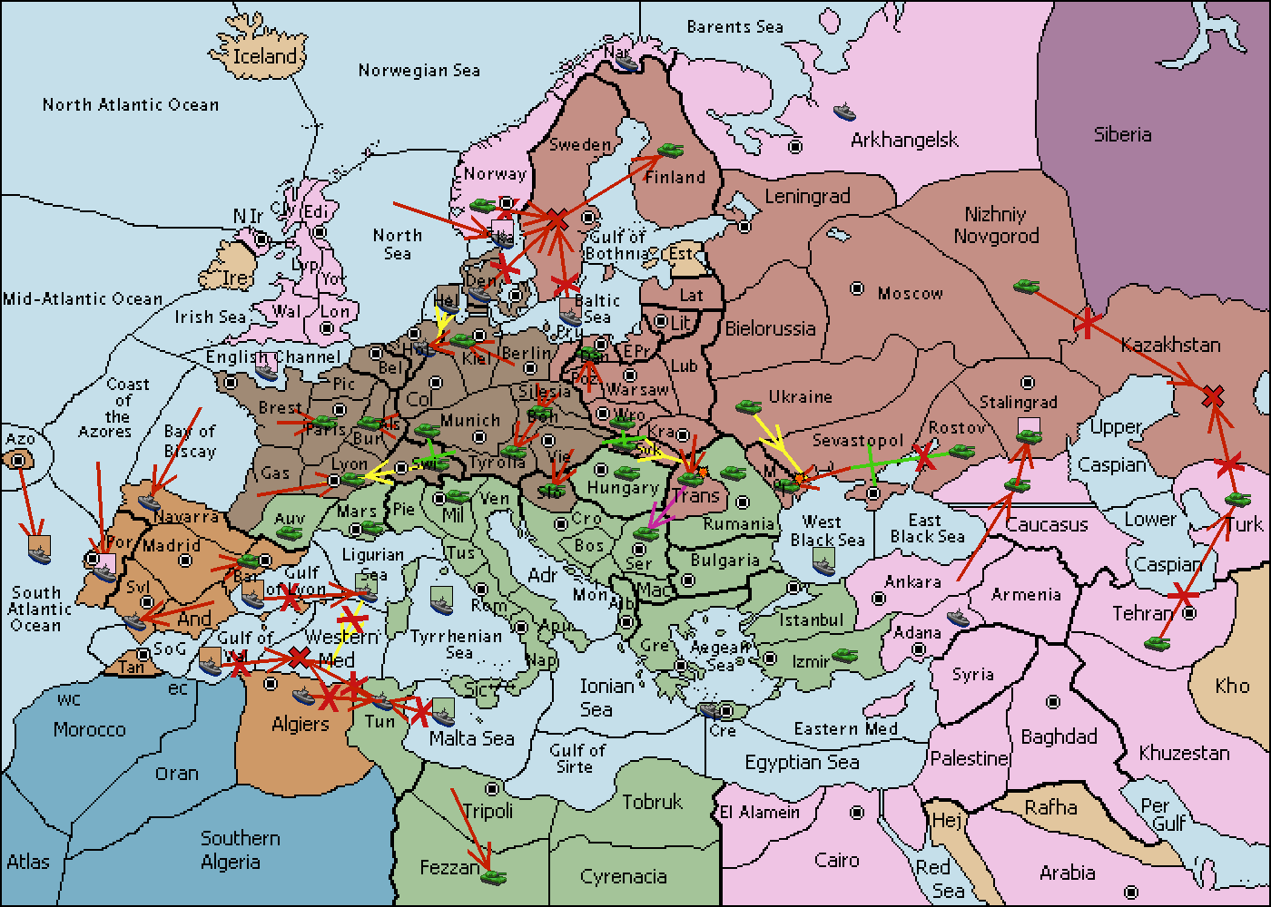 The fleet at Egyptian Sea support move to Crete from Ionian Sea.