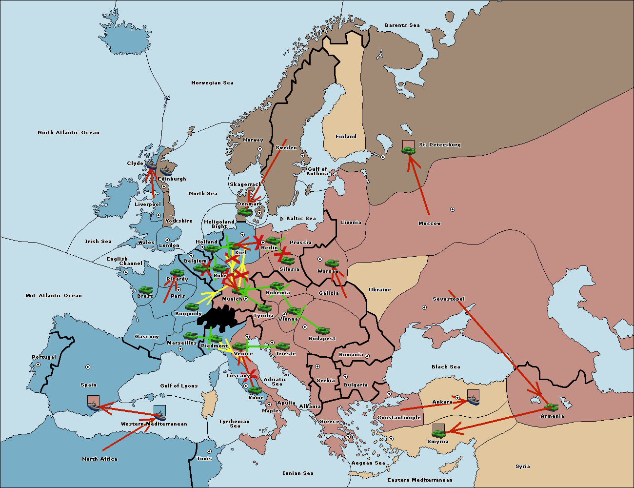 The fleet at Bulgaria (South Coast) move to Constantinople.
