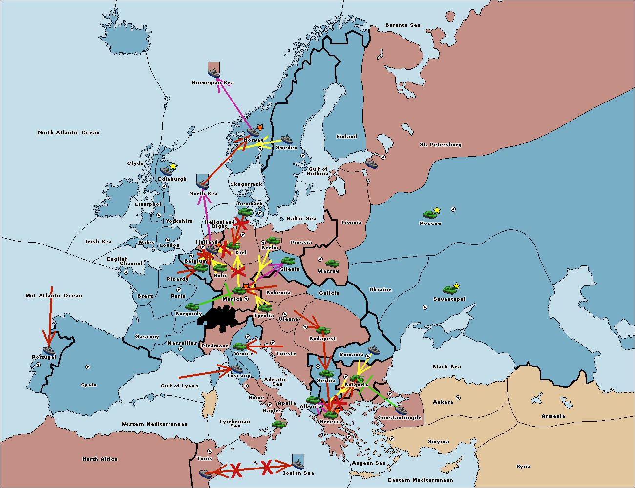 The fleet at Mid-Atlantic Ocean move to Western Mediterranean.