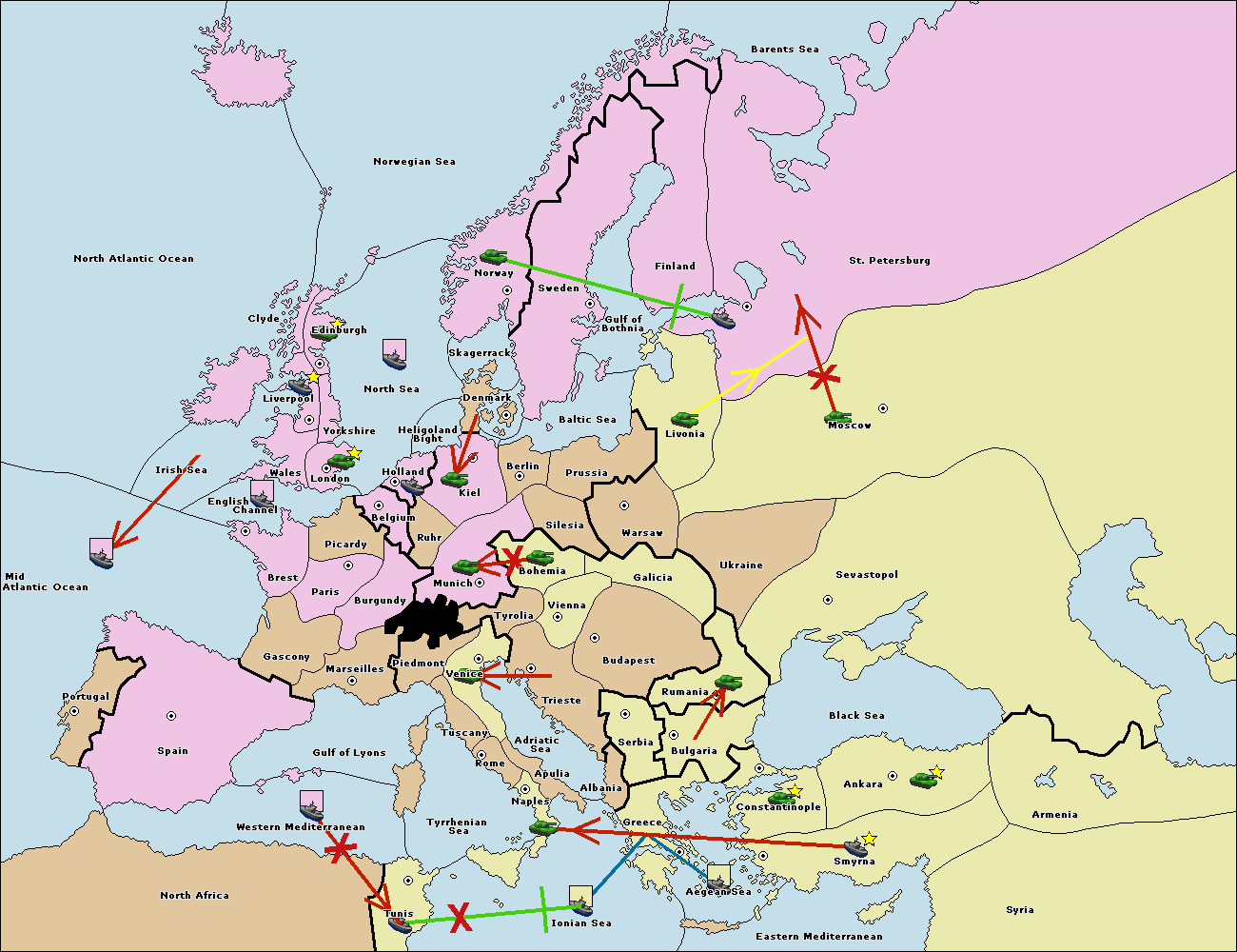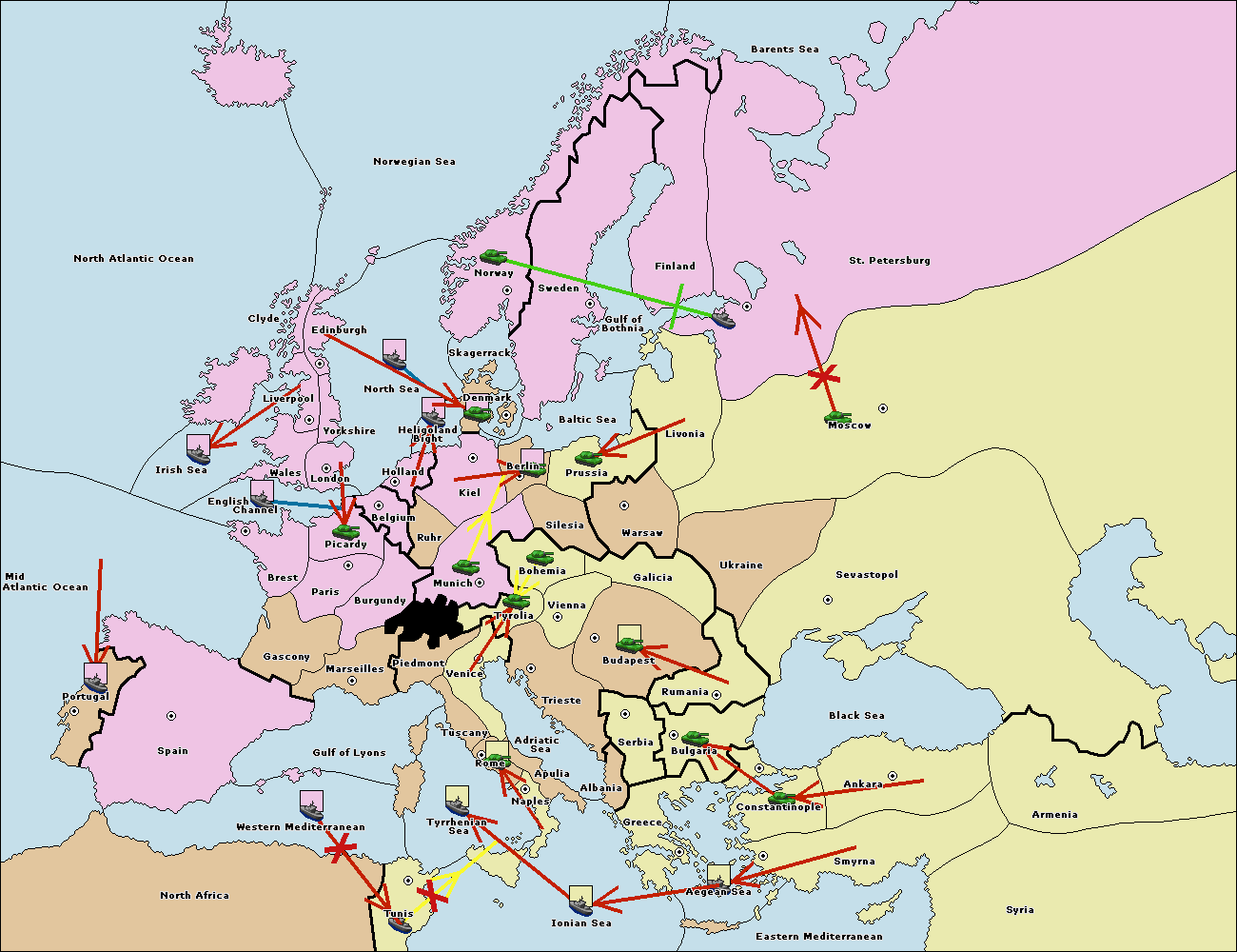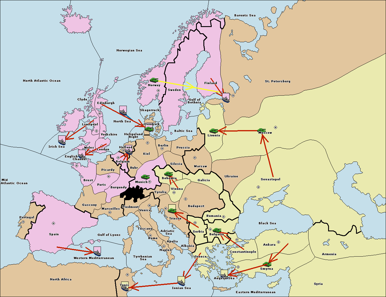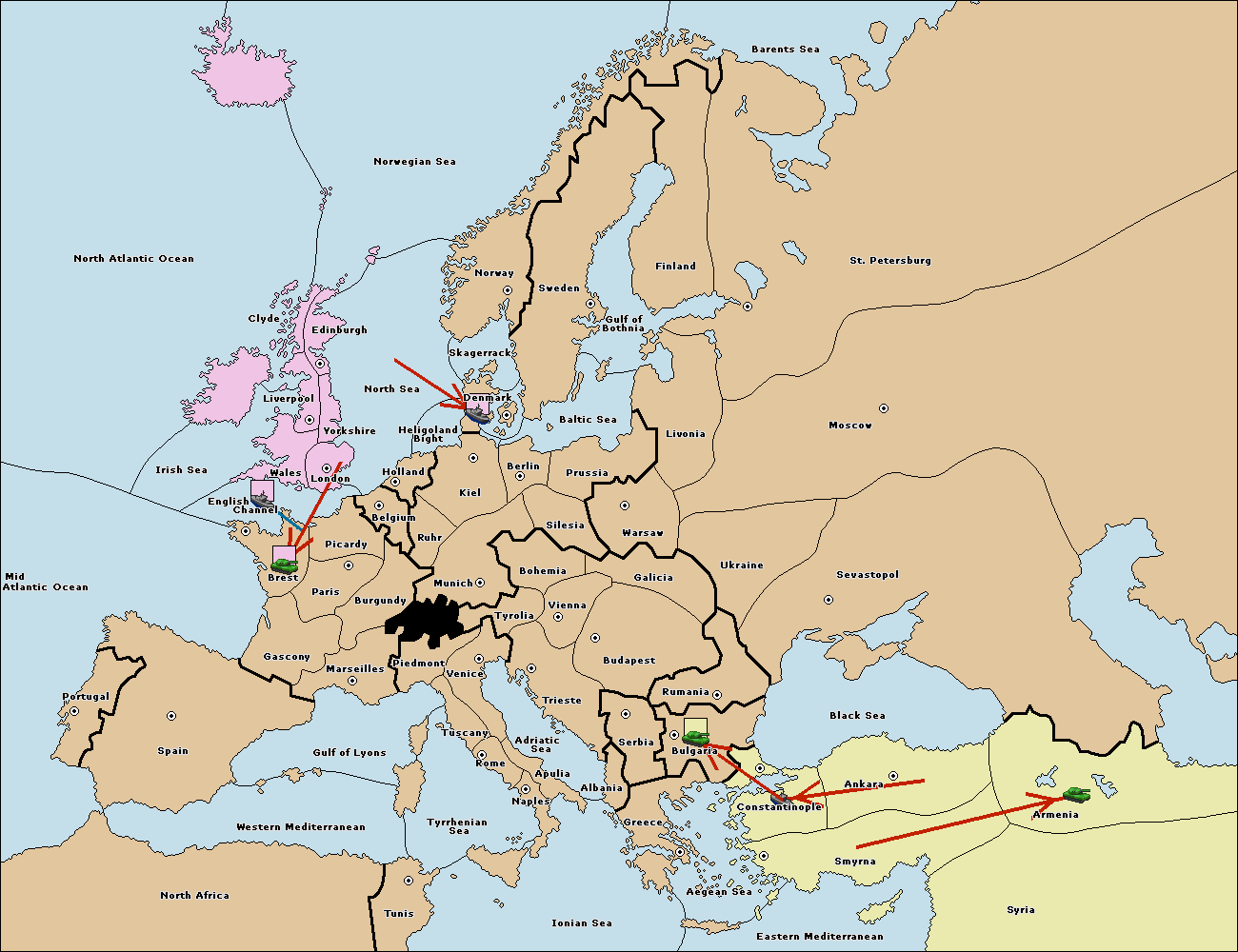 The fleet at Bulgaria (South Coast) move to Greece.