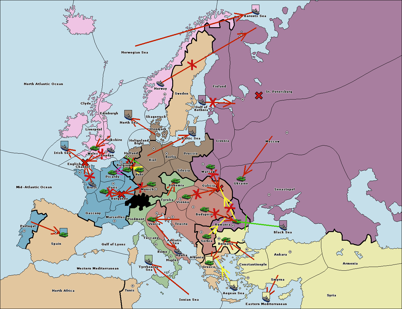 The fleet at Ionian Sea support move to Greece from Bulgaria.