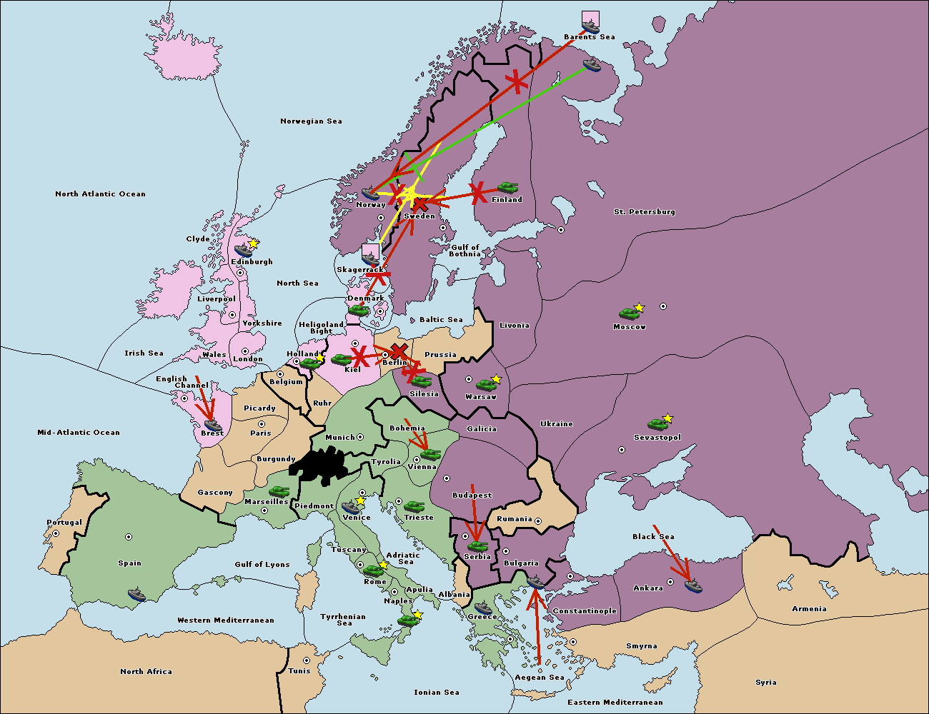 The fleet at St. Petersburg (North Coast) move to Barents Sea.