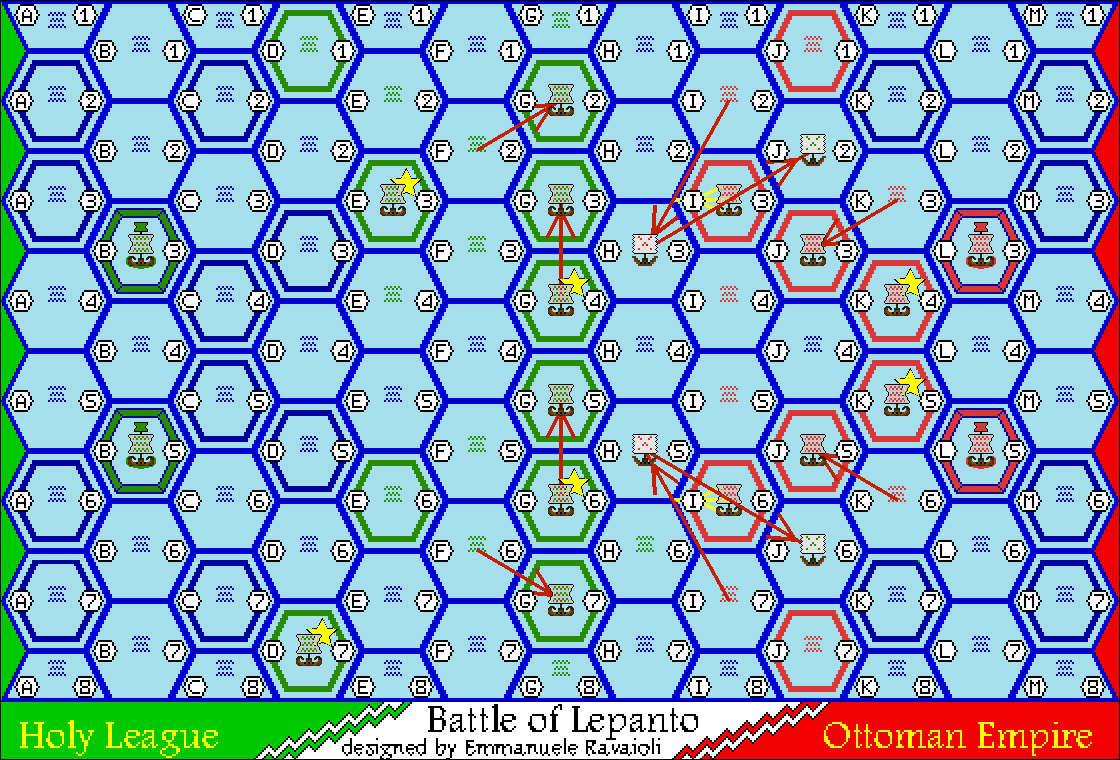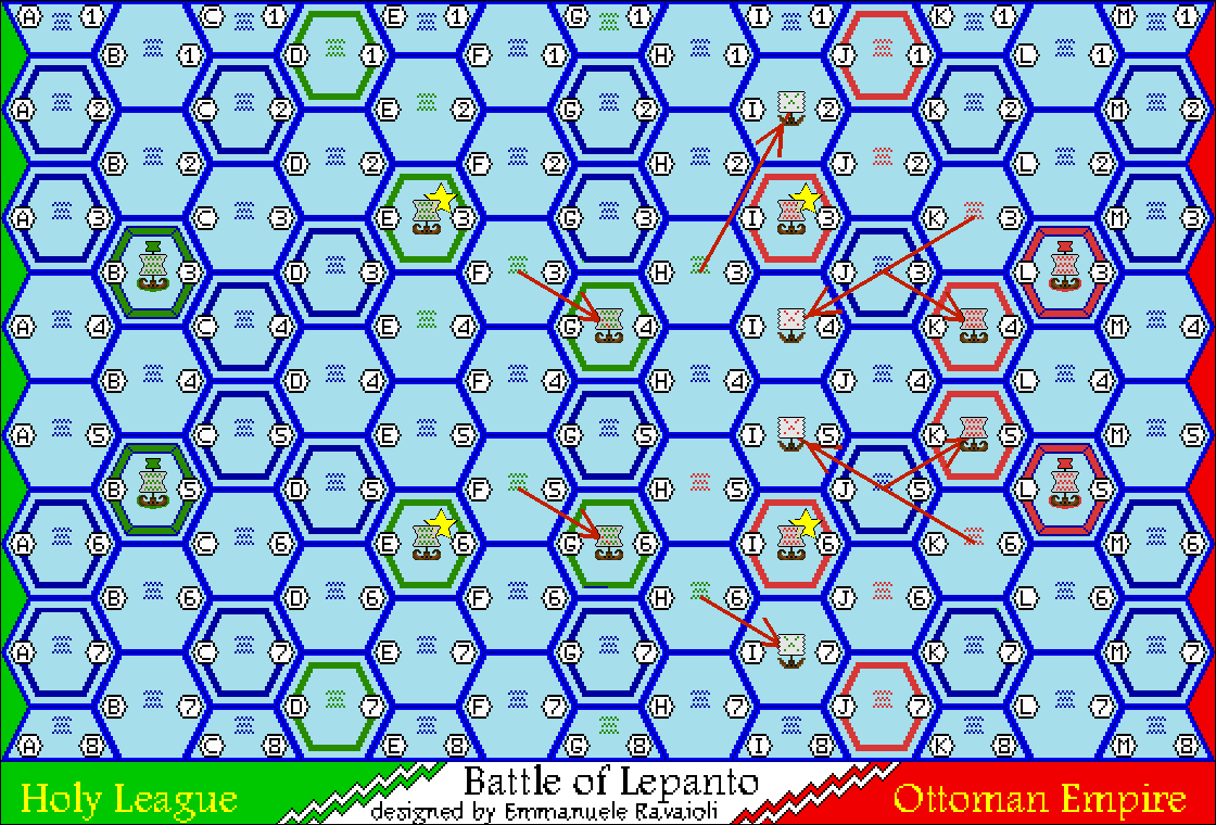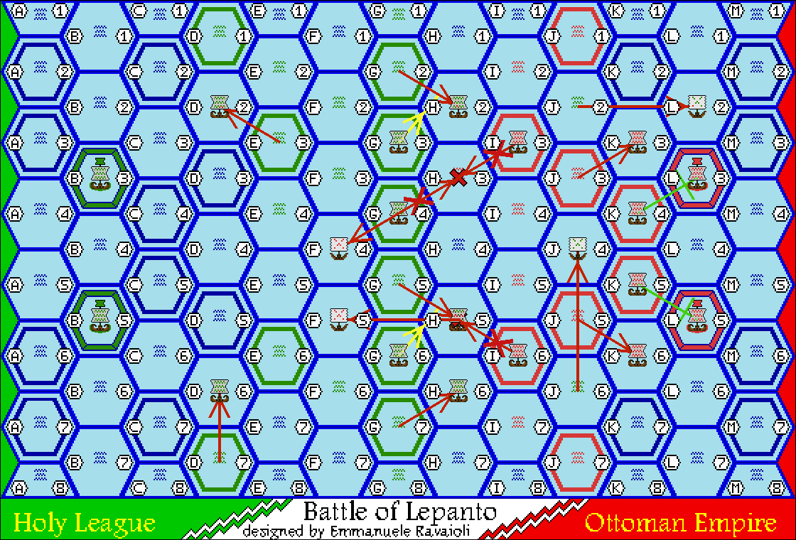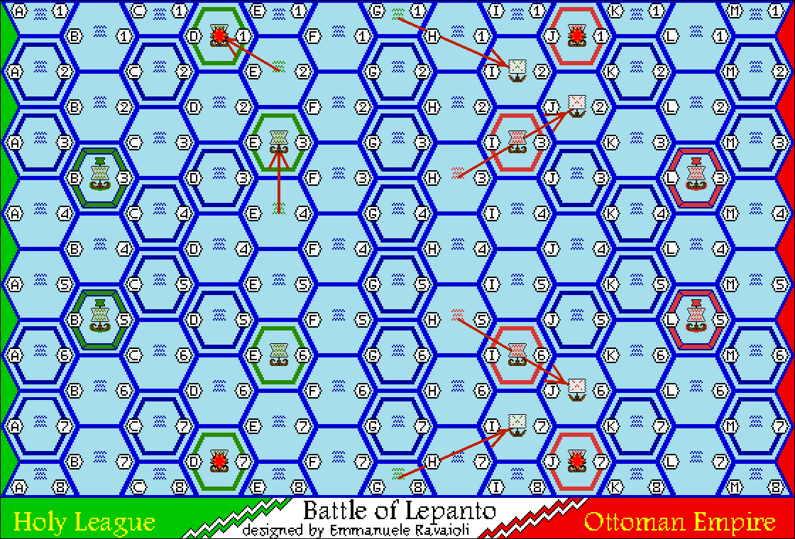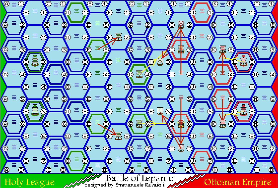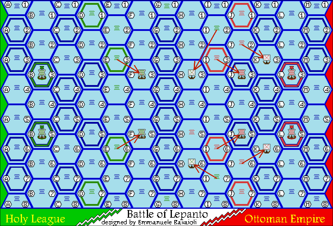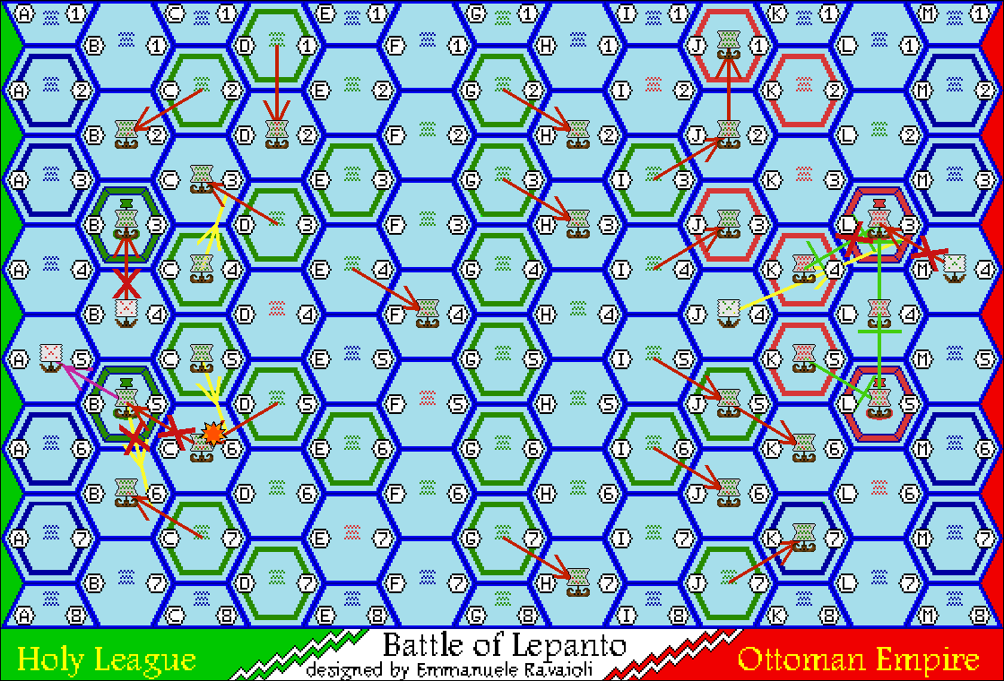 7 October 1571, 2 hours and a half after the start of the battle Large map: