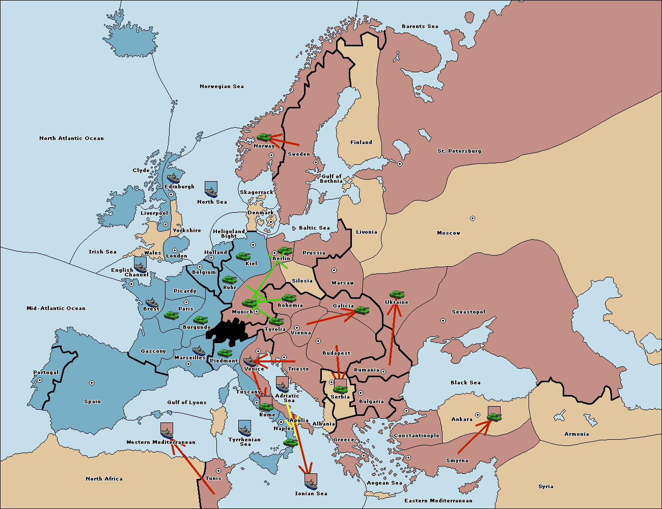 The fleet at Western Mediterranean move to Tyrrhenian Sea.