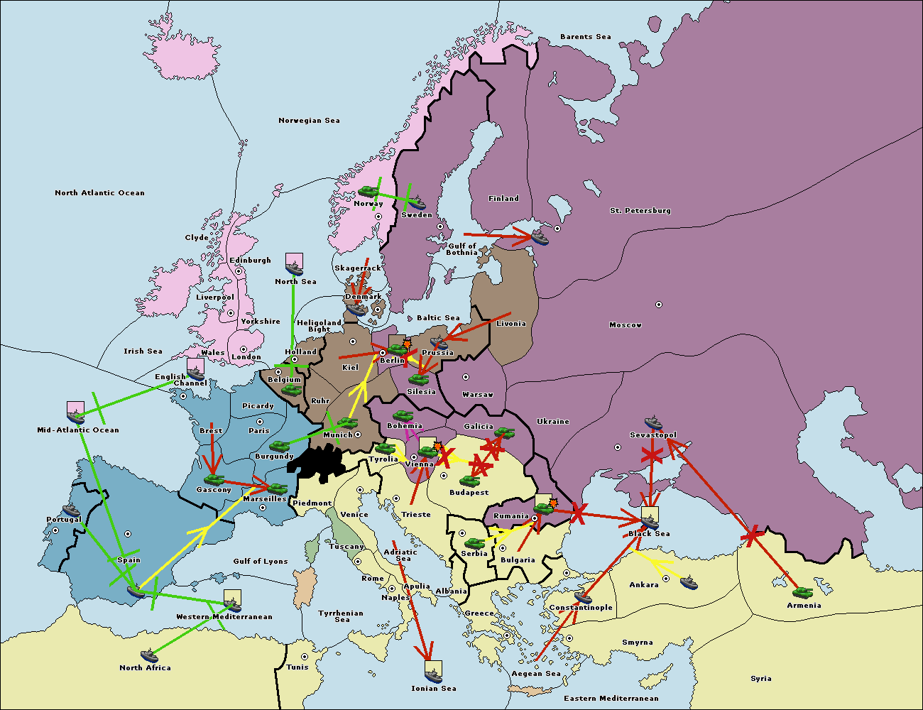 The fleet at Spain (South Coast) support hold to Marseilles.