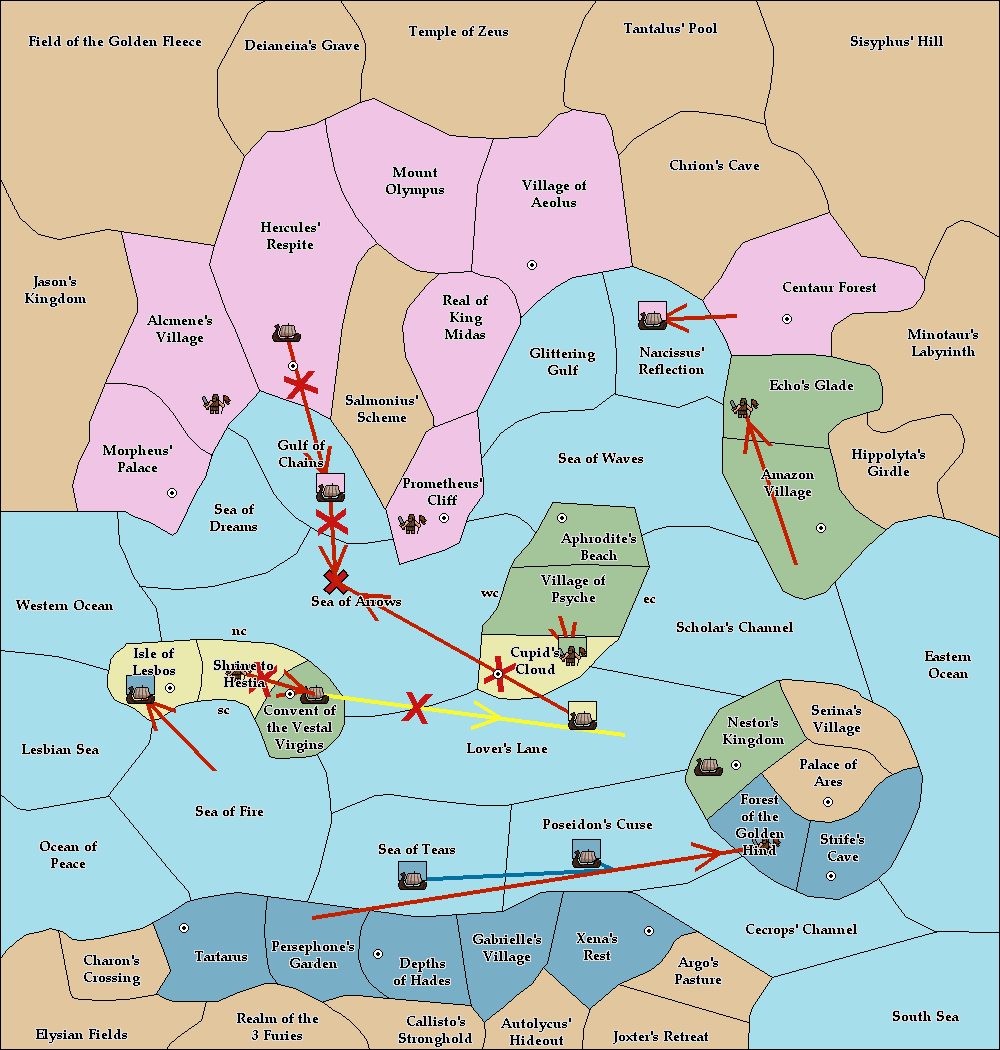 The fleet at Isle of Lesbos support move to Sea of Arrows from Gulf of Chains.