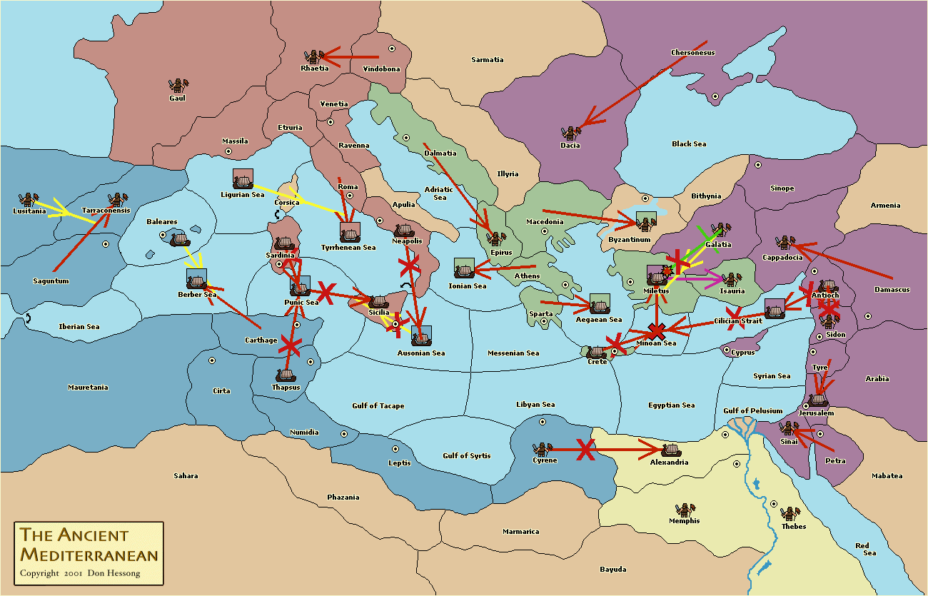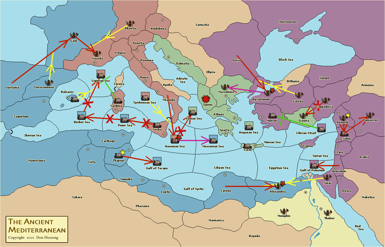 The fleet at Cilician Strait support move to Minoan Sea from Egyptian Sea.