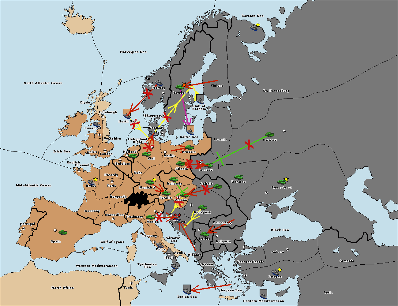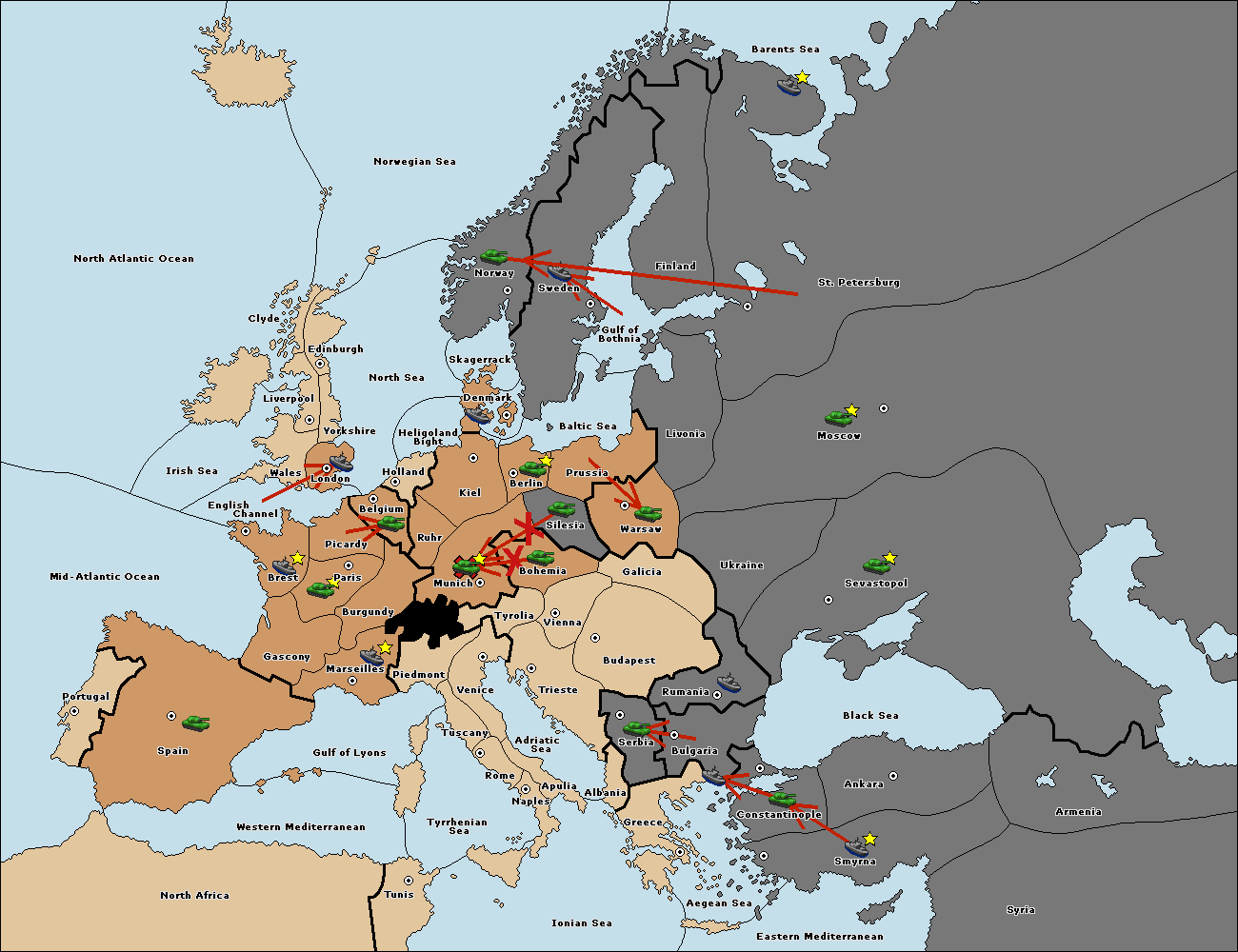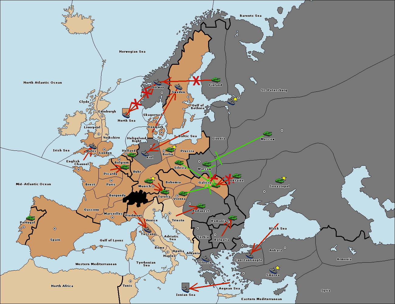 The fleet at Bulgaria (South Coast) move to Greece.